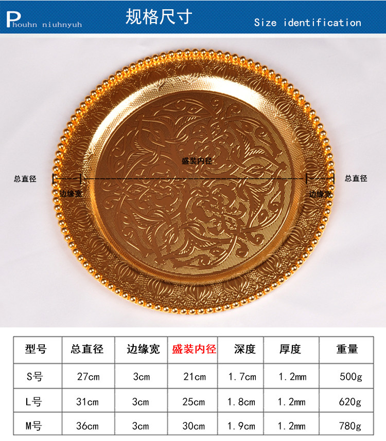 Новые рекламные акции Синьцзян этнический стиль с большой тарелкой, хватает рис, мясная тарелка из нержавеющей стали русские позолоченные золото