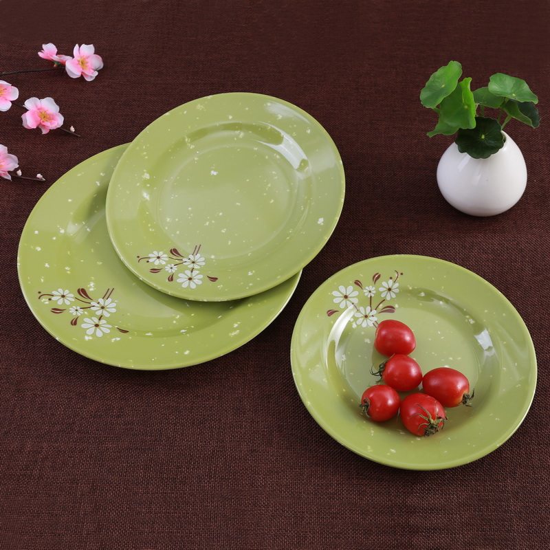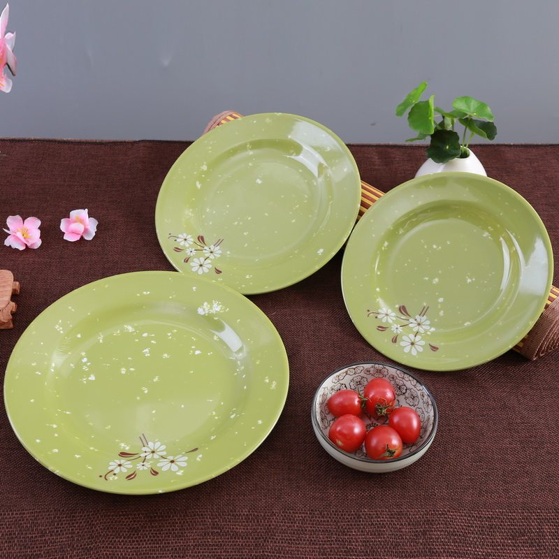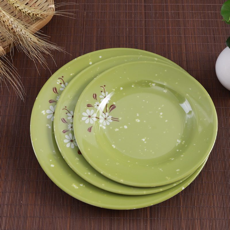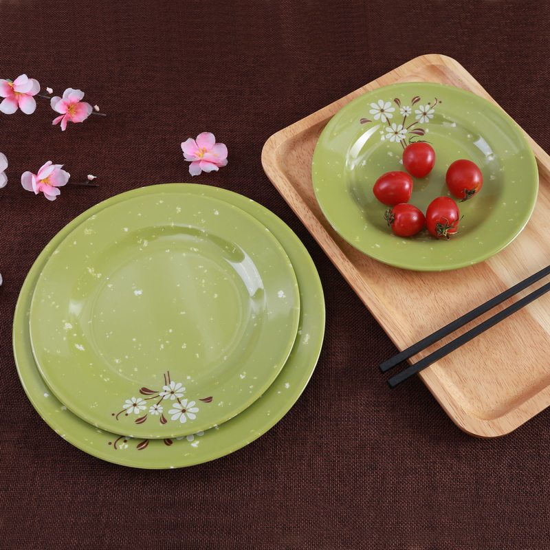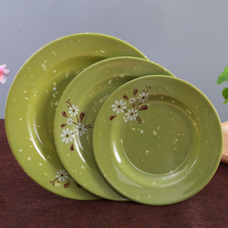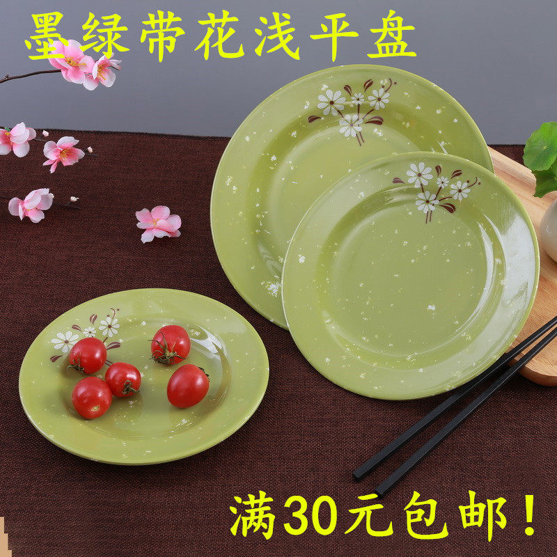 Бантамин имитация фарфоровой посуда зеленая белая хризантема ресторана ресторана фрукты Self -Service мелкая плоская тарелка небольшие блюда.