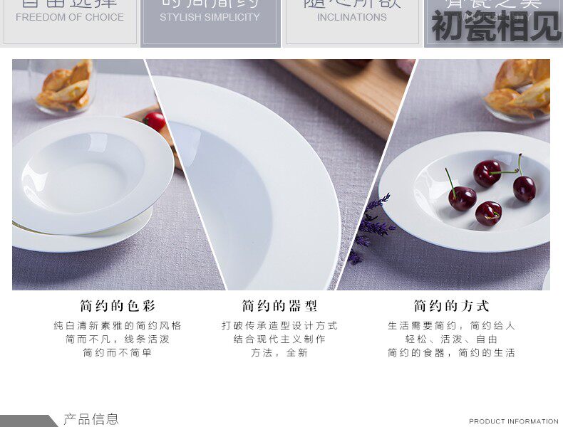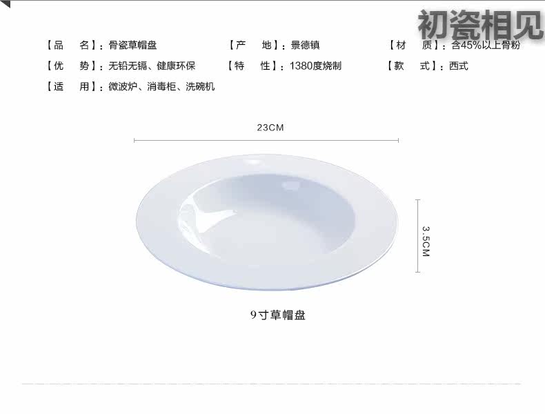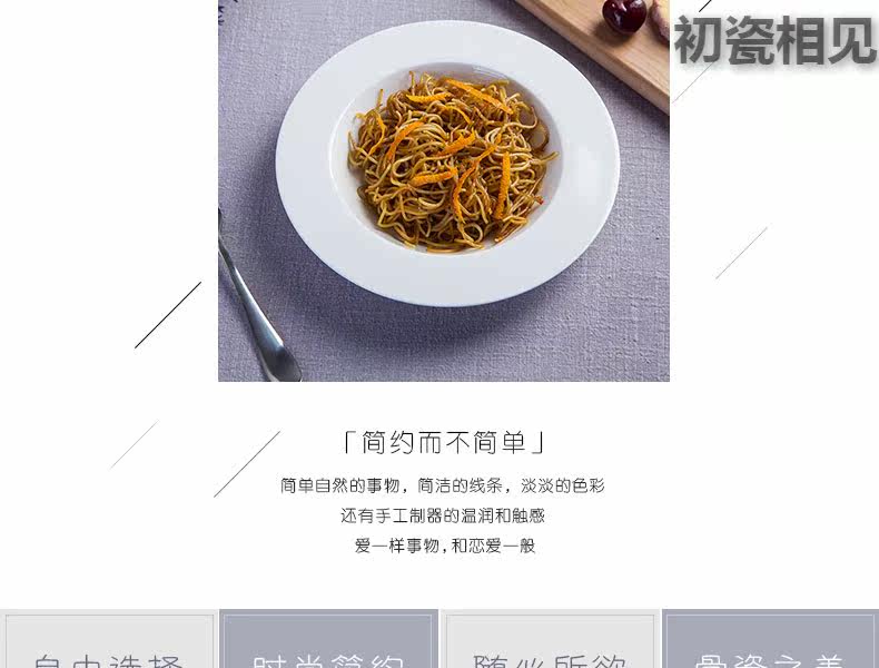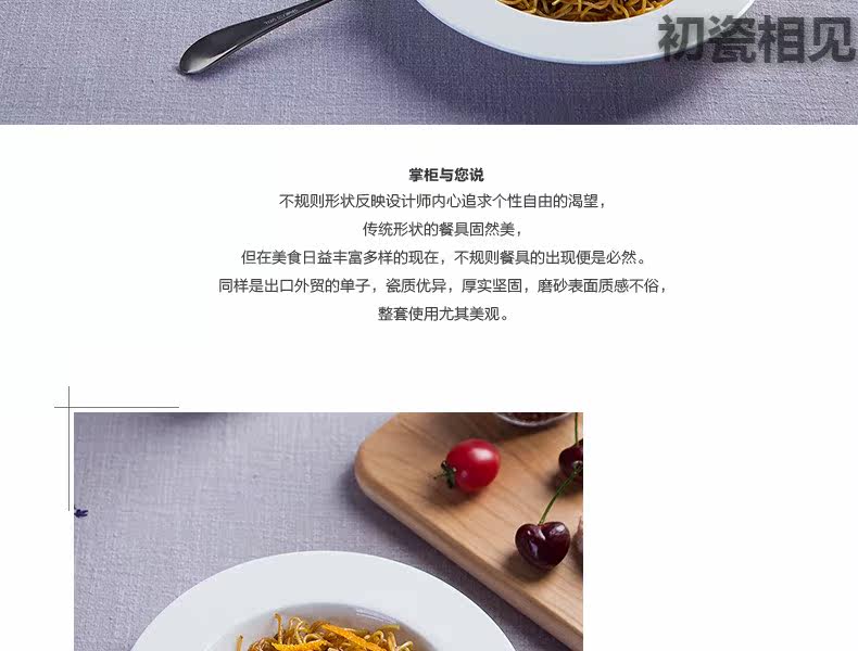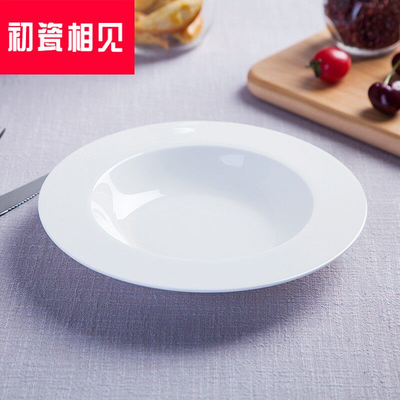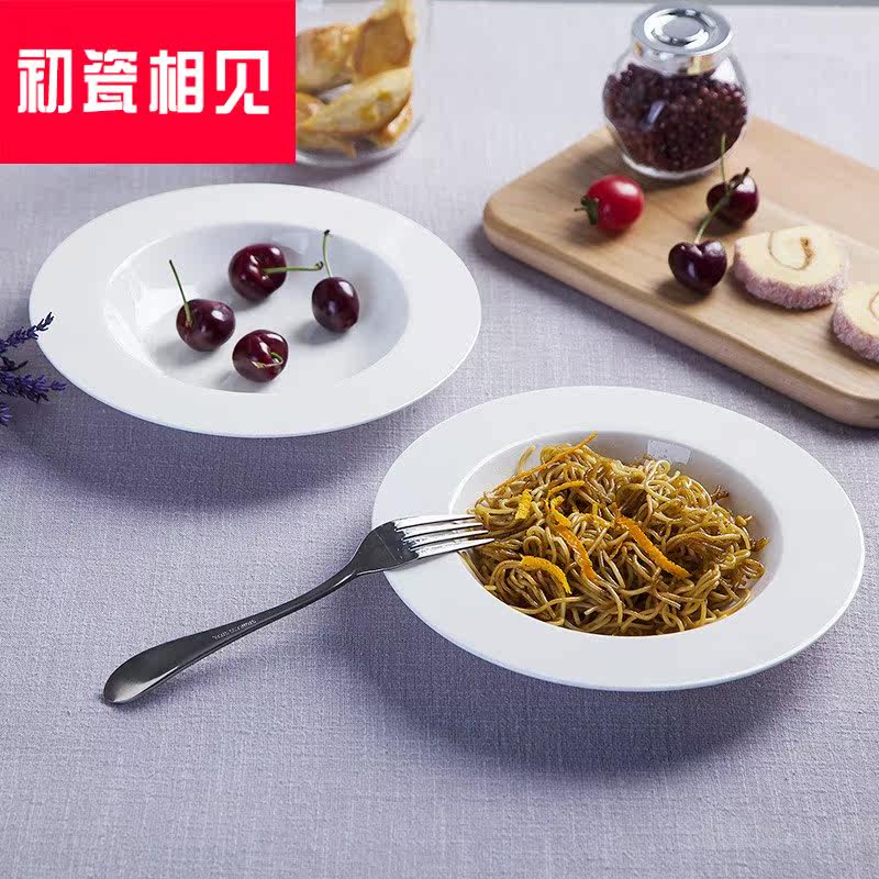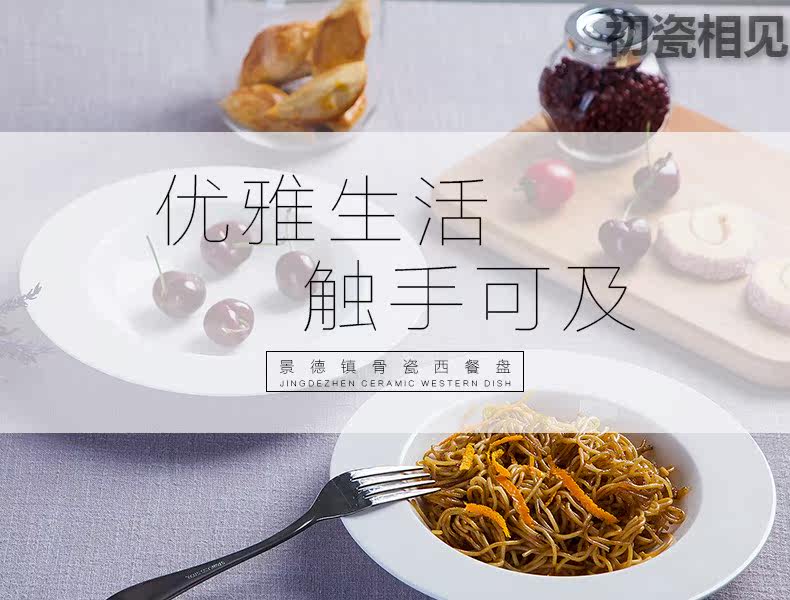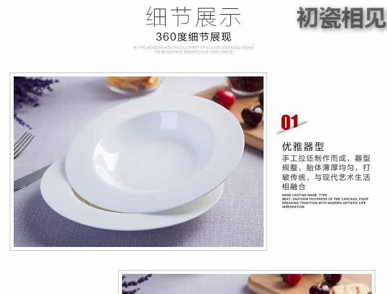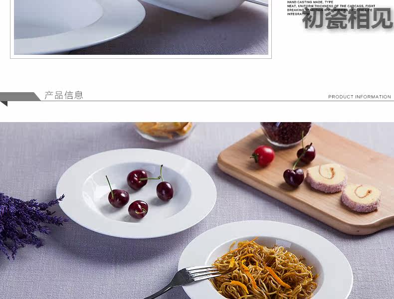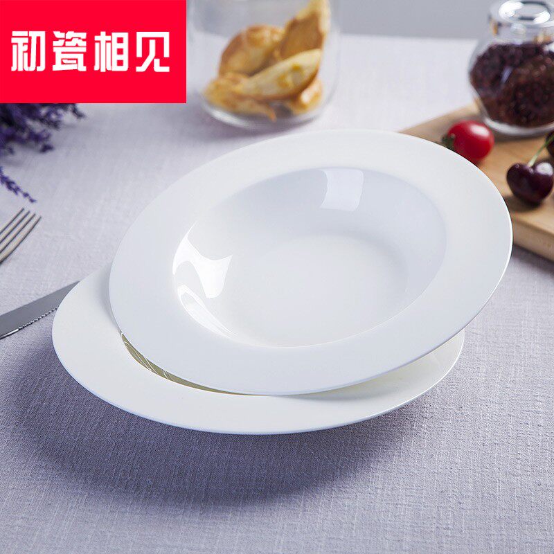 初瓷相见 Jingdezhen Ceramics Простая креативная чистая белая посуда запугивание порошковая трава шляпа пластина западная столовая костяная фарфор глубоко
