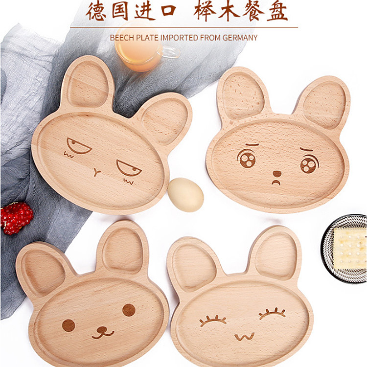 Японская буковая мультяшная обеденная тарелка, тарелка для хлеба, детская тарелка для закусок, деревянная тарелка для фруктового торта, необработанное дерево, неокрашенная цельная древесина