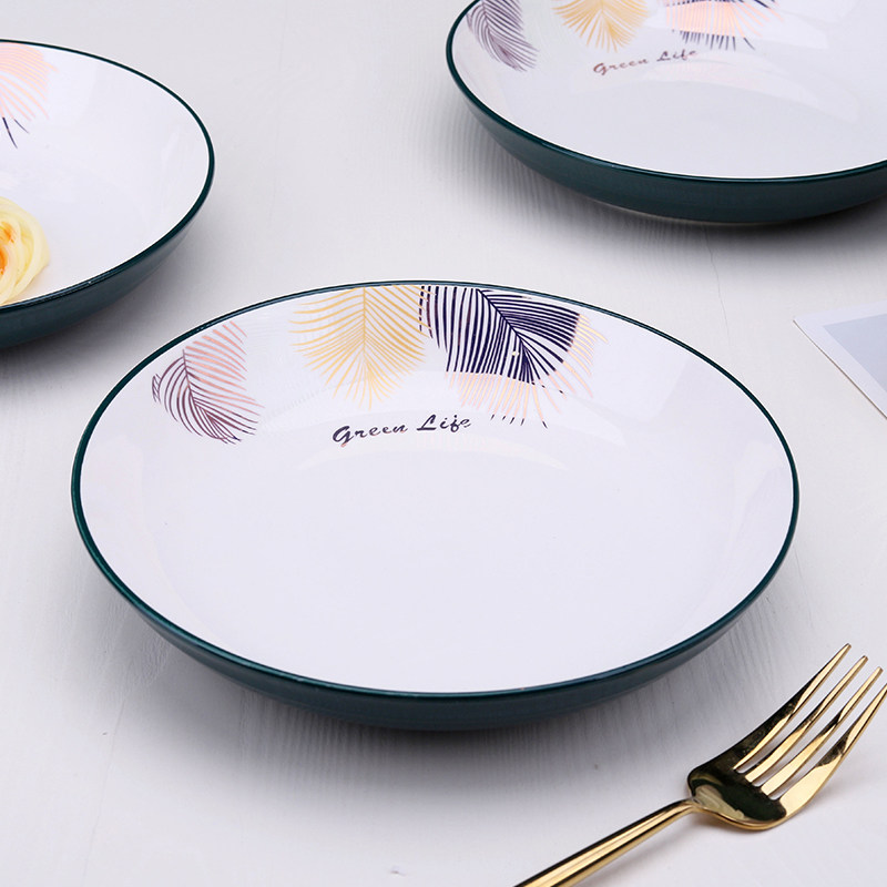 Керамическая тарелка, золотая граница Caudi Round Family Creative 6 Мгновенный европейский диск Simple Nordic Style Internet Red