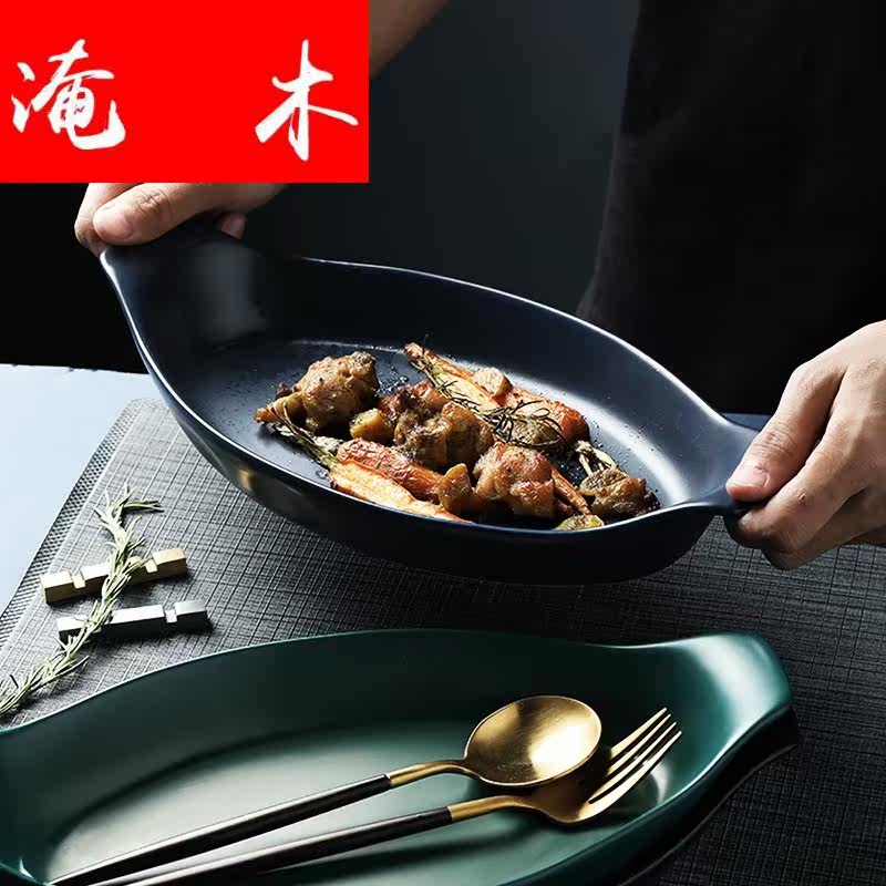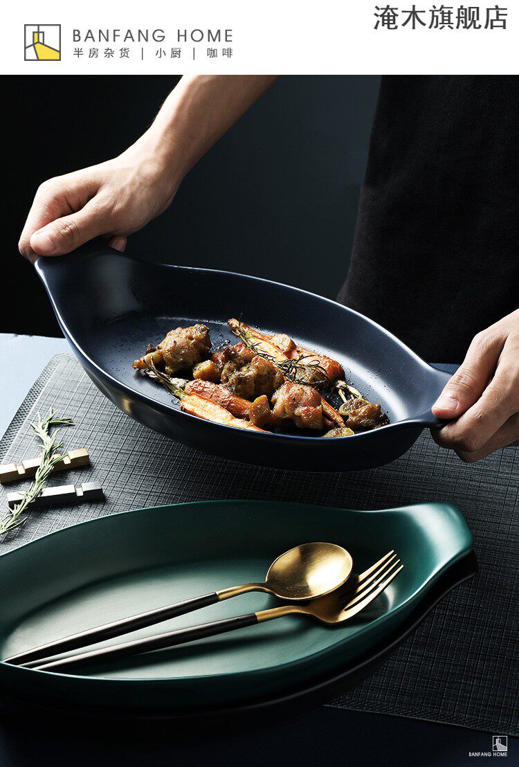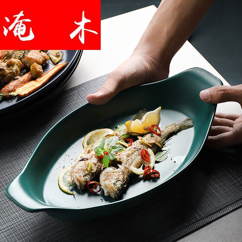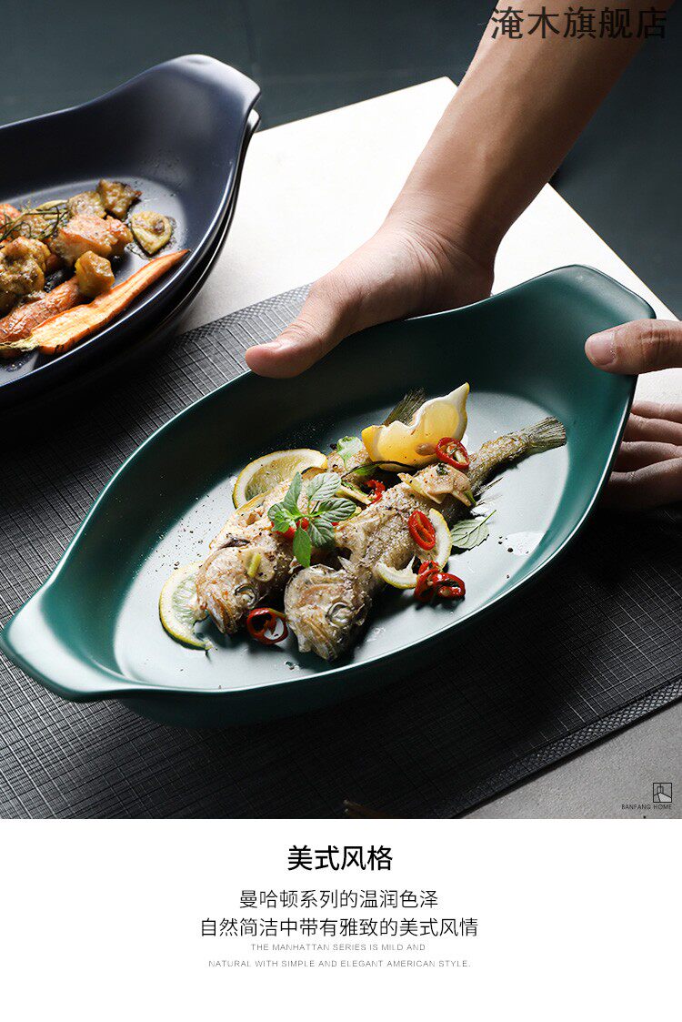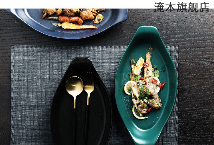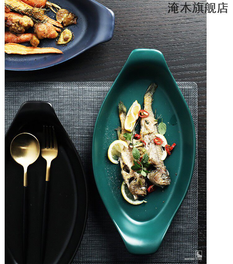 淹木 Ретро -креативная корабль -керамическая рыба для рыбной тарелки запеченная рисовая тарелка с двойным длинным выпечкой кухонный суп