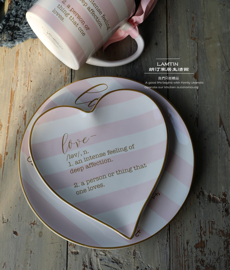 Маленькая свежая розовая девушка в форме сердца с надписью, керамический диск, тарелка для любви, чашка, подглазурная цветовая технология