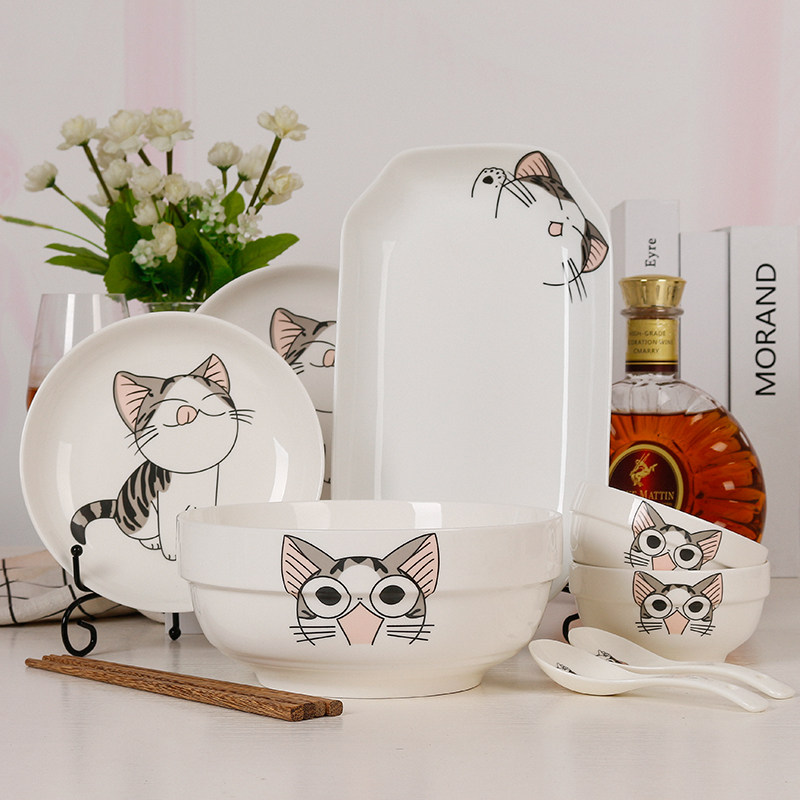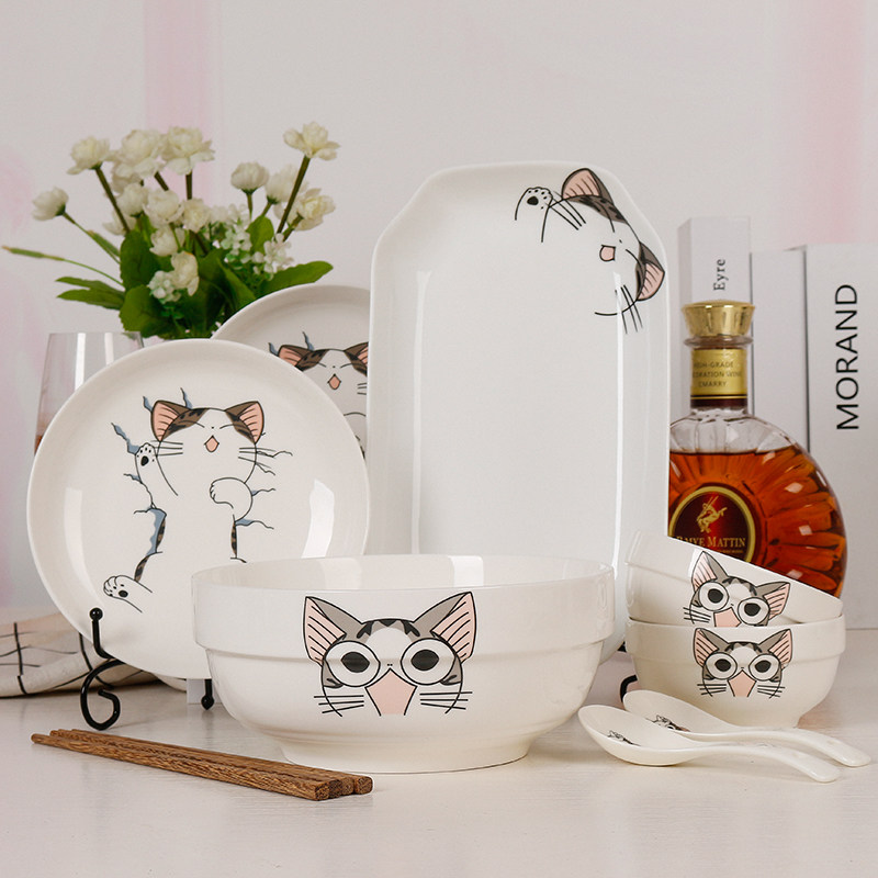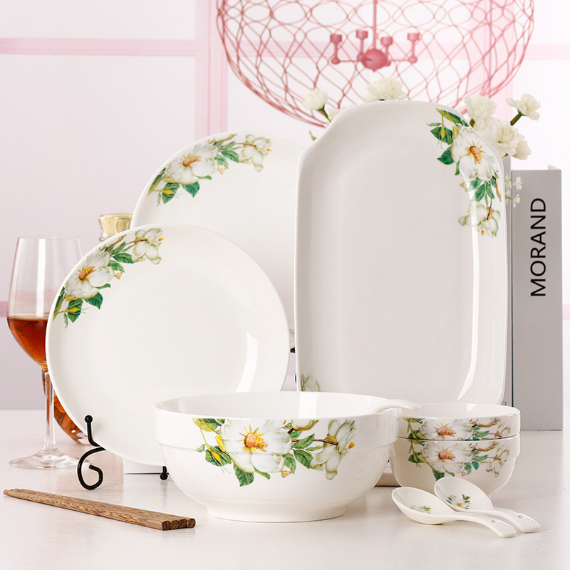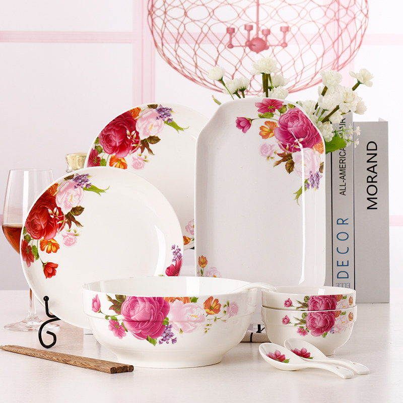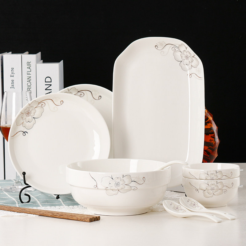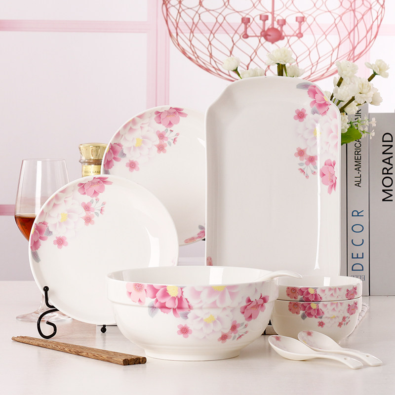 Jingdezhen Ceramic Tableware 9 -Peece набор домашних простых блюд Творческие рисовые блюда, посуда Spoon Комбинированная микроволновая печь