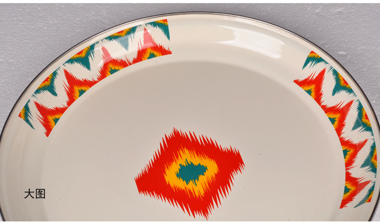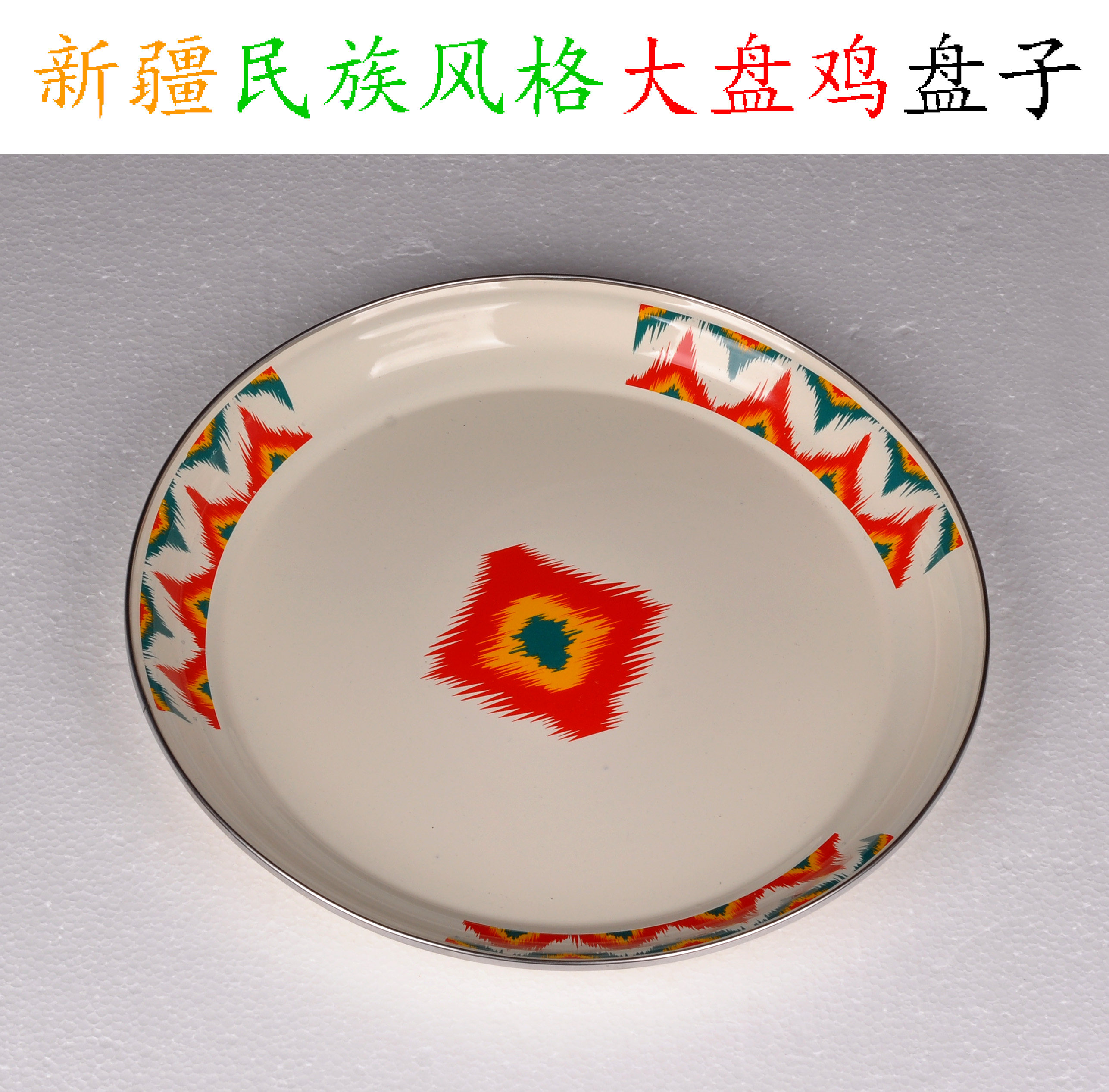 Рекламный этнический ресторан в стиле Синьцзян, 14-дюймовая круглая тарелка, куриная тарелка, тарелка для плова, круглая тарелка из нержавеющей стали, эмалированная тарелка