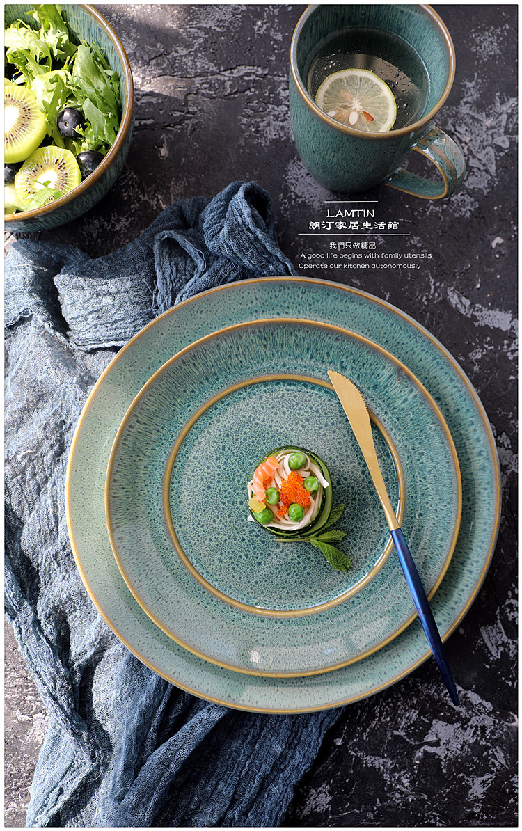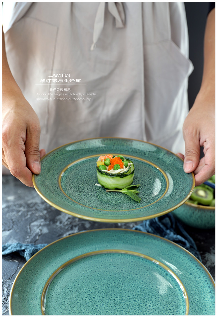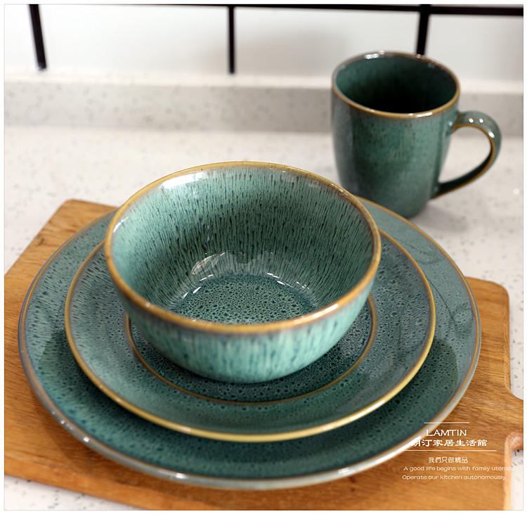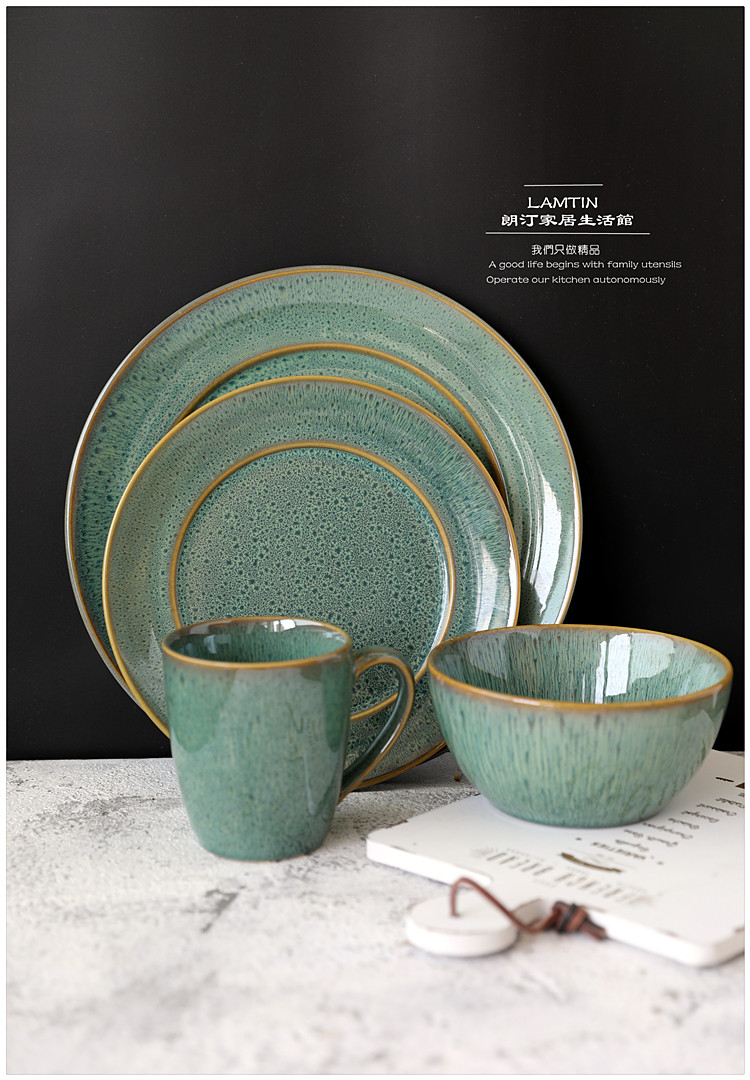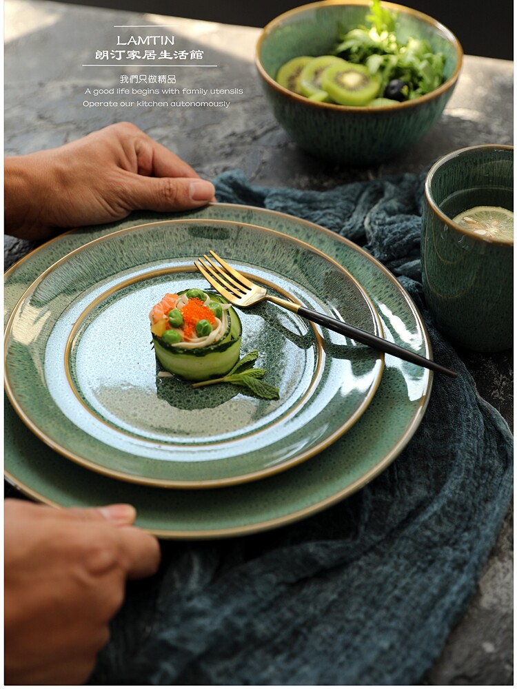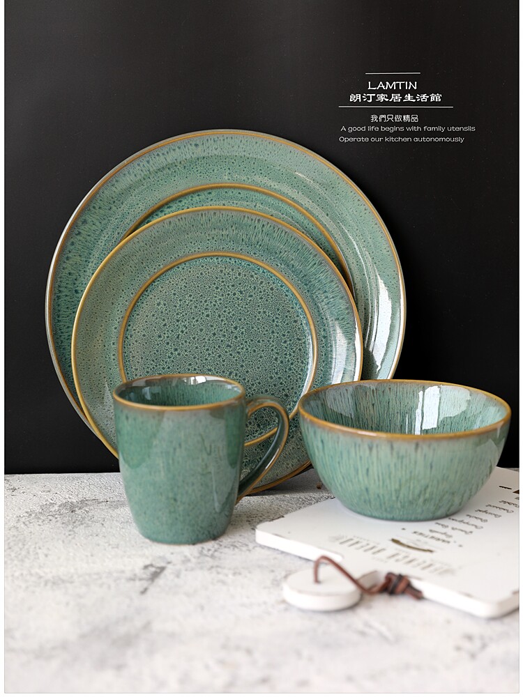 Печата печь изменить Grave Green Retro Ceramics Tableware Furniture Beauty Bowl Vanade Caudi Plate