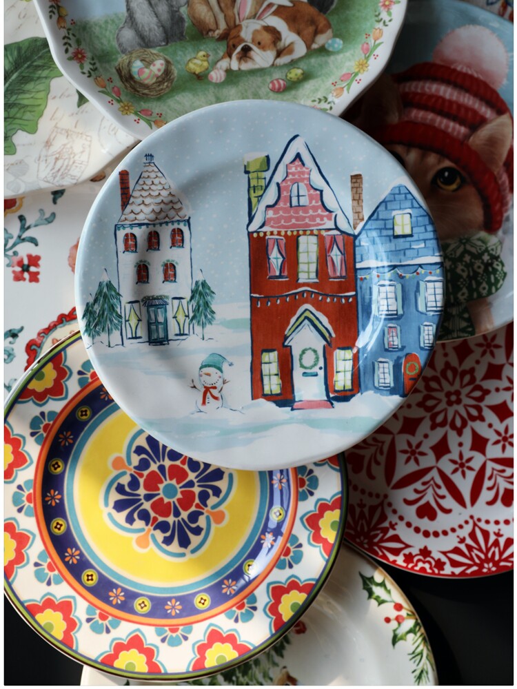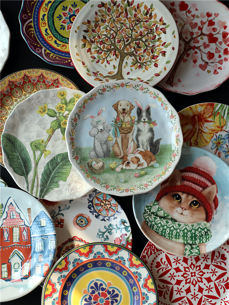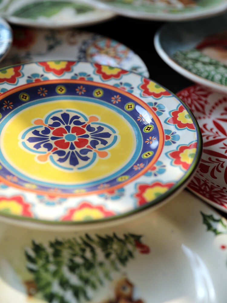 (Трансграничная торговля), керамическая посуда, обеденная тарелка, стиль бохо