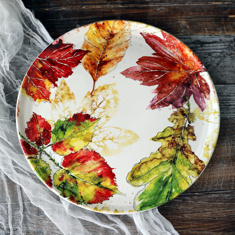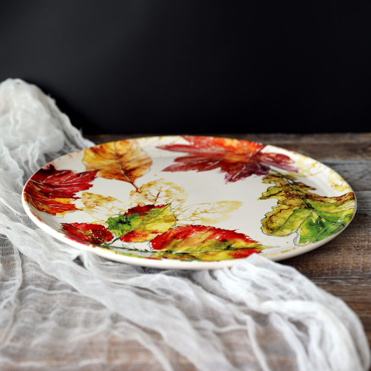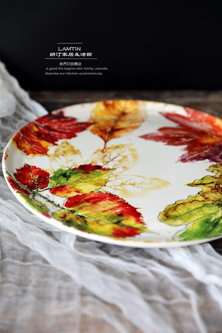 11-дюймовая большая тарелка с кленовым листом, креативная керамическая посуда, домашняя тарелка, обеденная тарелка, тарелка для клецок, тарелка, тарелка для макарон