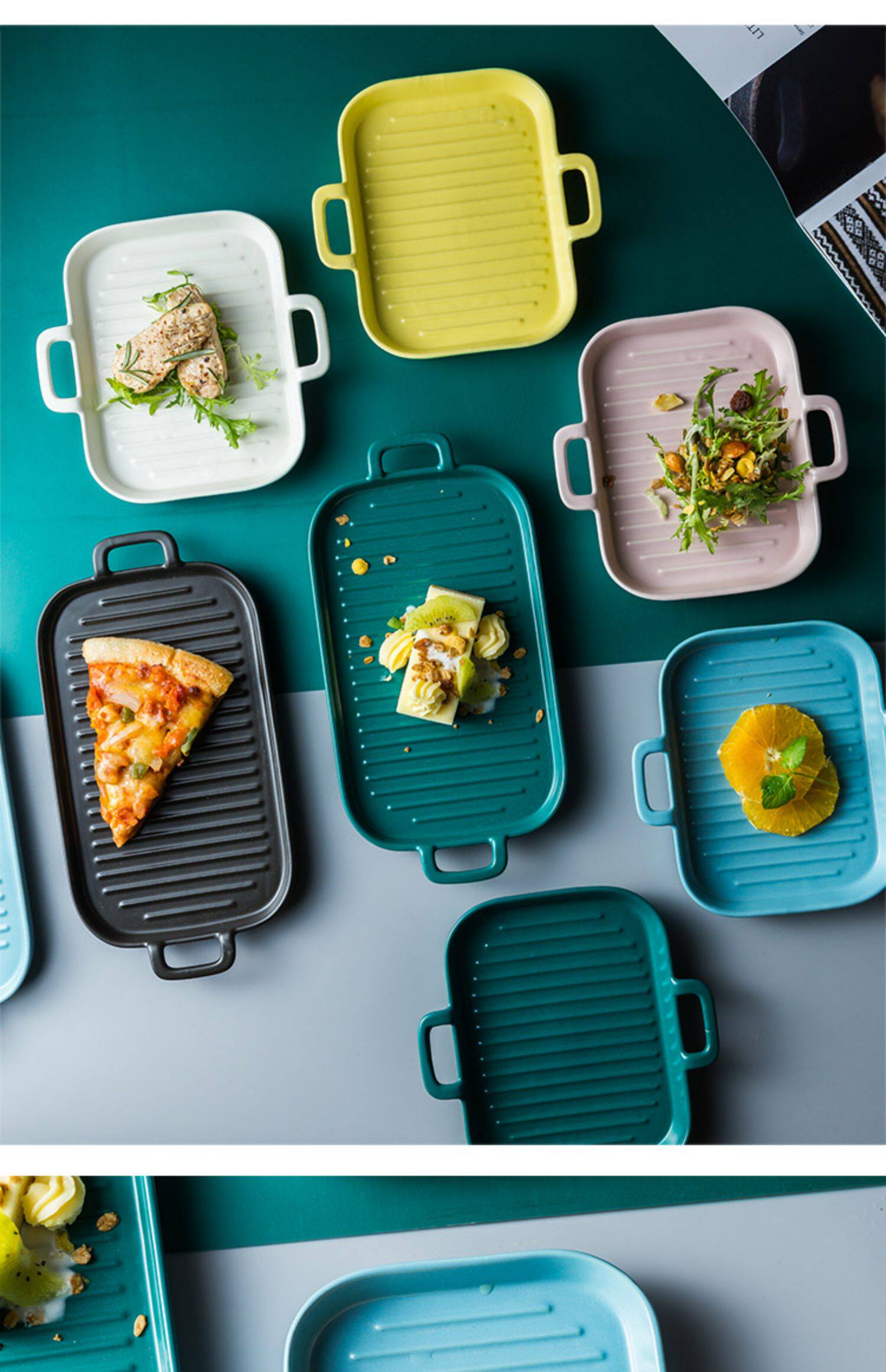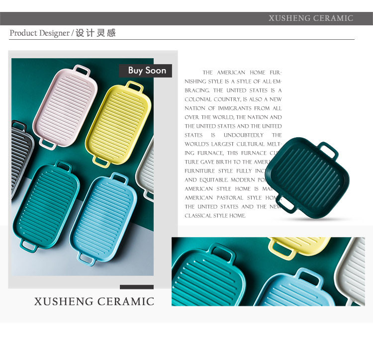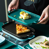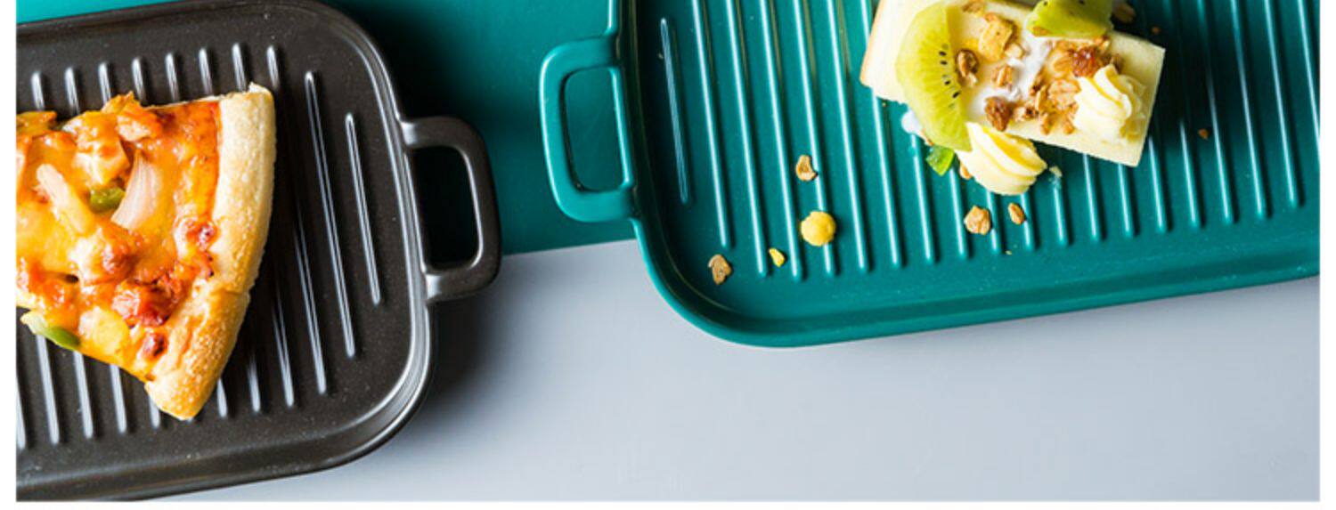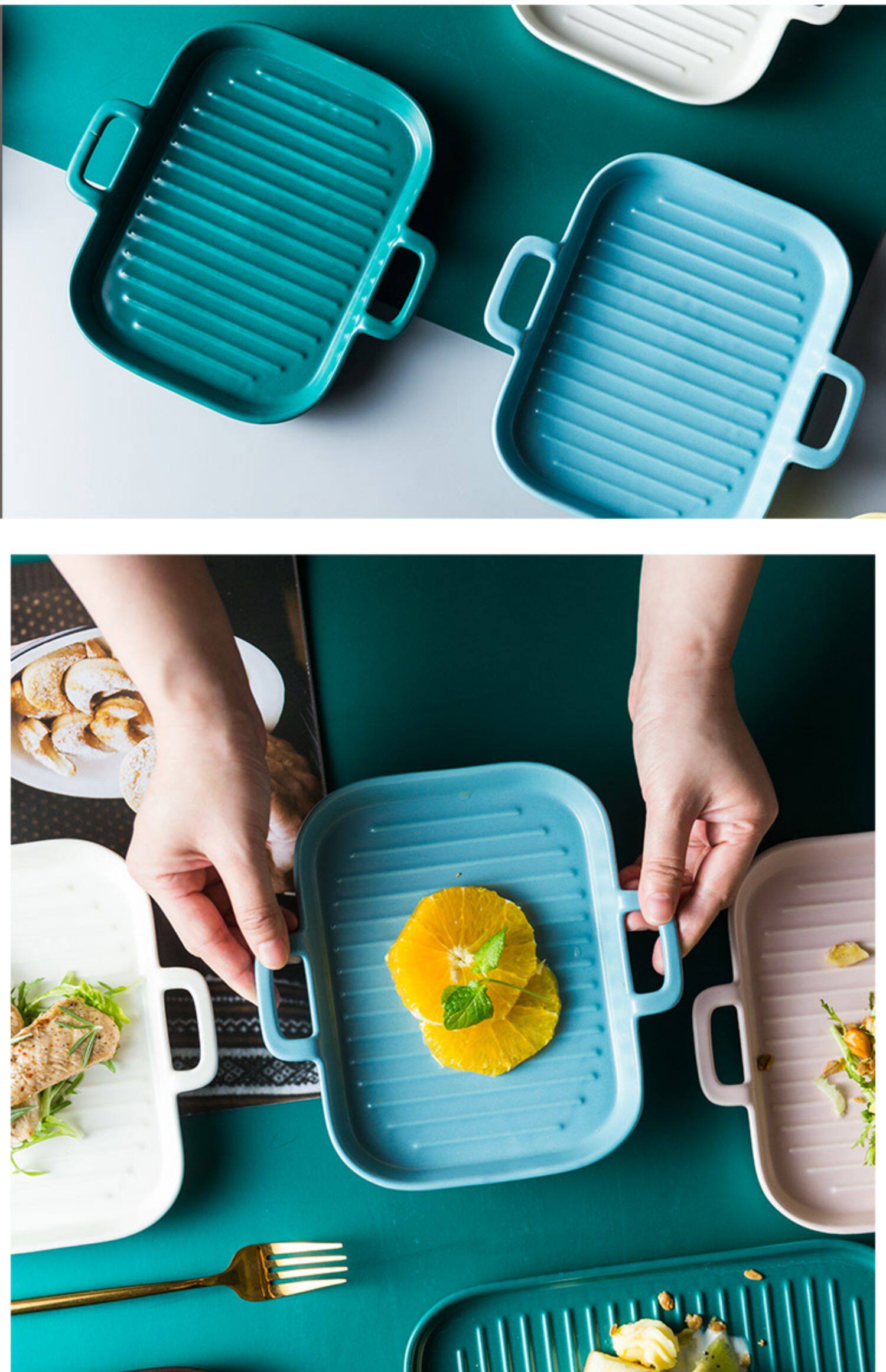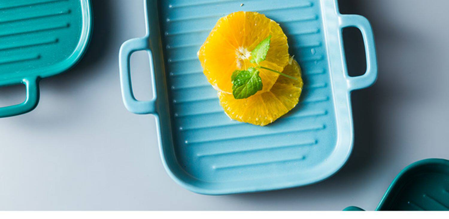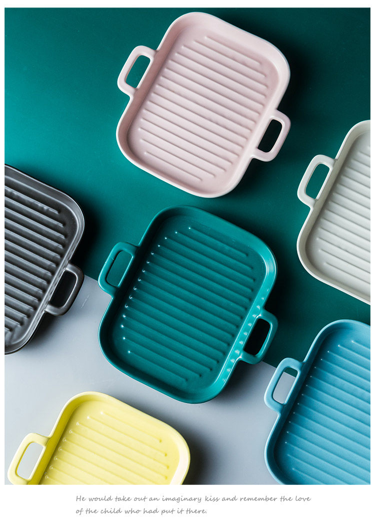 [北欧陶瓷双耳盘子托盘 家用早餐盘西餐盘餐具 烘焙烤盘长方形盘子]