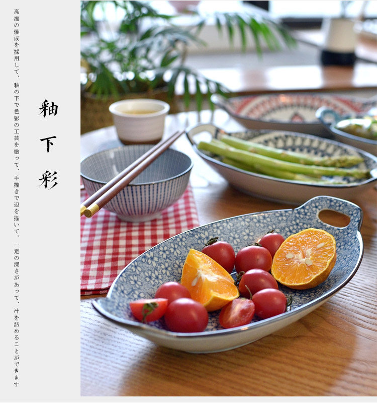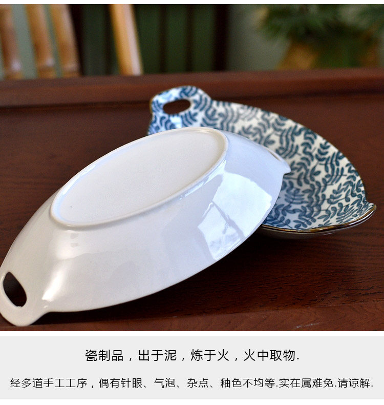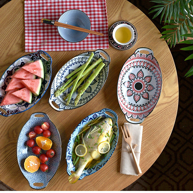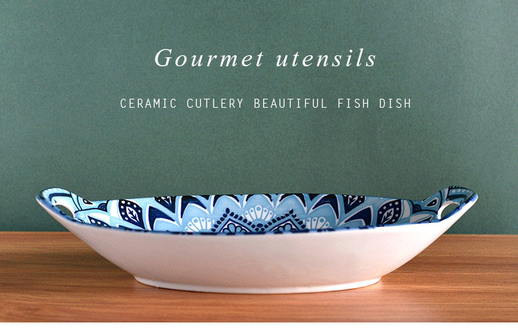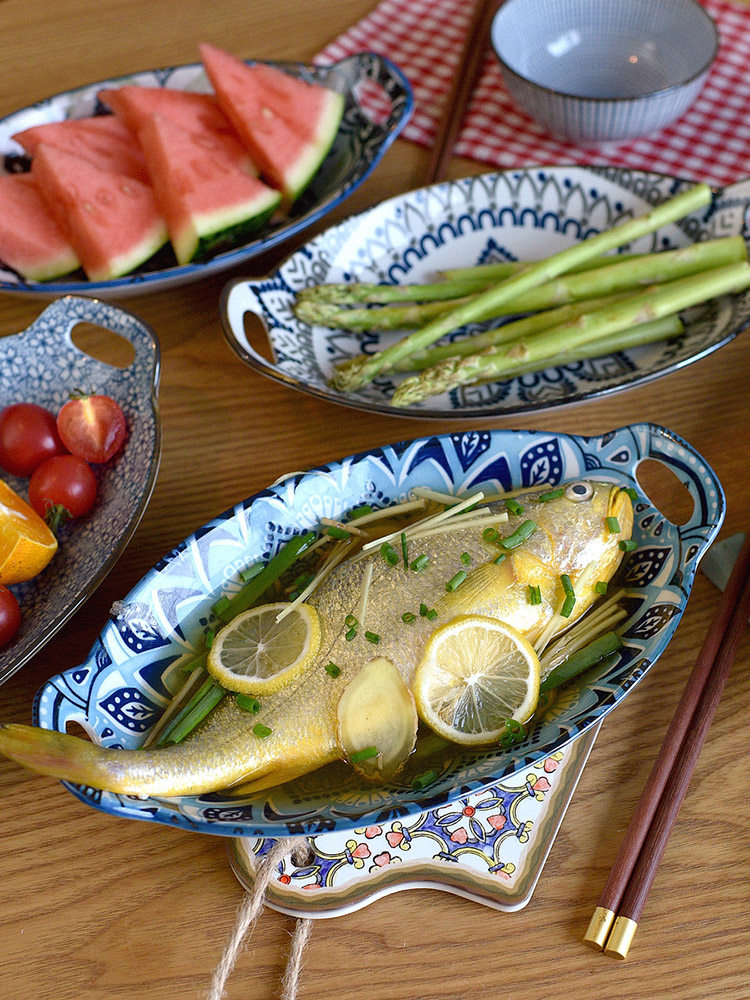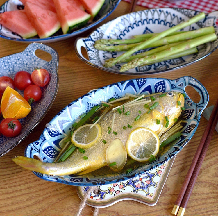 Ностальгическая подглазурная рыбная тарелка в стиле ретро, керамическая тарелка с двумя ручками, гладильная, литературная, ручная роспись, овальная большая тарелка
