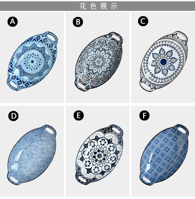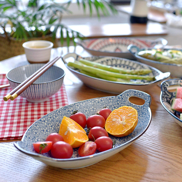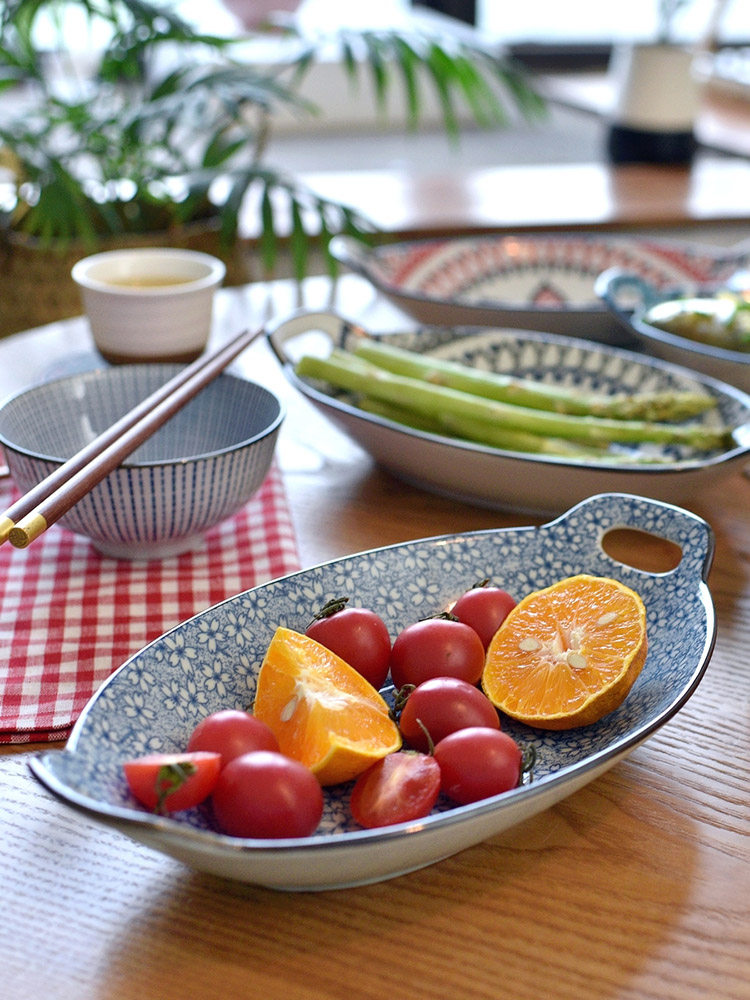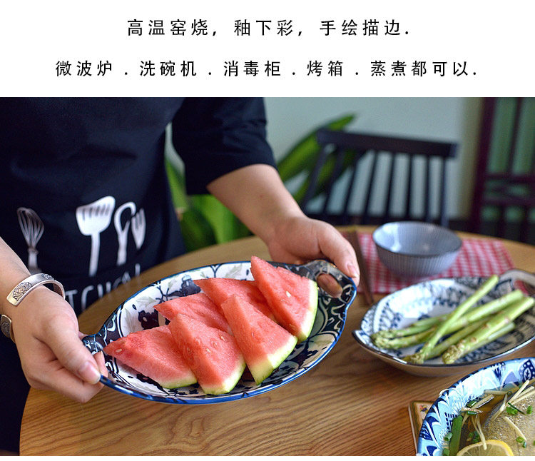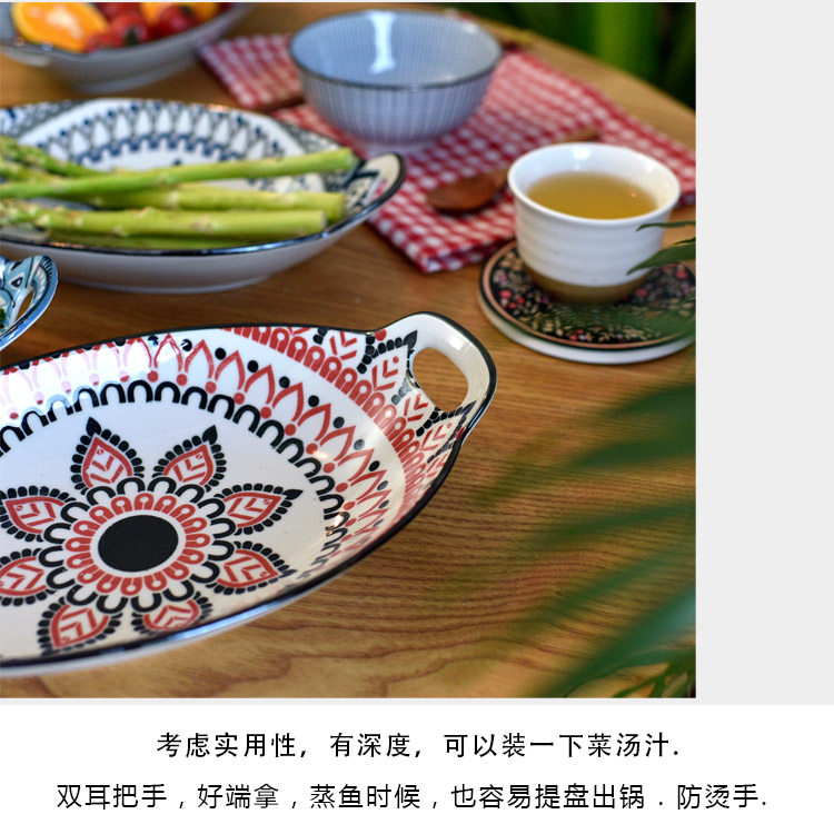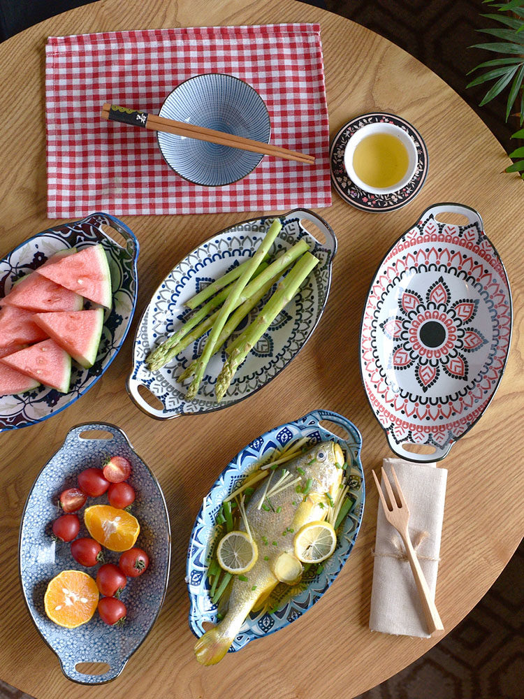 Ностальгическая подглазурная рыбная тарелка в стиле ретро, керамическая тарелка с двумя ручками, гладильная, литературная, ручная роспись, овальная большая тарелка