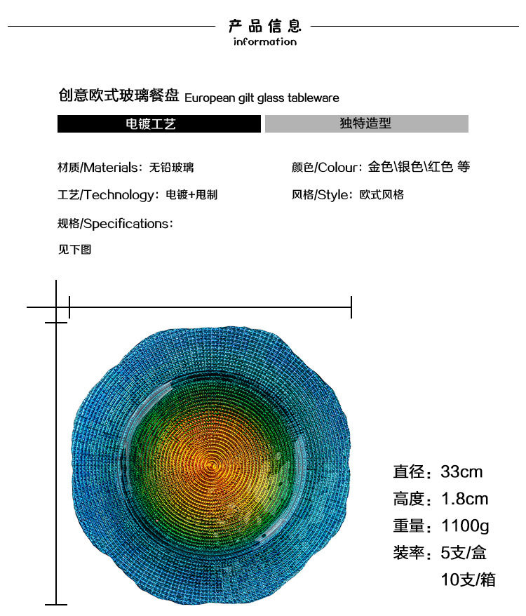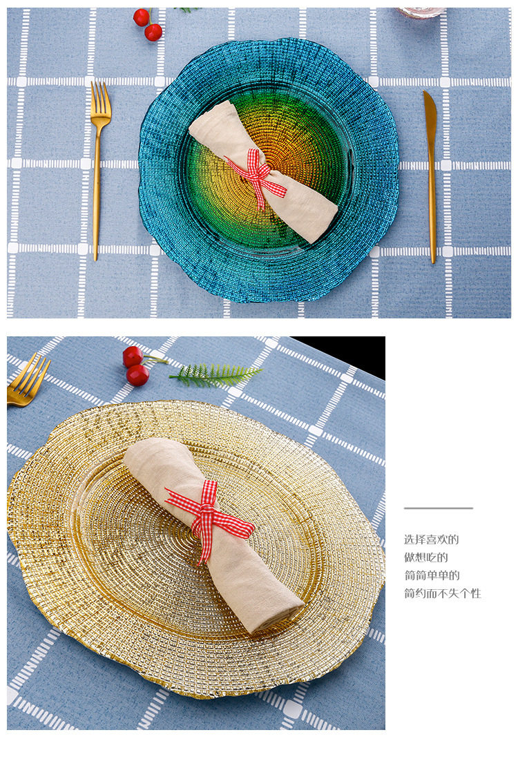 Европейские и американские доллары цветовые стеклянные поддоны из бисеро -тарелки в стиле европейского в стиле западного диска для бычья стейк салат пластинка причуда
