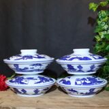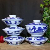 Джингджэнь тарелка под глазурью красочная четыре -в одном блюдо творческое китайское синий и белая фарфоровая миска Домашняя набор с комбинацией чаши с крышкой