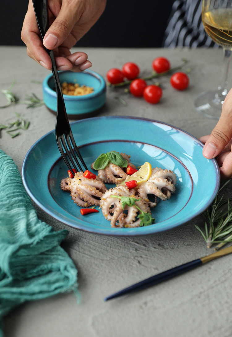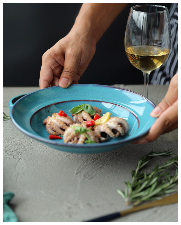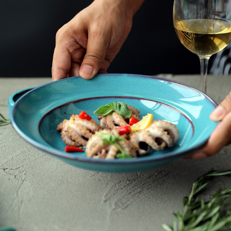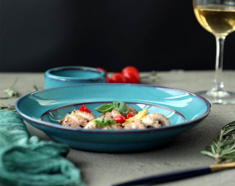 | Цвет: | Медно-зеленое глубокое блюдо, Темно -синяя глубокая тарелка |