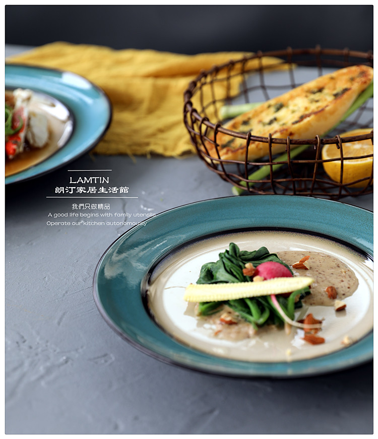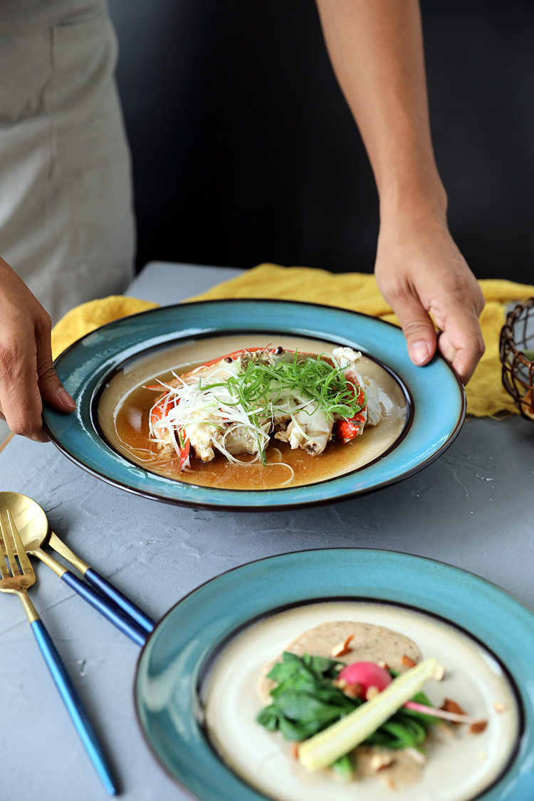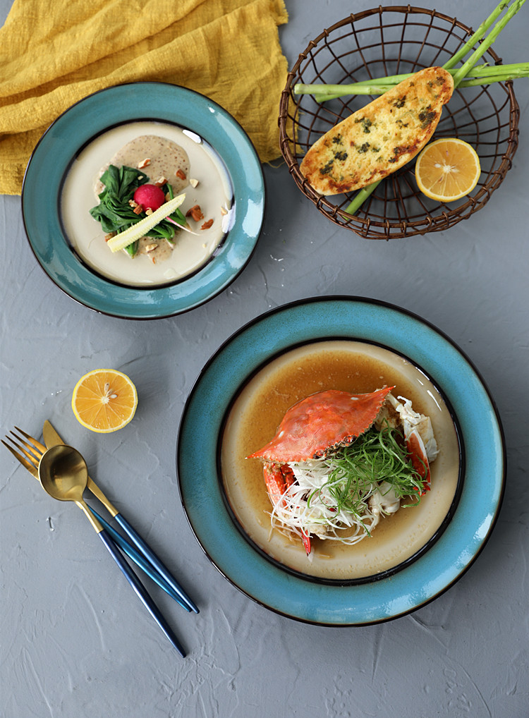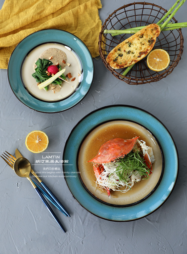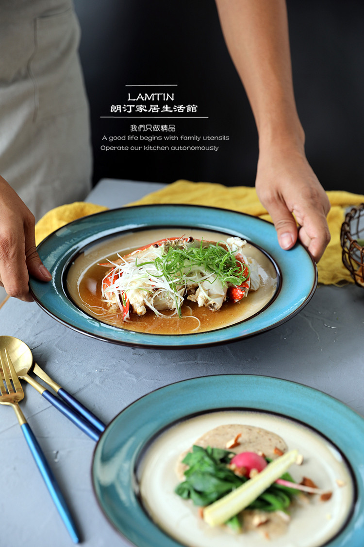 Японская упрощенная печь -цепляющая глазурная ретро -керамические блюда стейк западная столовая.