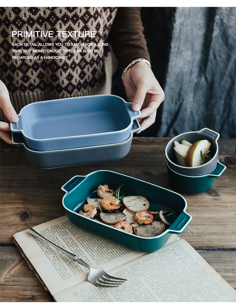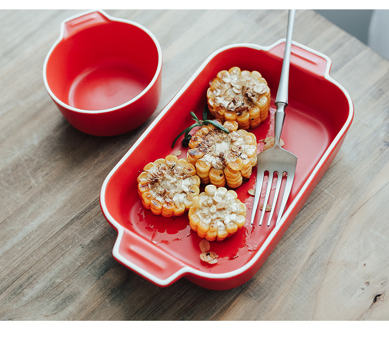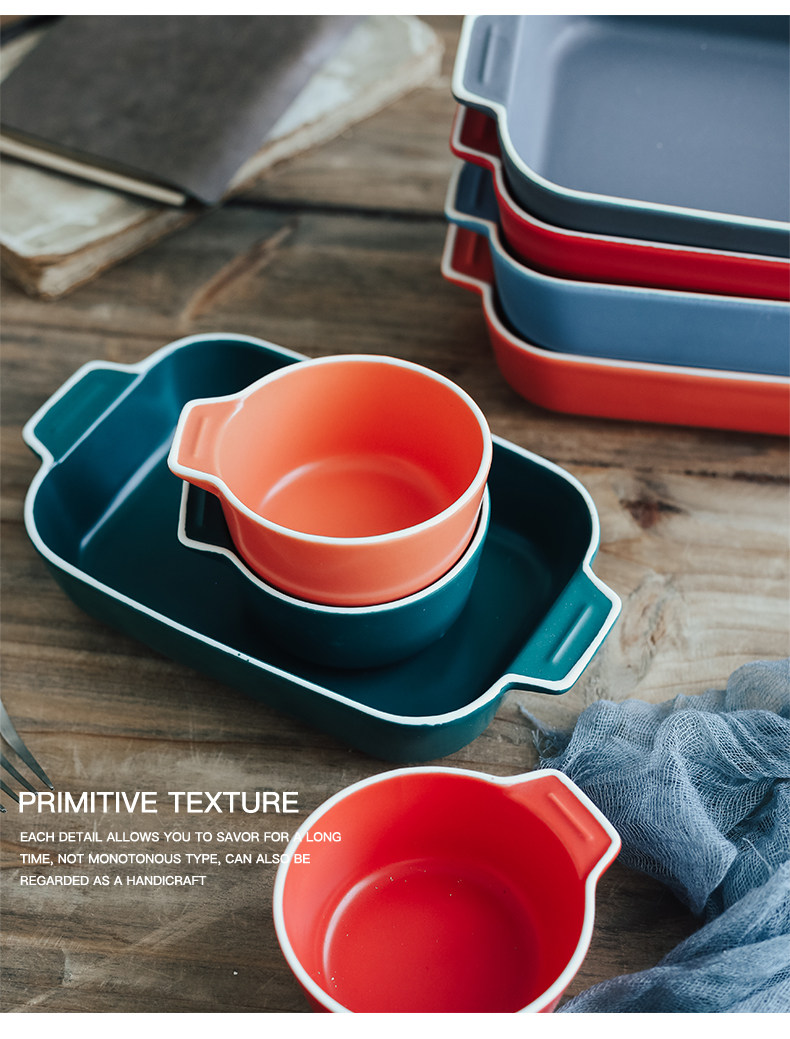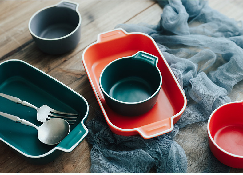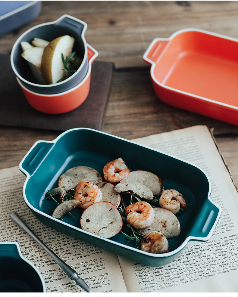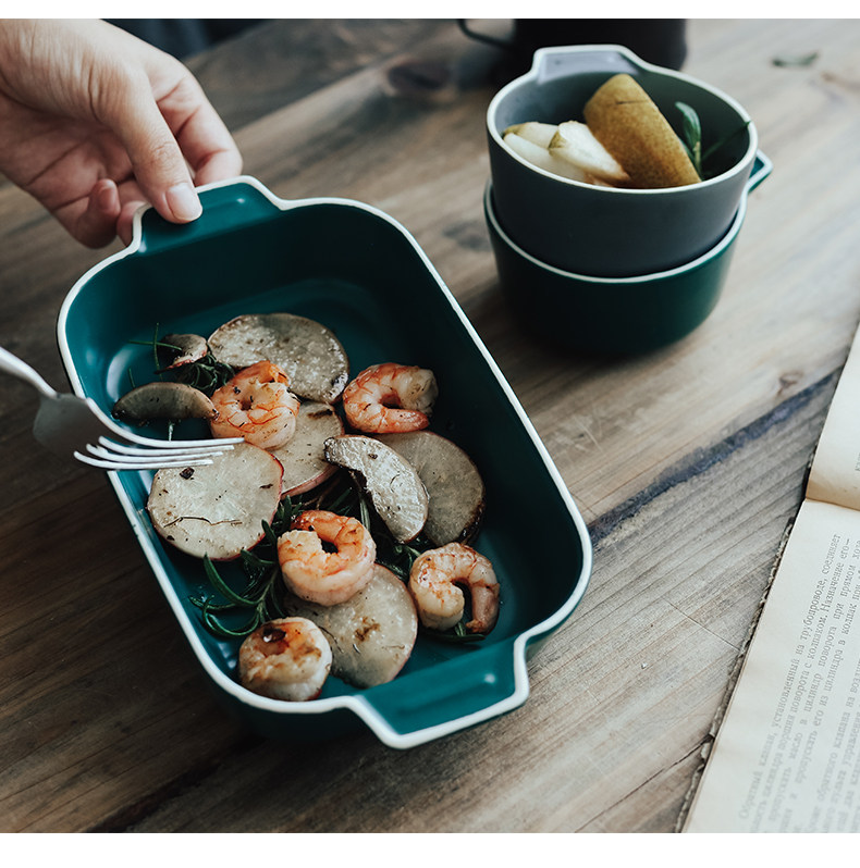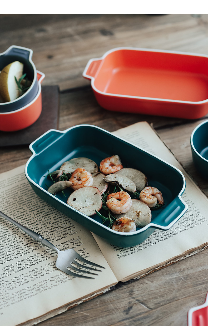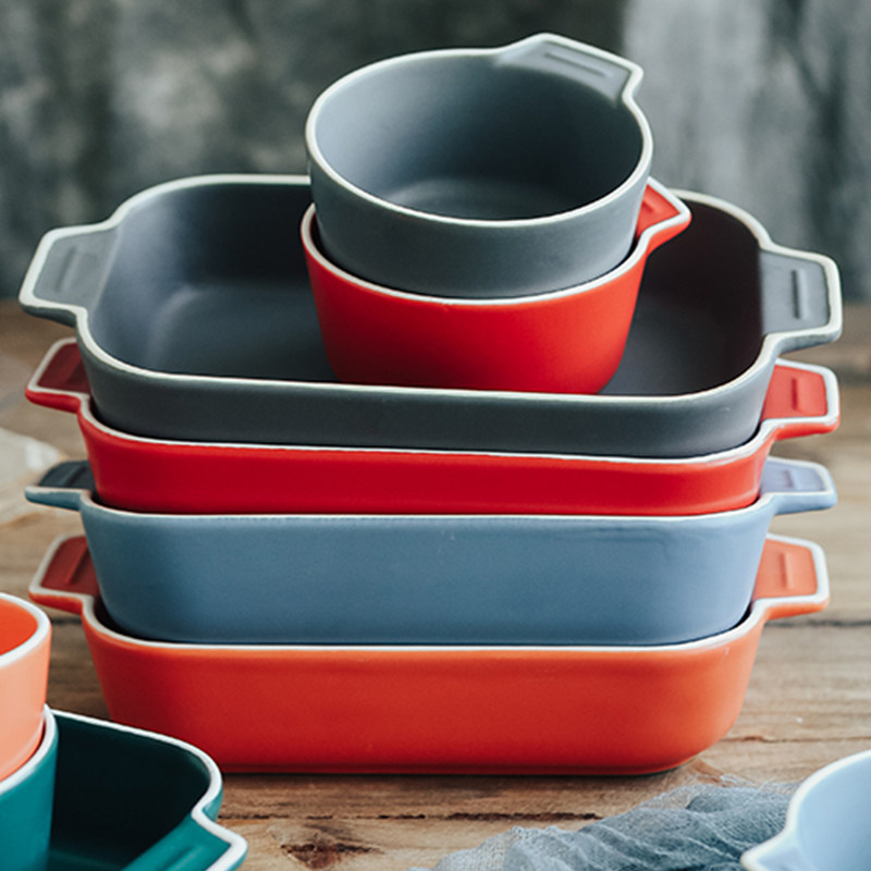 Двойная жареная чаша для выпечки для выпечки керамики сыр запеченная рисовая тарелка.