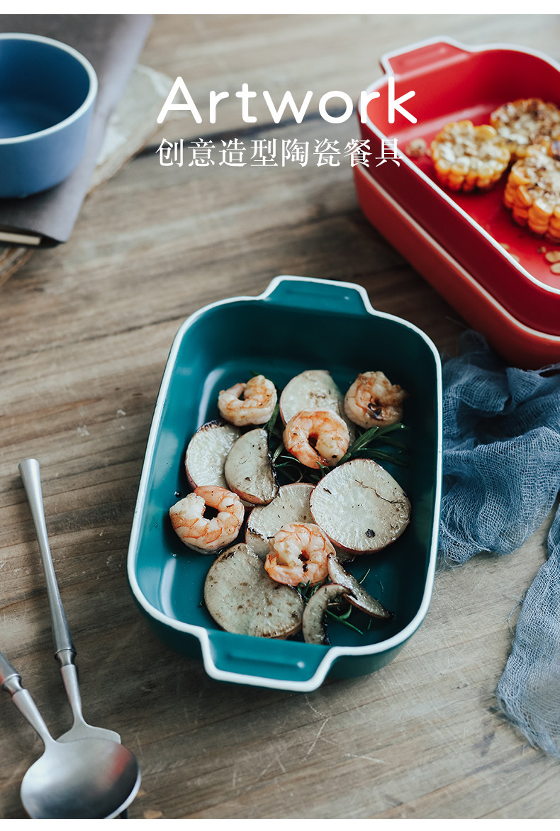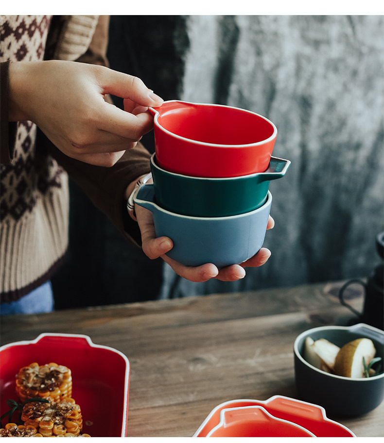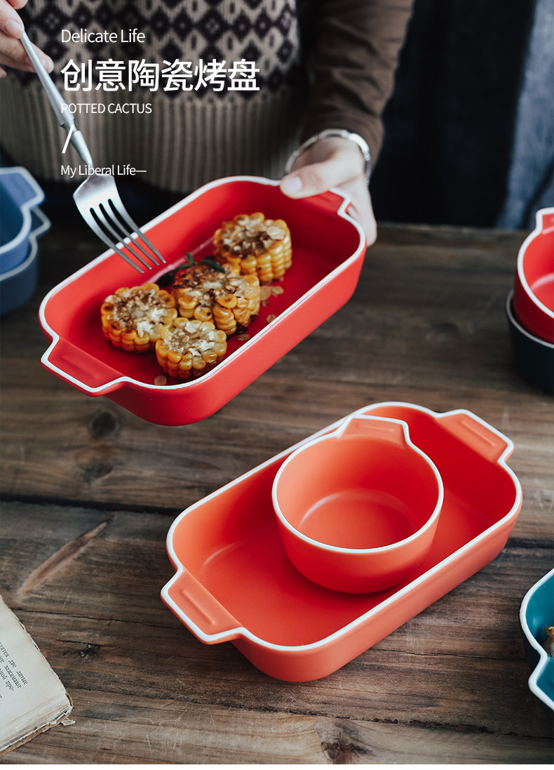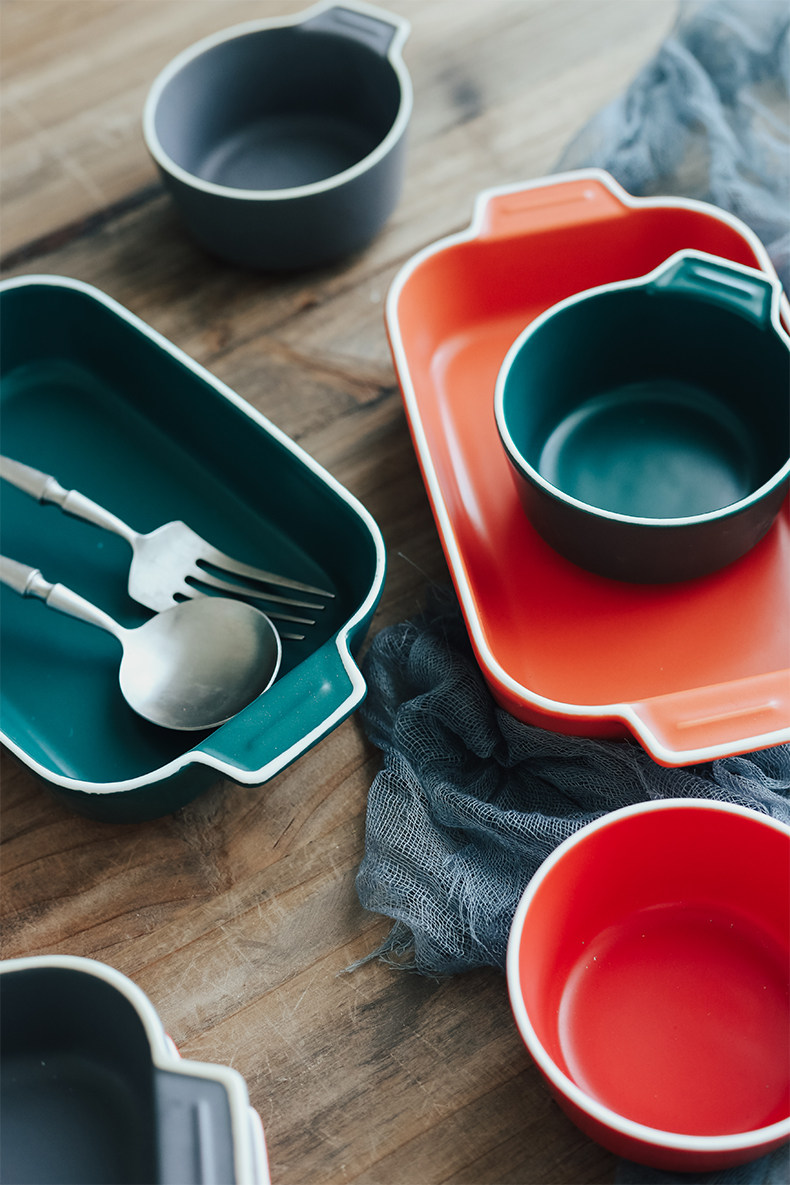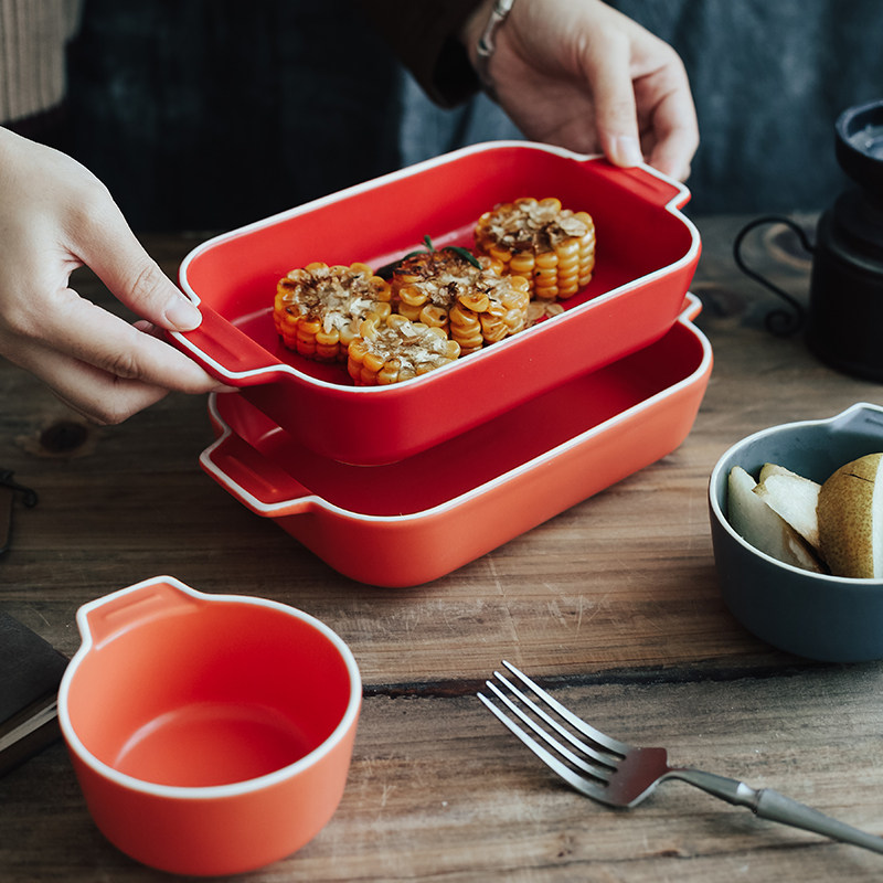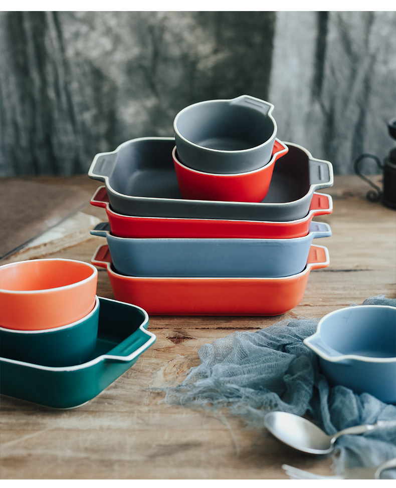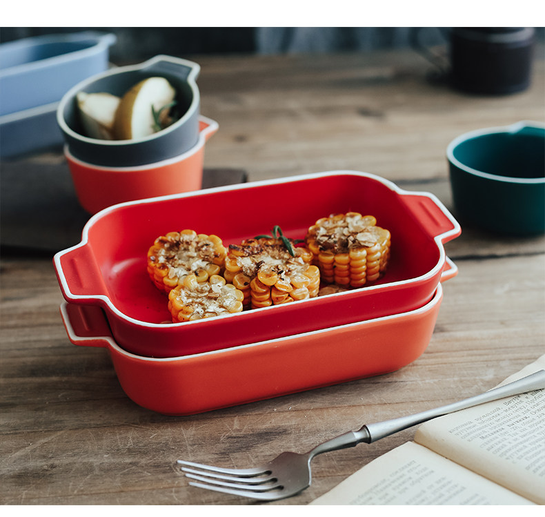 Двойная жареная чаша для выпечки для выпечки керамики сыр запеченная рисовая тарелка.