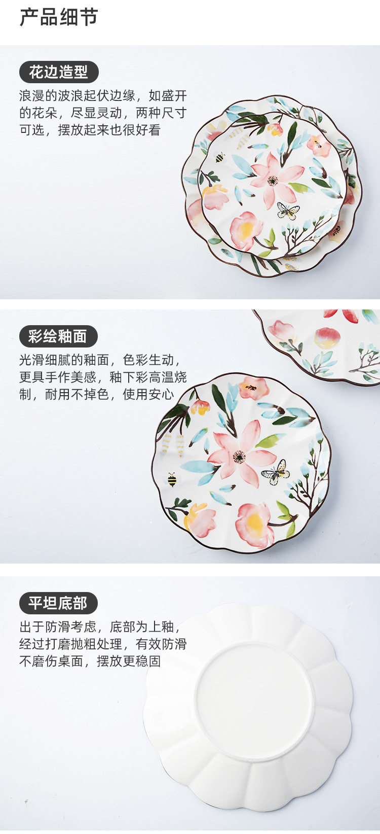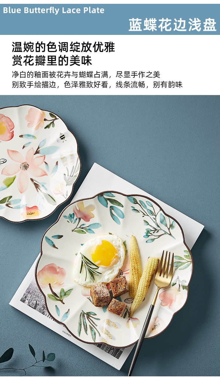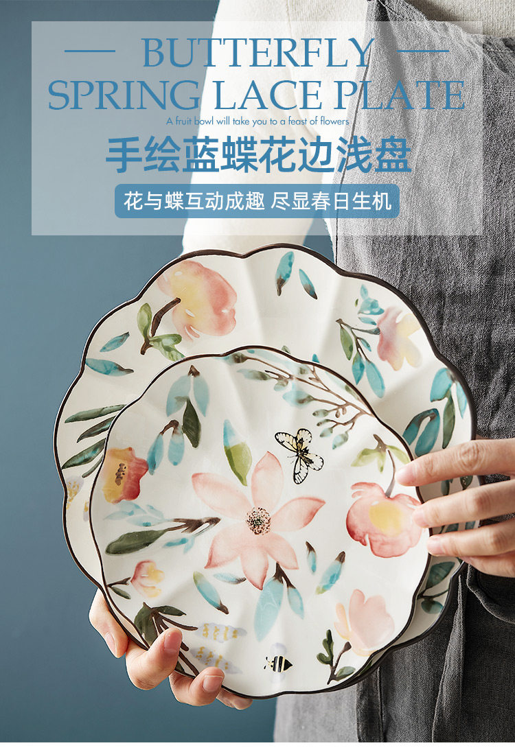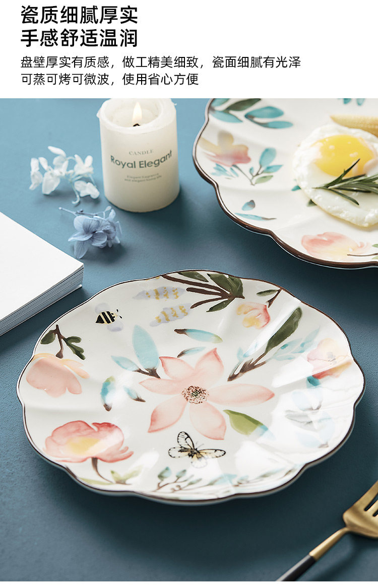 Скандинавская пасторальная керамическая тарелка с ручной росписью, домашняя персонализированная кружевная тарелка, японская креативная подглазурная красочная круглая обеденная тарелка, тарелка с фруктами