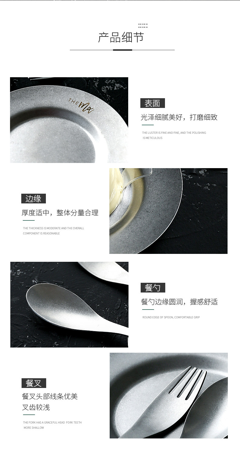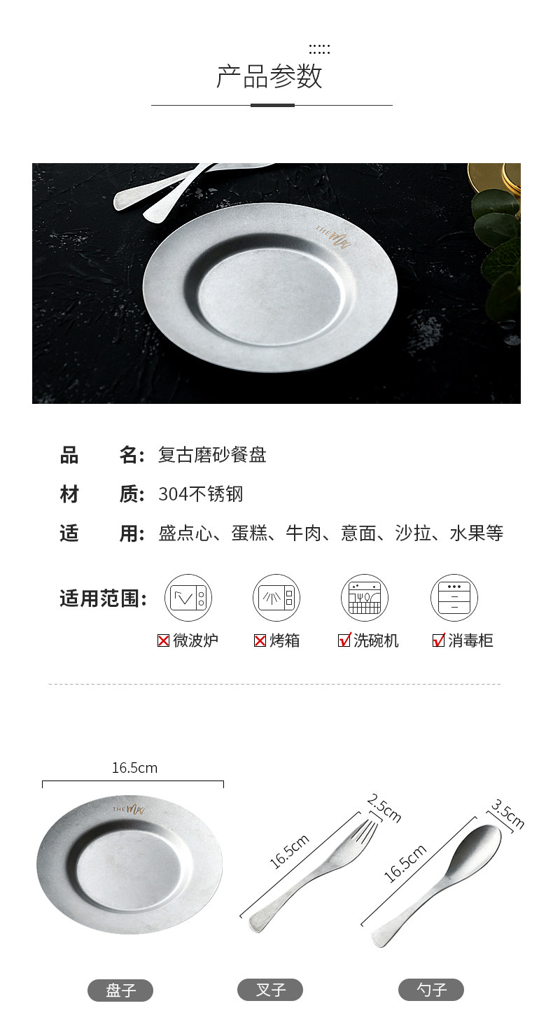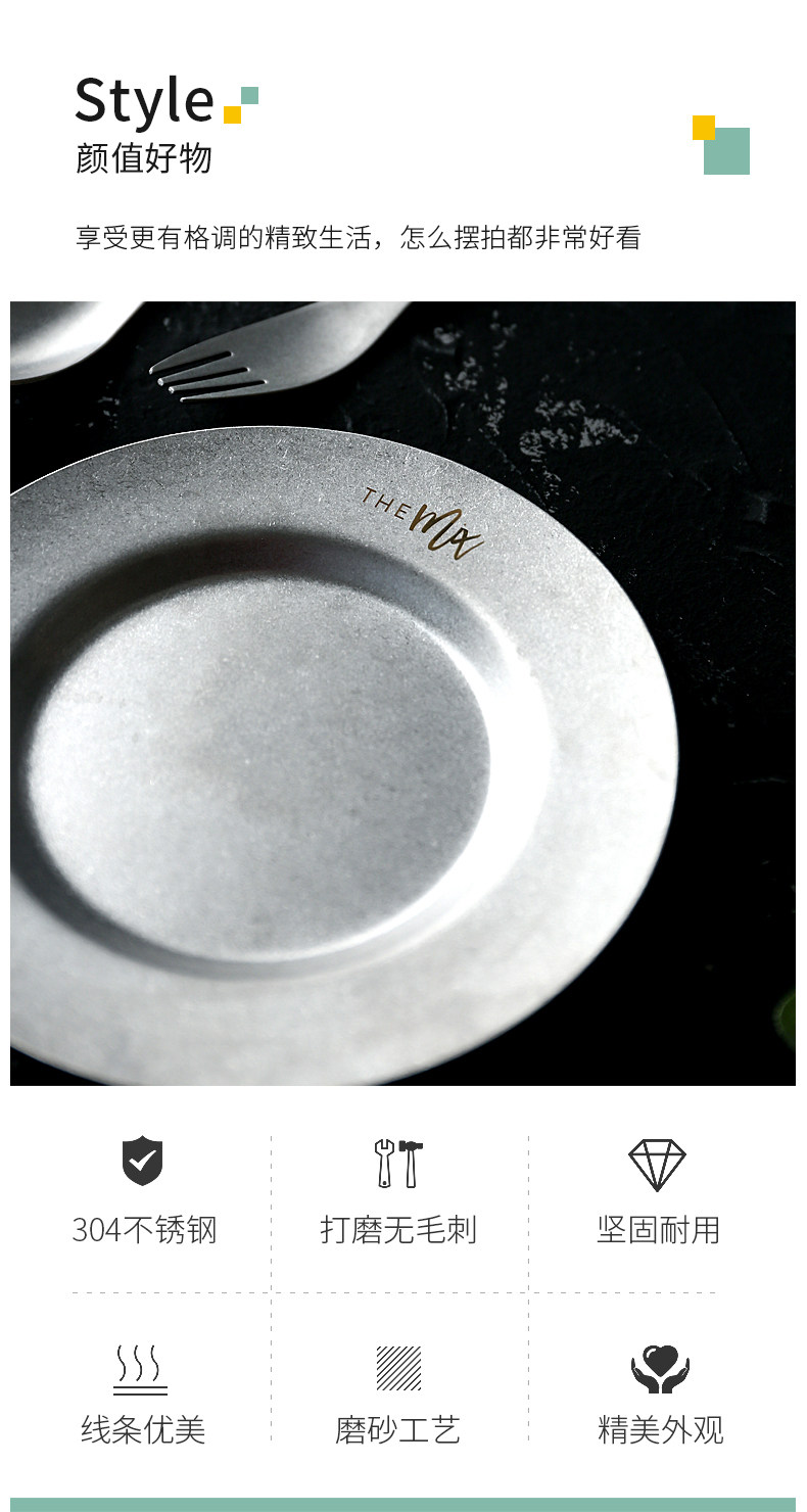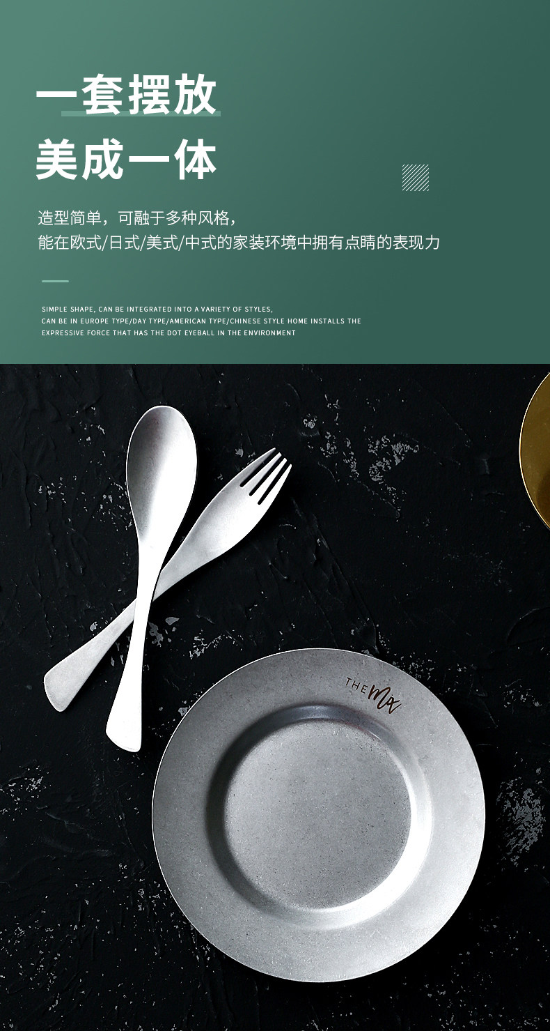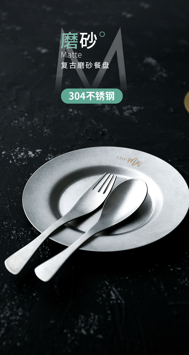 Ретро посуда из нержавеющей стали, комплект, обеденная тарелка, европейский стиль