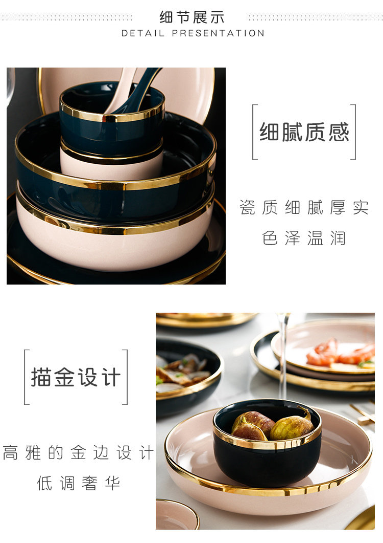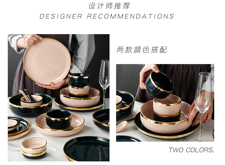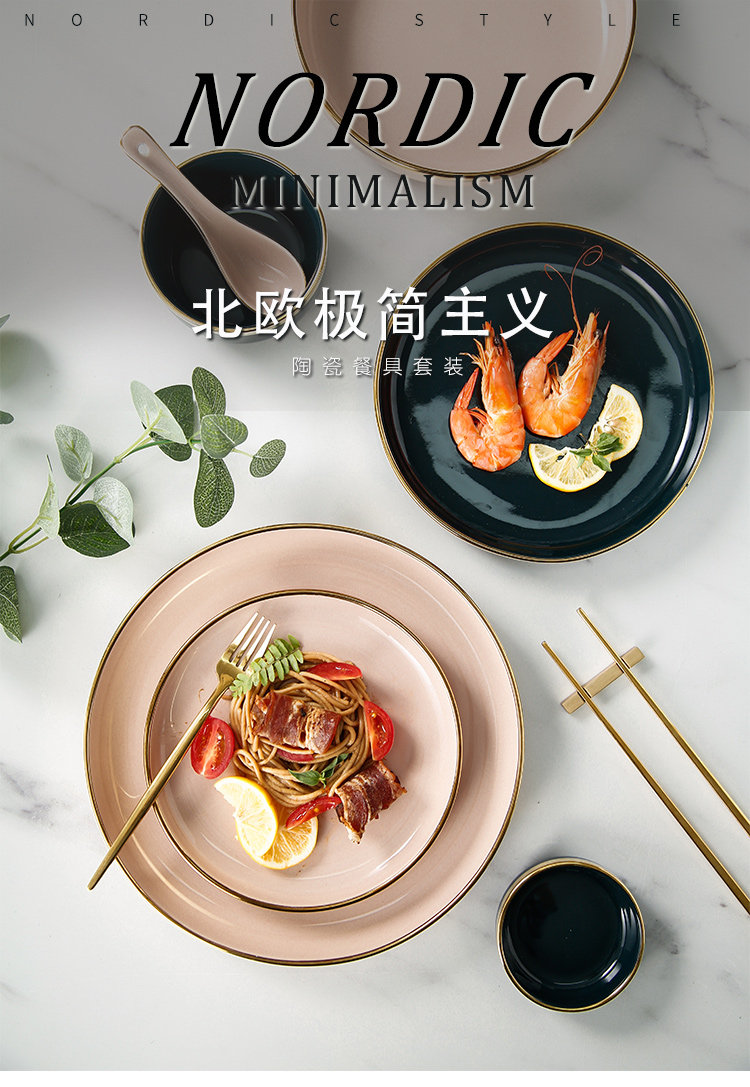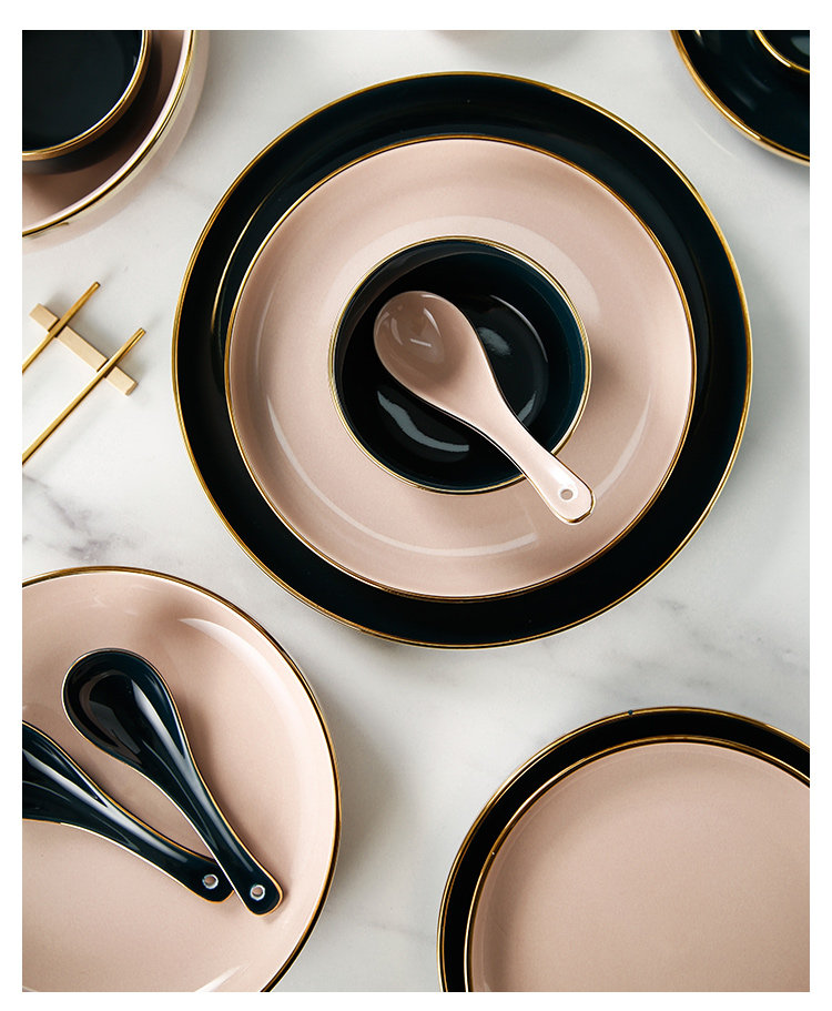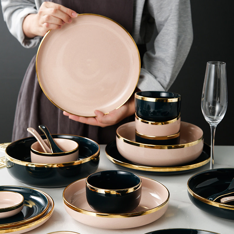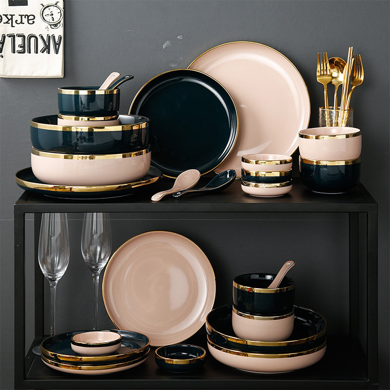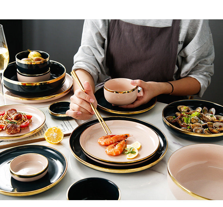 Легкое роскошное блюдо блюдо из бычья диск десерт тарелка Западная обеденная тарелка Nordic Dailware Set Set Settement Home Ceramic Bowl Plate Комбинация