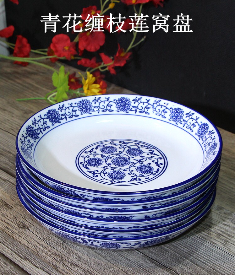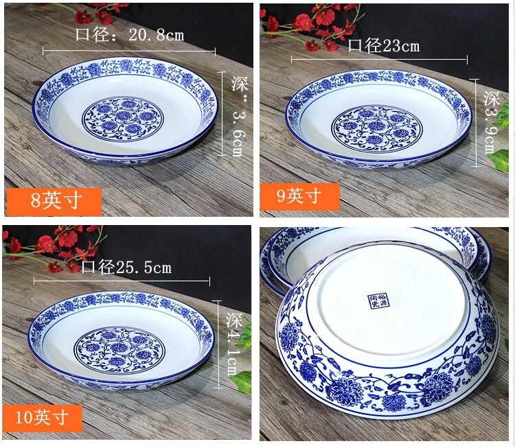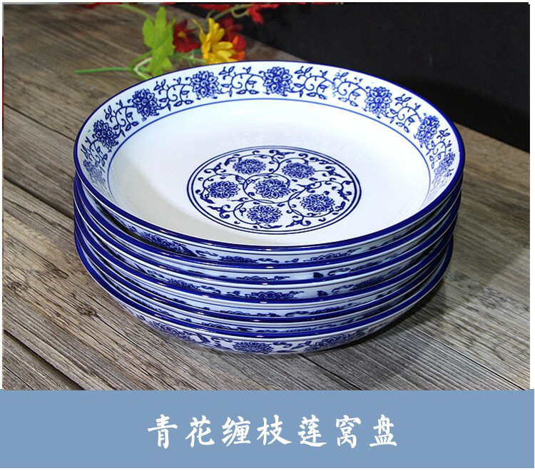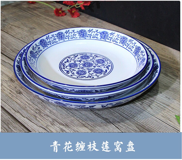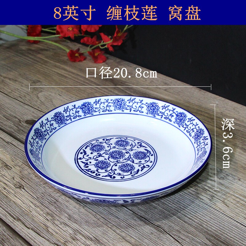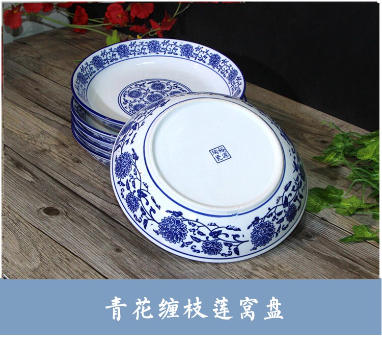 Джингджэнь сине -белая тарелка китайская стиль подглазе красочное круглое овощное гнездо гнездо.