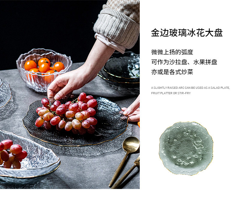 Phnom Penh Стеклянная тарелка фруктовой диск овощная пластина для тарелки десерт диск диск Creative Network Red Tableware ins ins ins