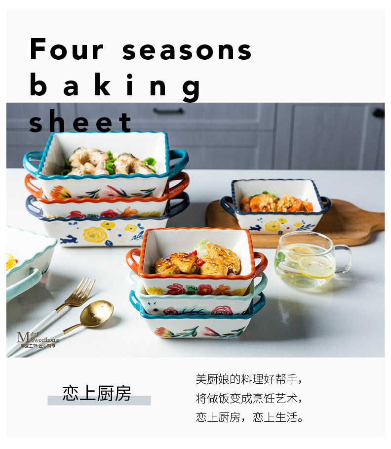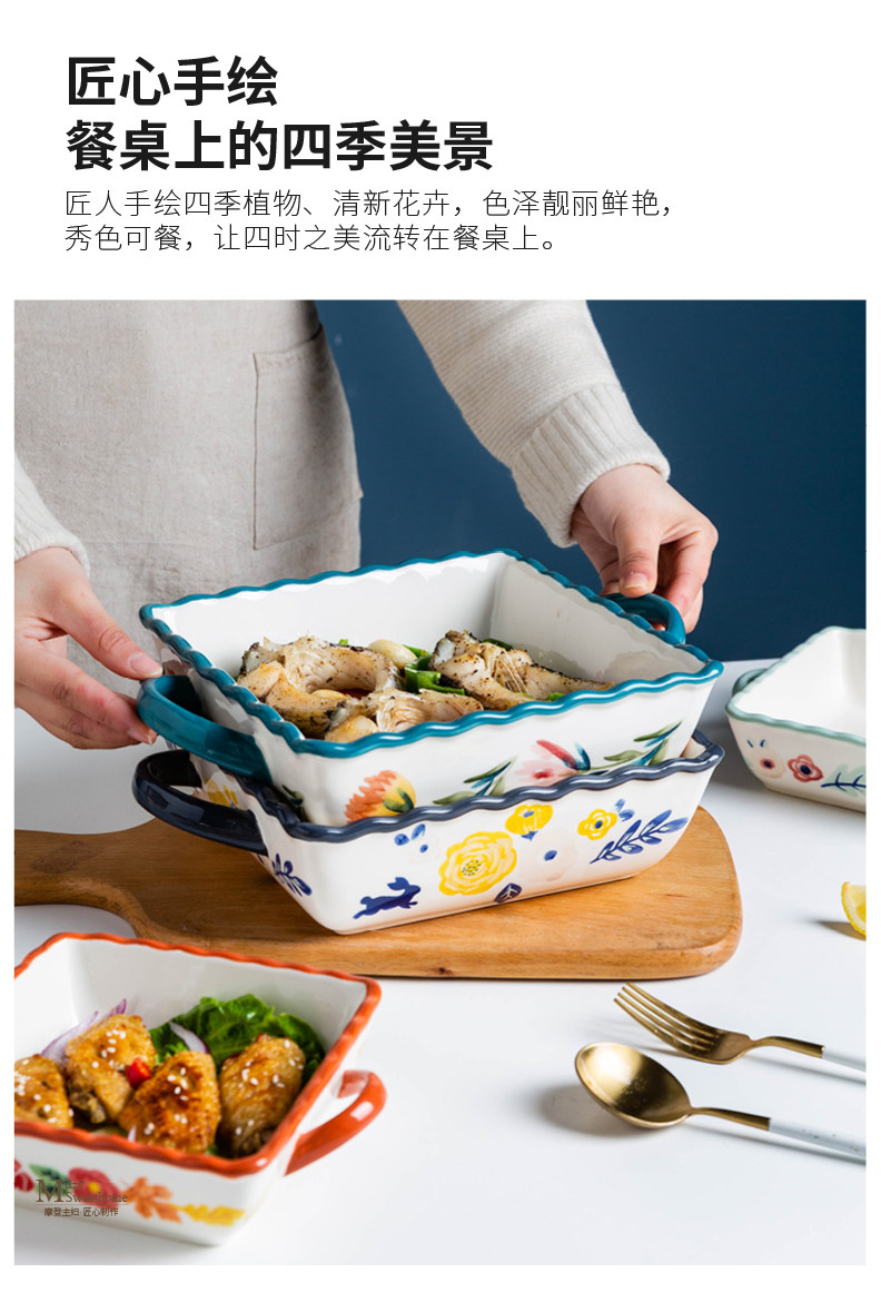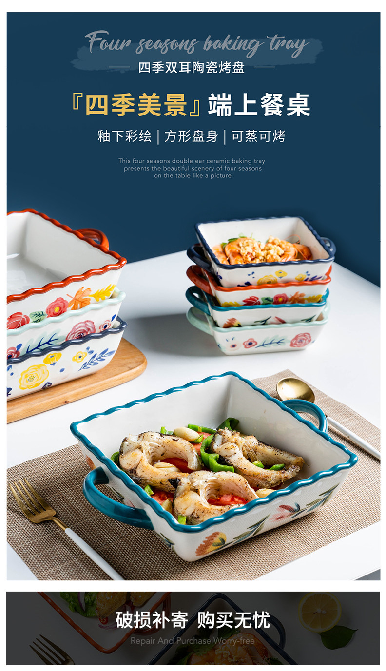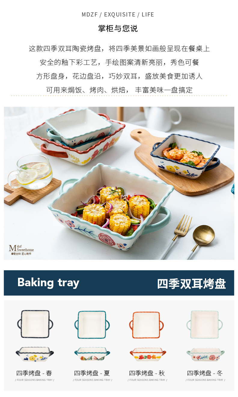 摩登主妇 Керамика четыре сезона с двойным -хоб вольс. Счетные пластинку клыка в форме духовки на основе запеченной рисовой тарелки.