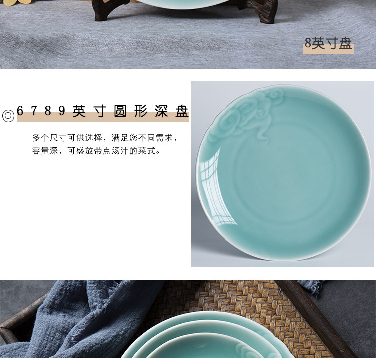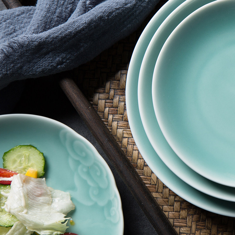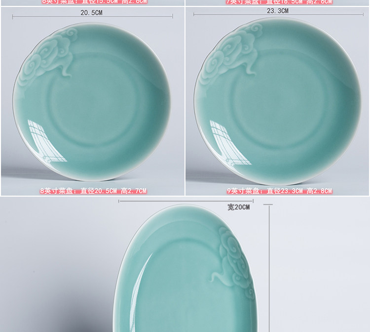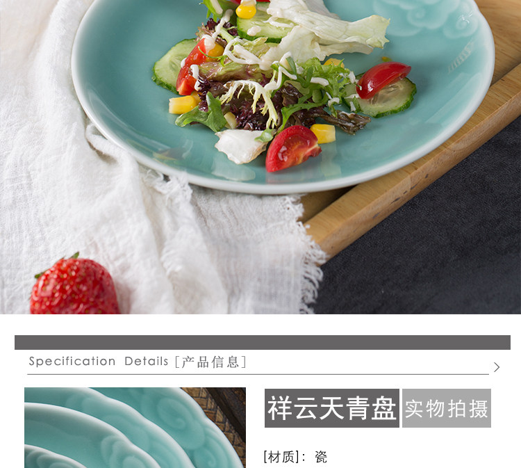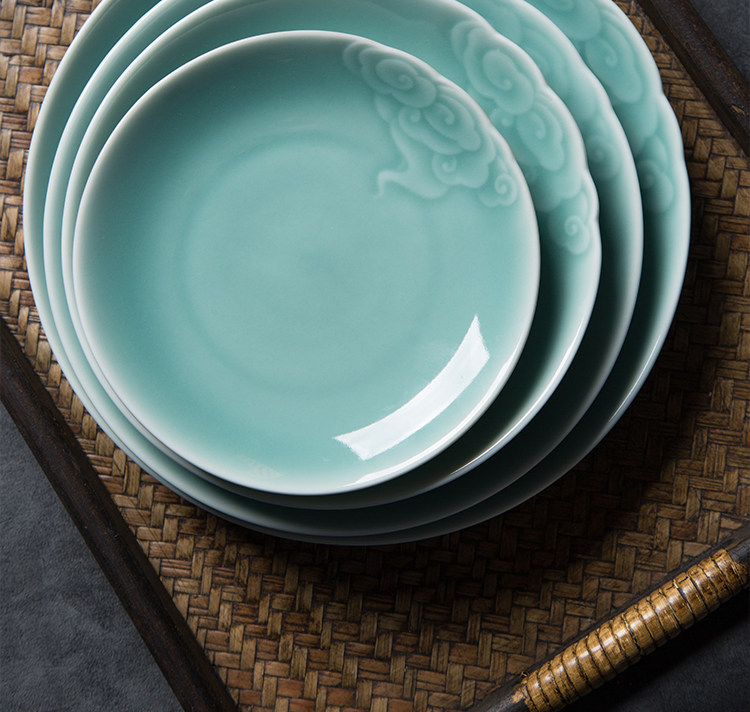 Творческий Xiangyun диск Celadon Disk Dining House Homeving Flat Online Красные блюда средней керамической посуды Микроволновая печь