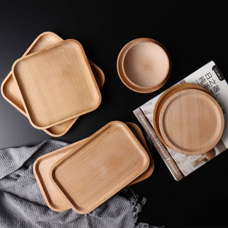 Поднос из цельного дерева, тарелка из цельного дерева, японская тарелка для суши, прямоугольное блюдце из бука, тарелка для закусок размером с чайный поднос.