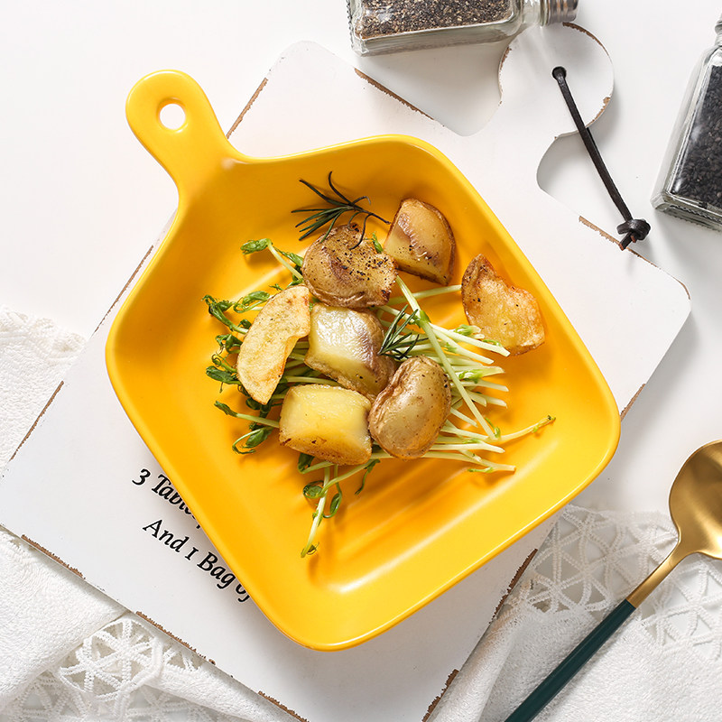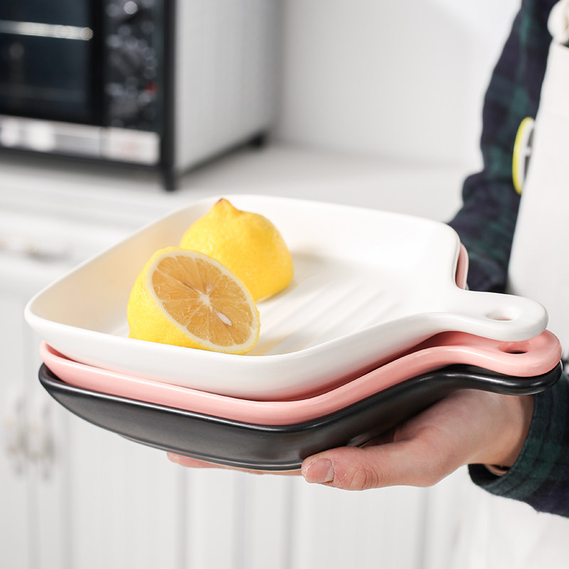 Северная столовая диск сетка красная паста блюдо, бытовая личность творческая печь Специальная керамическая выпечка салат -квадрат глубоковод