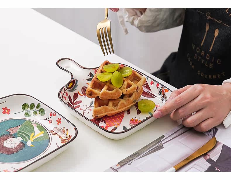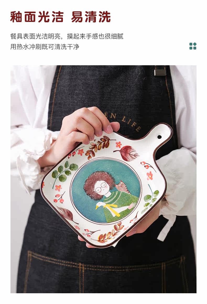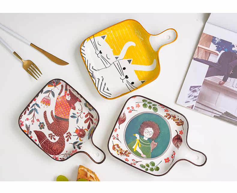 Милая керамическая посуда для домашнего использования, ручка, обеденная тарелка, популярно в интернете