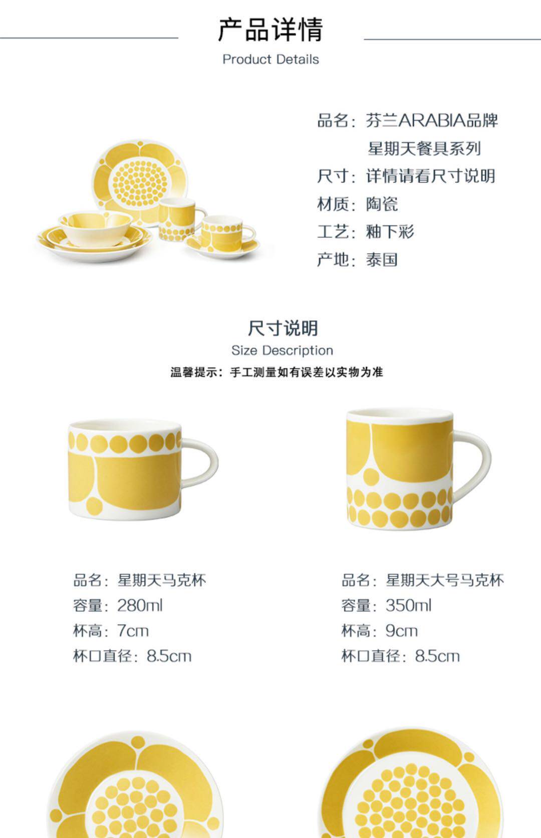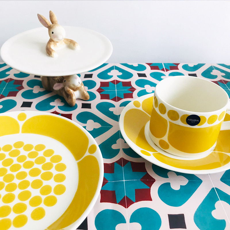 Финляндия Аравия Желтая воскресная цветочная кофейная чашка чашка чашки чашки пищи с лапшой керамическая посуда набор посуды
