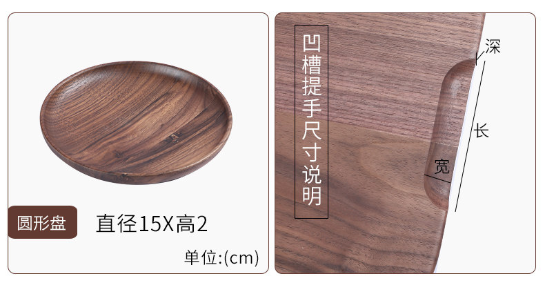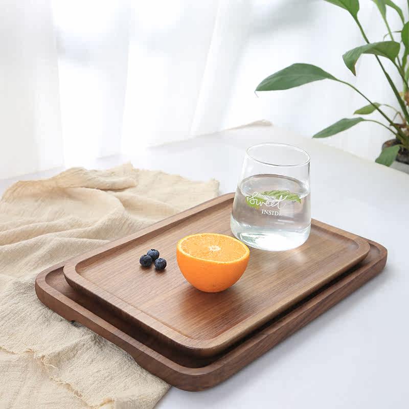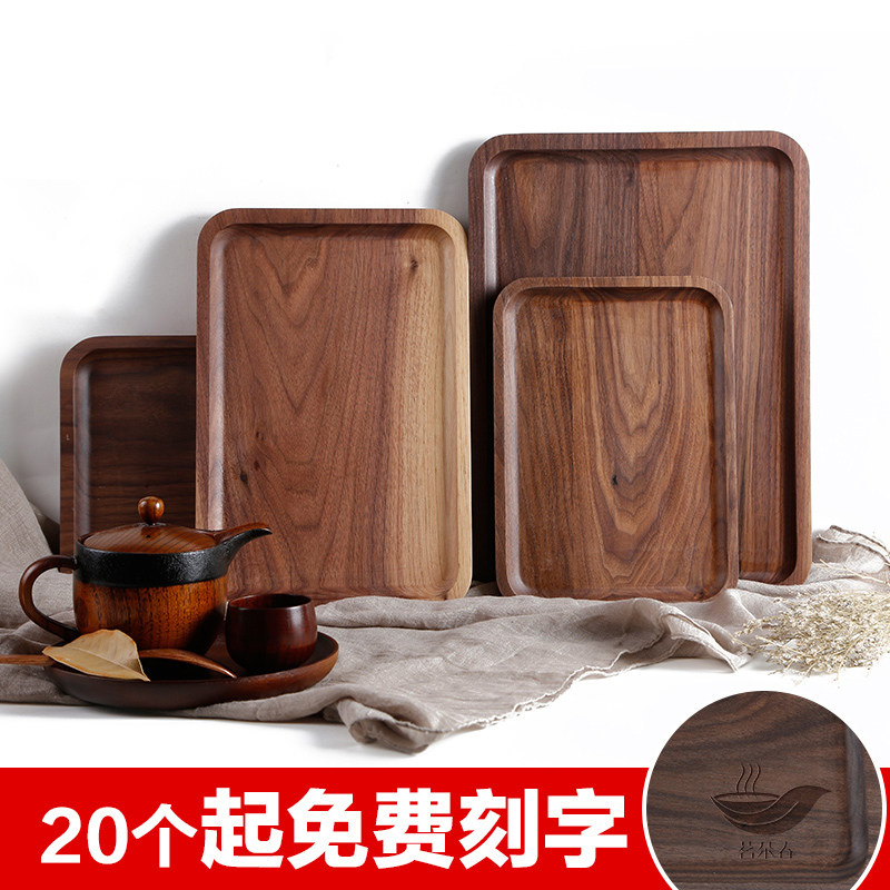柒喵 Черный ореховый орех деревянный поддон прямоугольный домашний чайный поднос в японском стиле фруктовый диск пластина