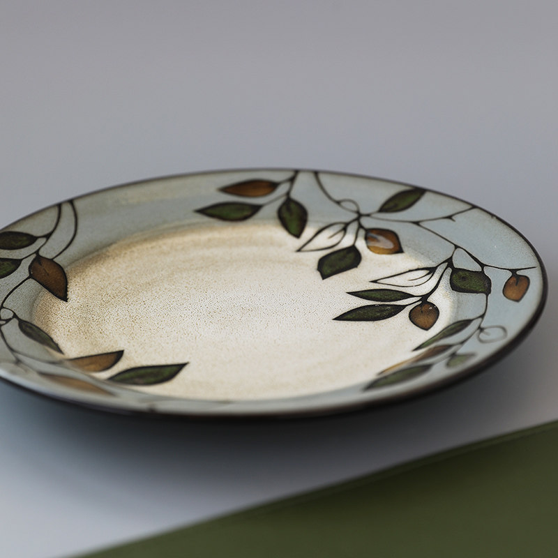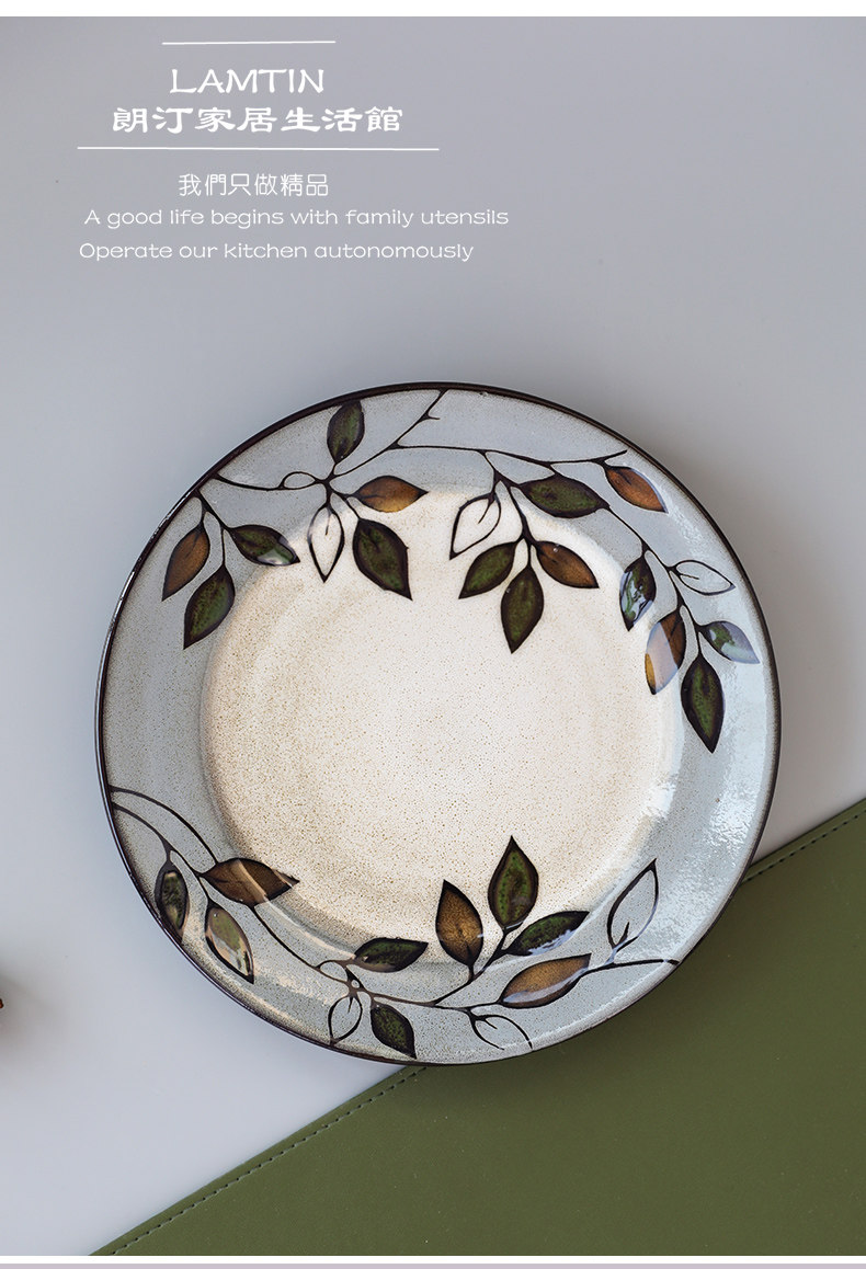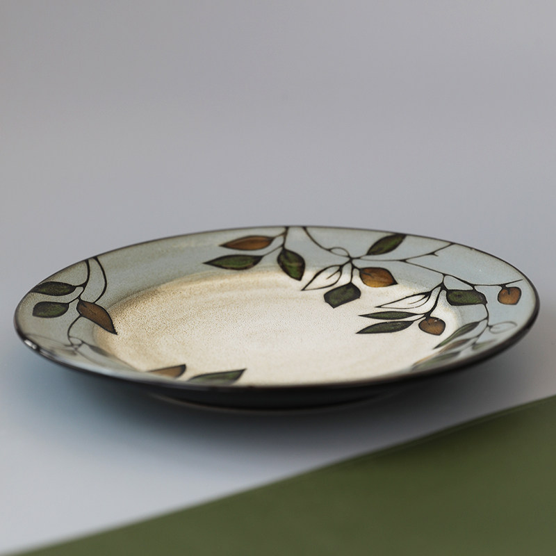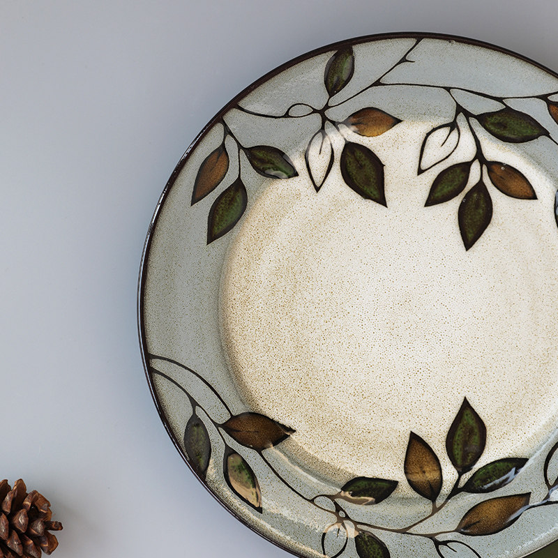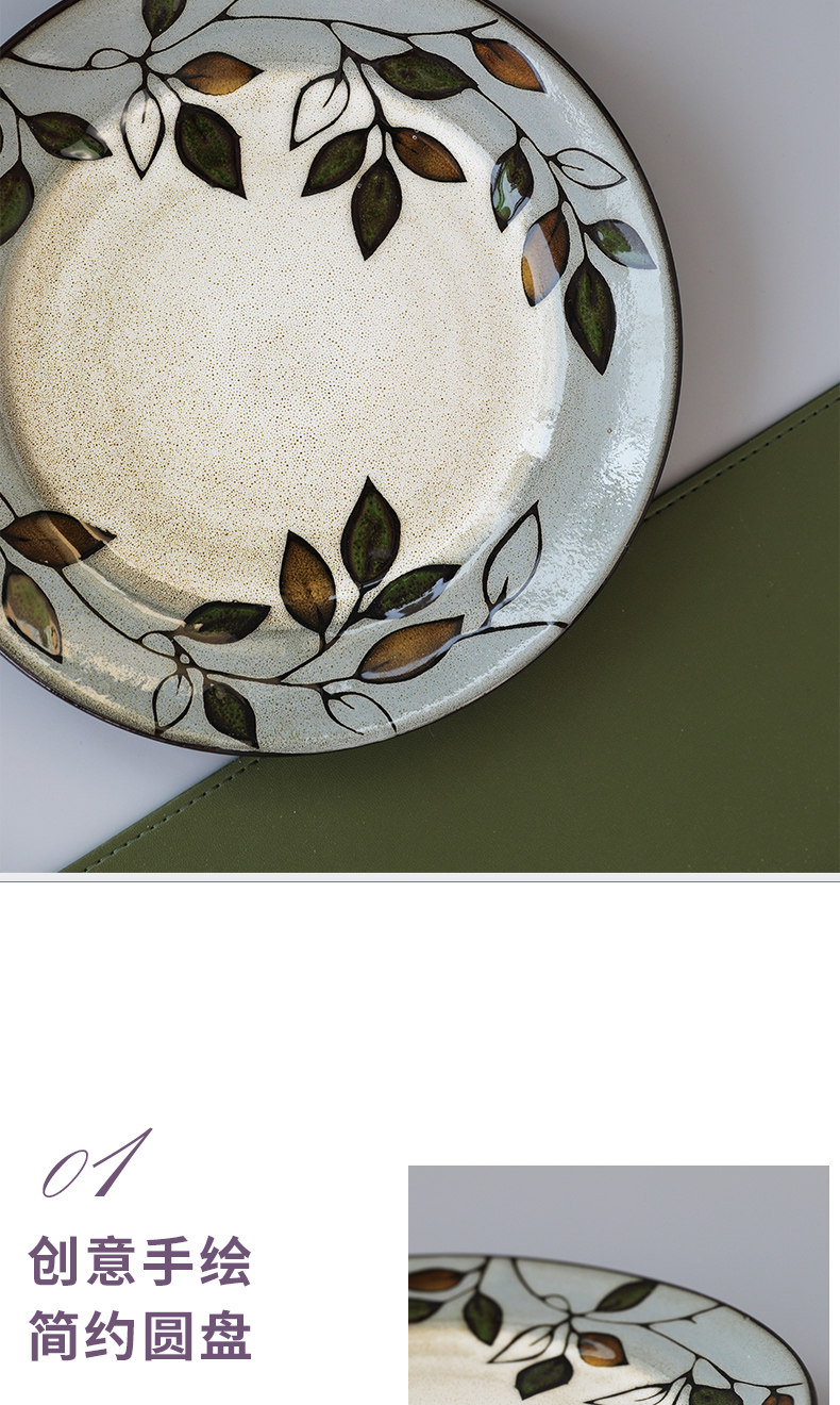 Домашняя креативная керамическая тарелка с ручной росписью и листьями растений, 8,5-дюймовая круглая тарелка, домашняя посуда, тарелка