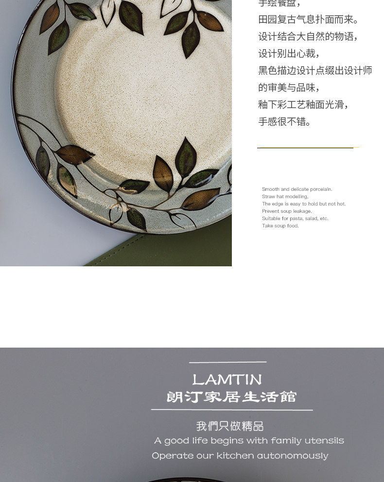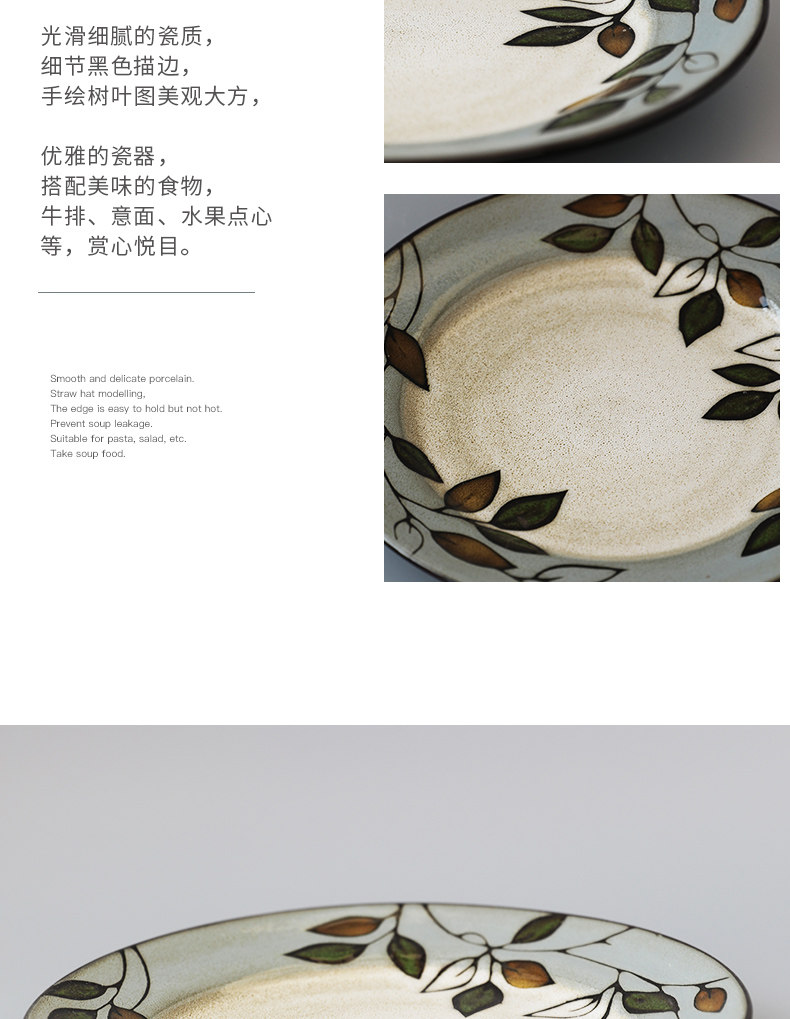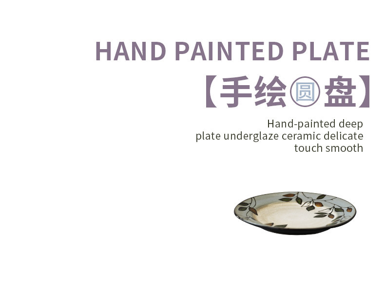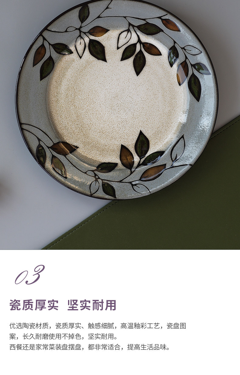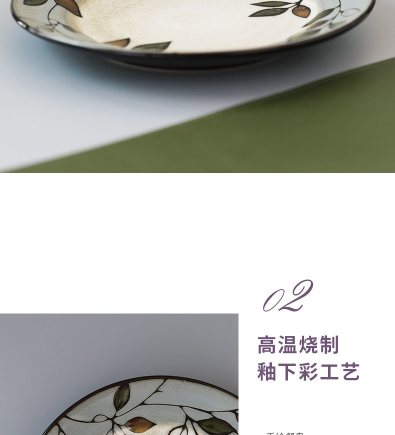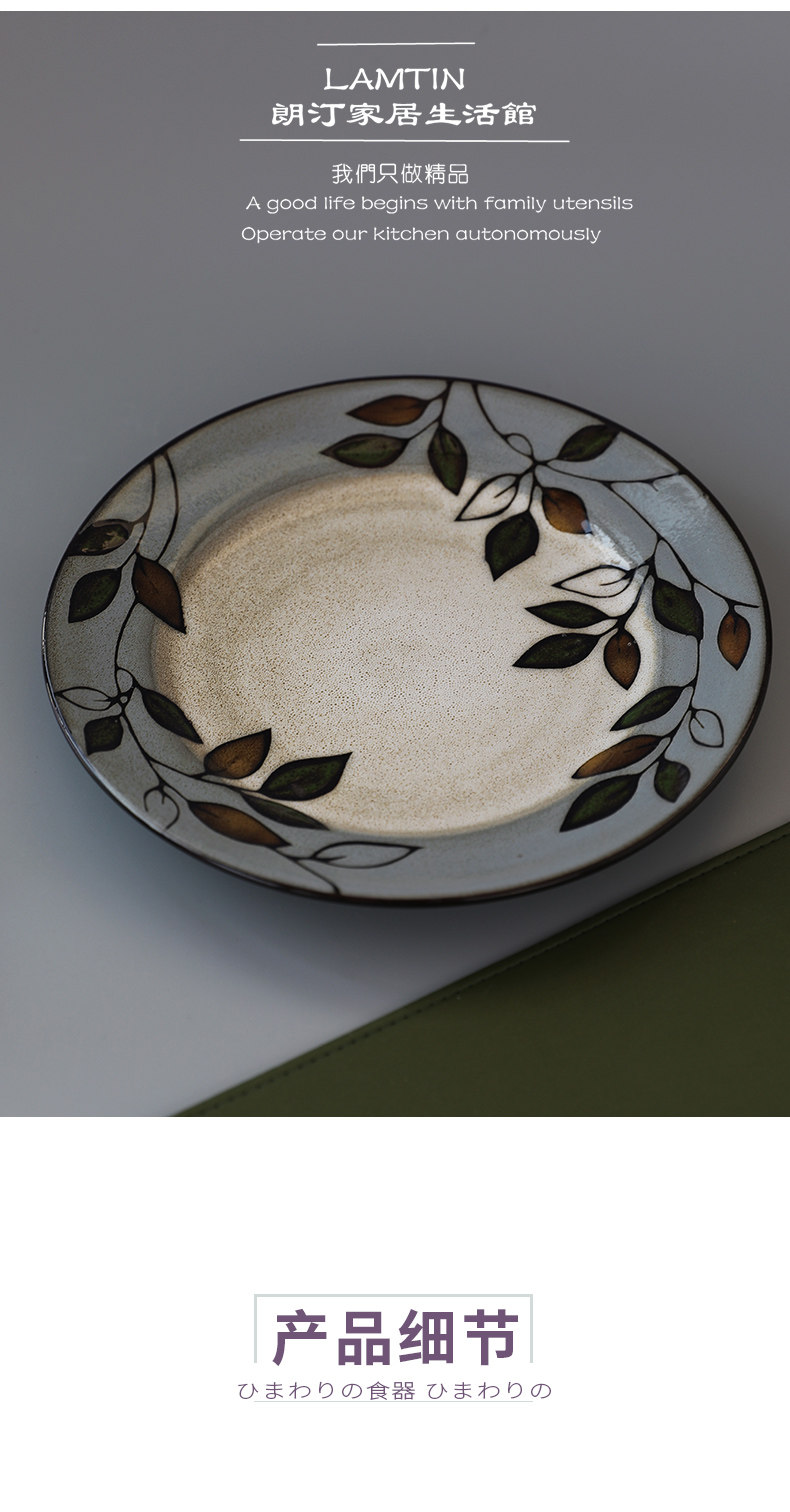 Домашняя креативная керамическая тарелка с ручной росписью и листьями растений, 8,5-дюймовая круглая тарелка, домашняя посуда, тарелка