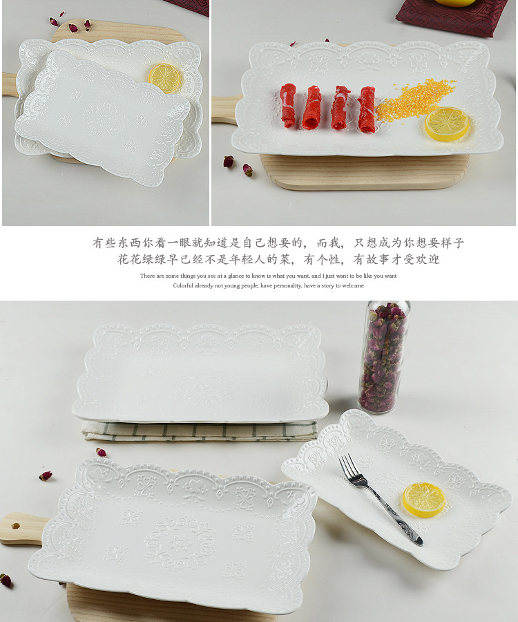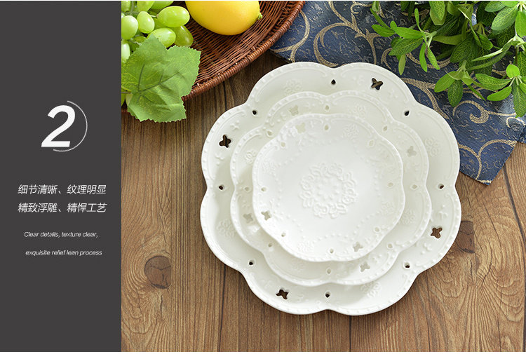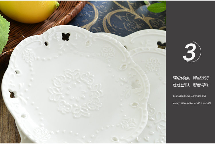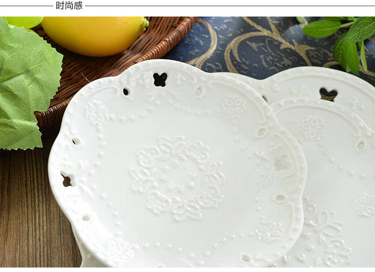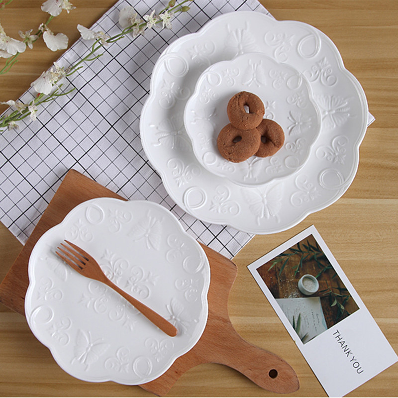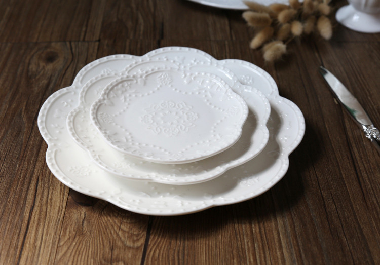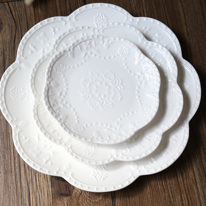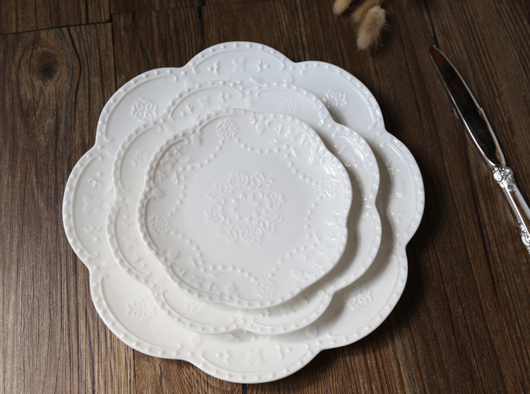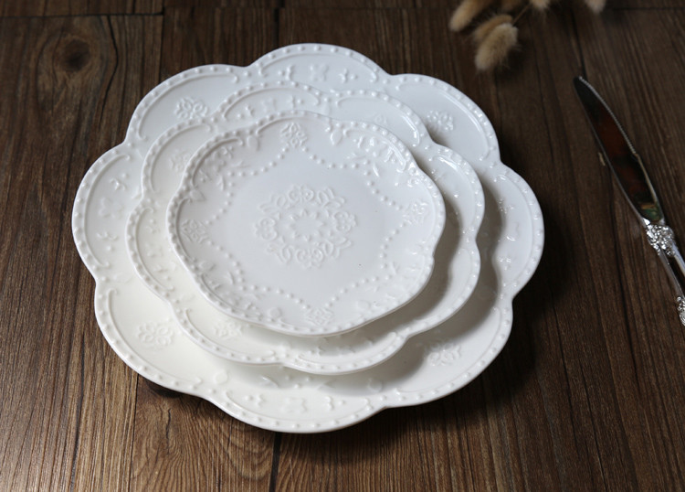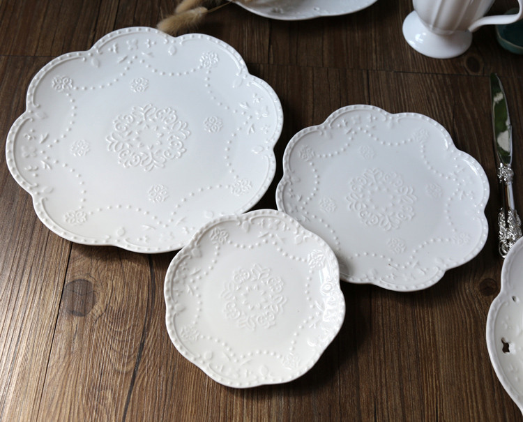 Керамическая тарелка в европейском стиле с тиснением в западном стиле, кружево, цветок, кружево, тарелка для стейка, тарелка для торта, обеденная тарелка в западном стиле, круглая тарелка