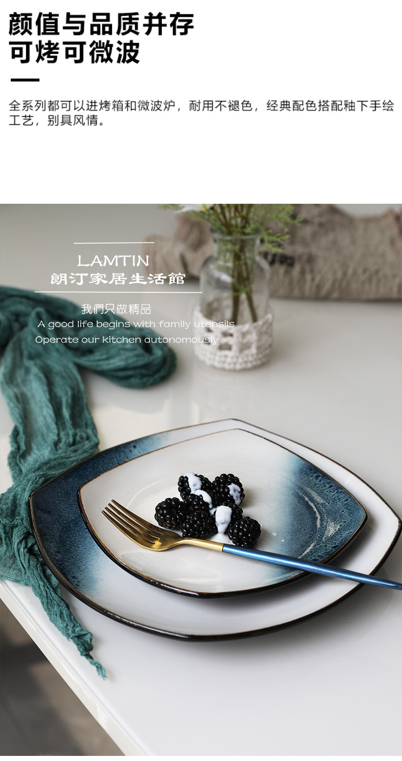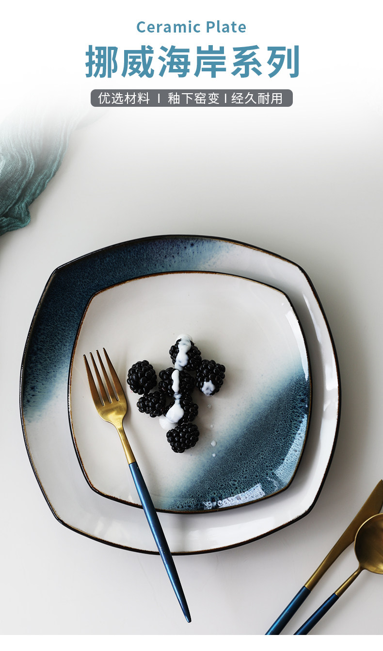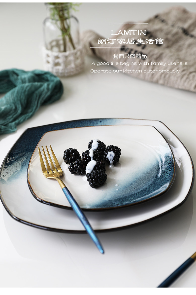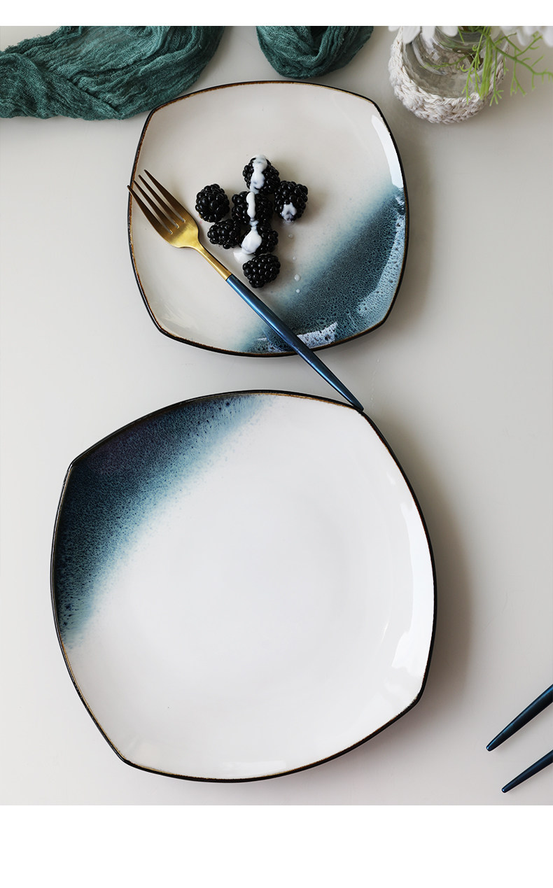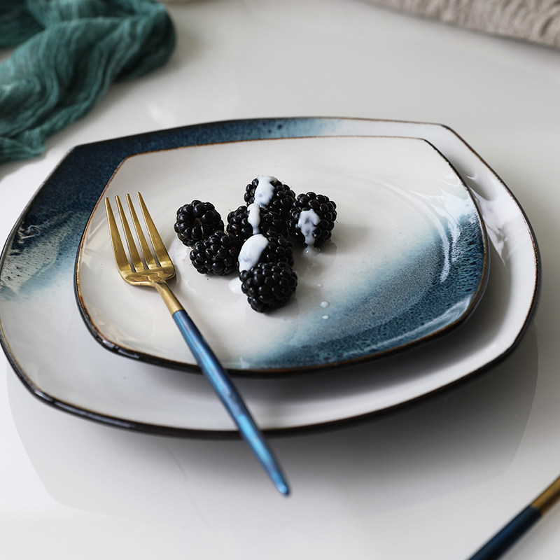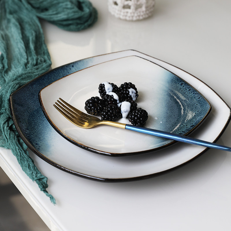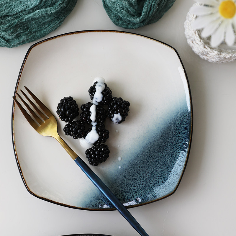 Керамическая квадратная тарелка 9 -Домашняя творческая индивидуальность простая северная ветряная овощная посуда Стейк -ресторан Западная столовая