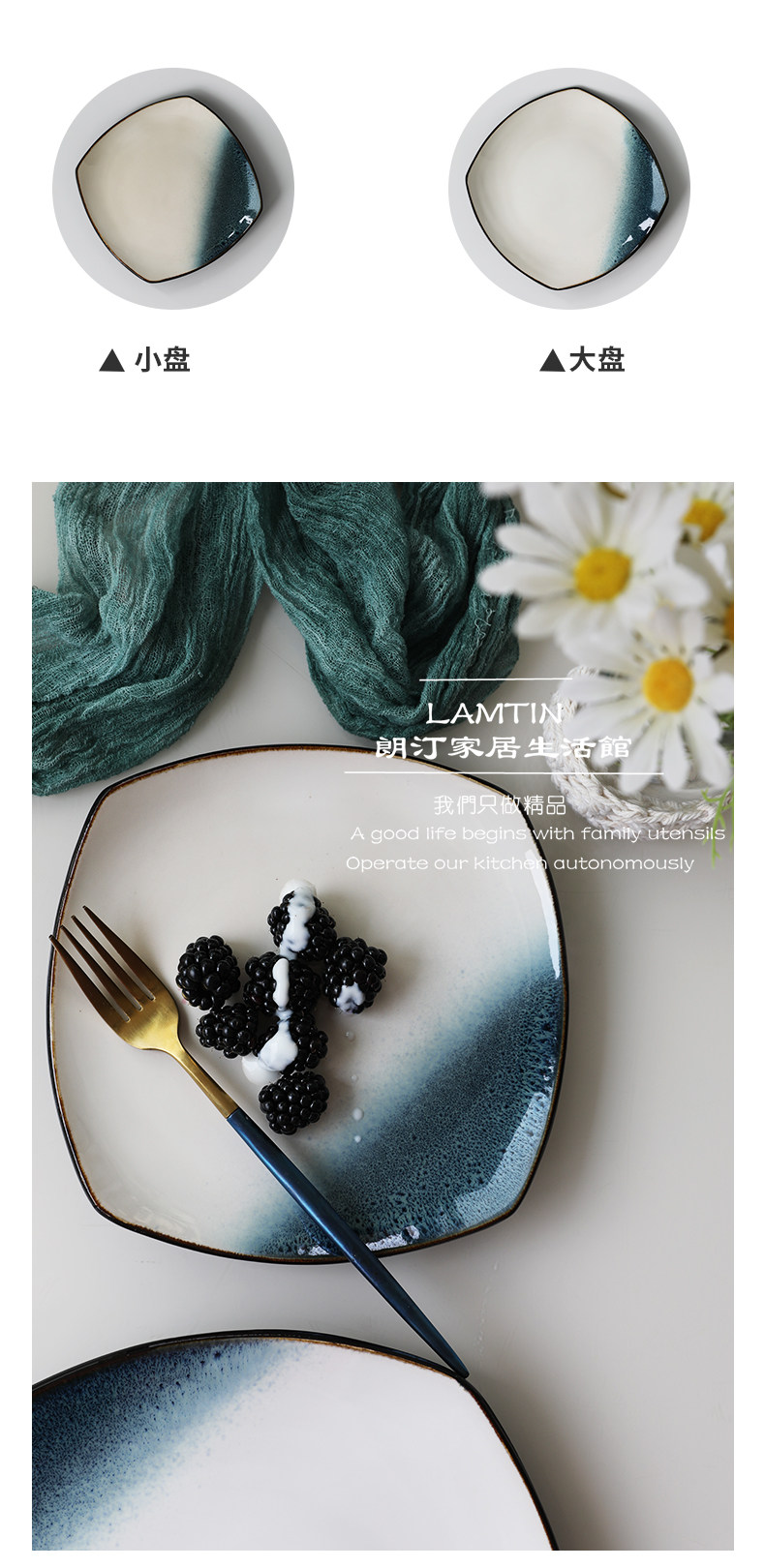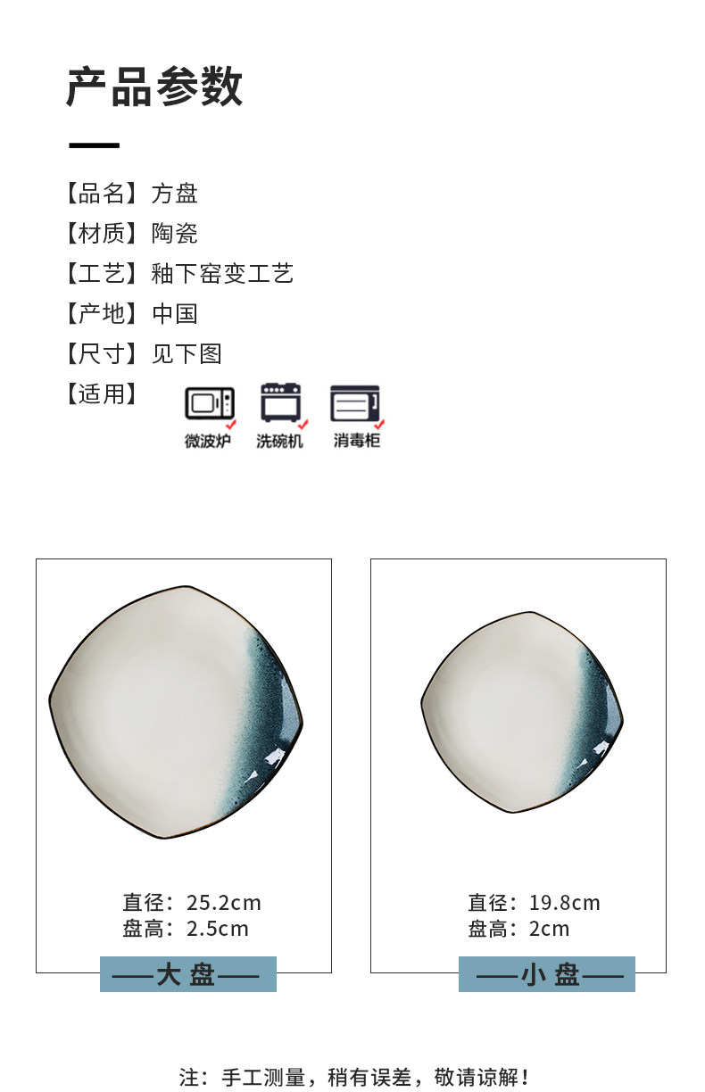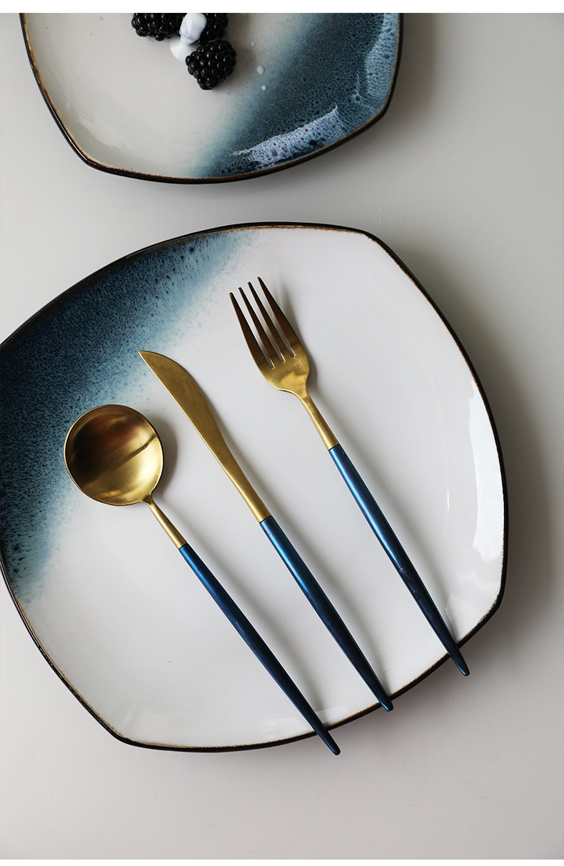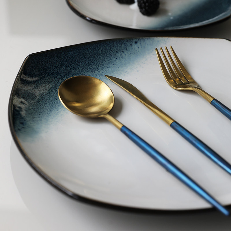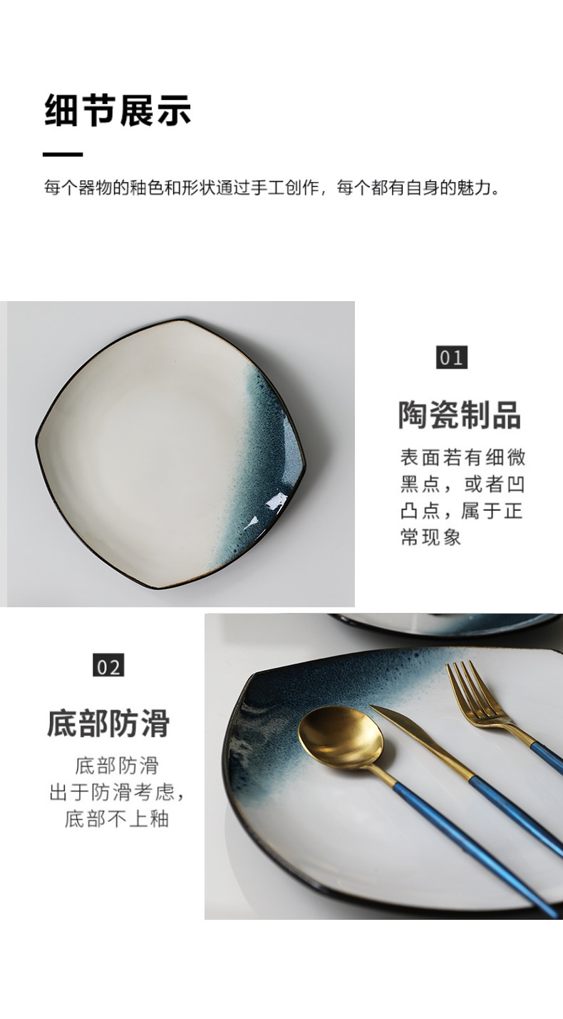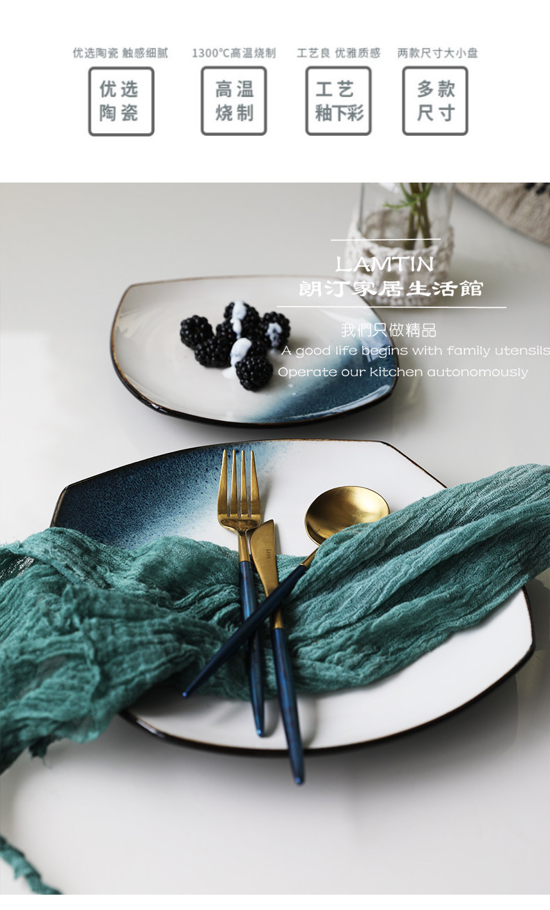 Керамическая квадратная тарелка 9 -Домашняя творческая индивидуальность простая северная ветряная овощная посуда Стейк -ресторан Западная столовая