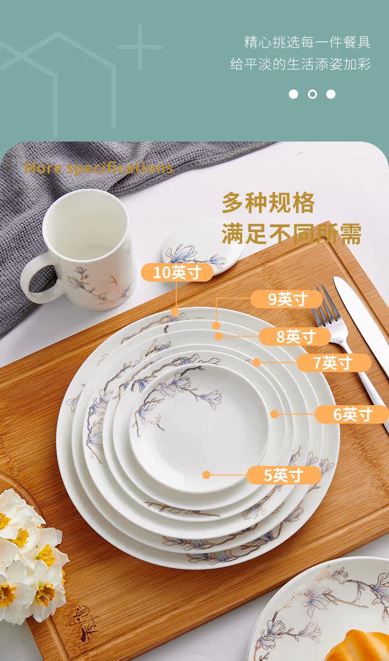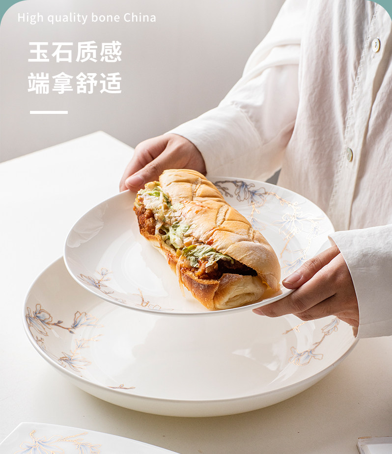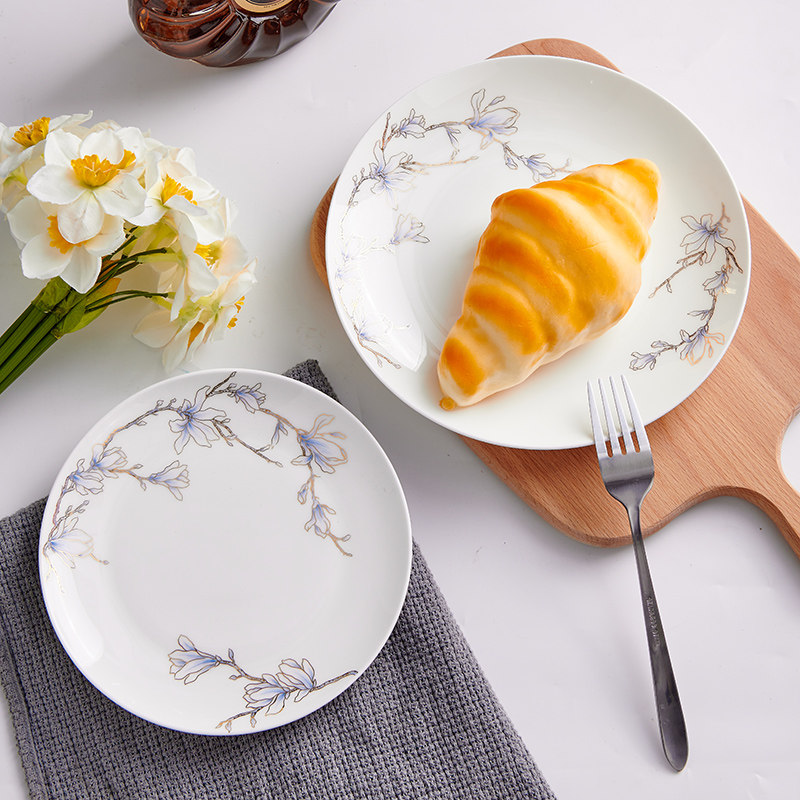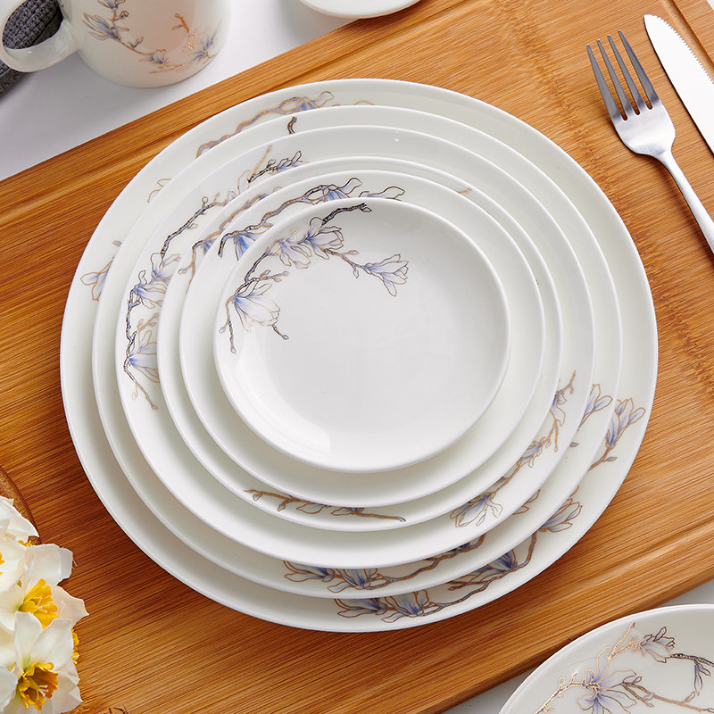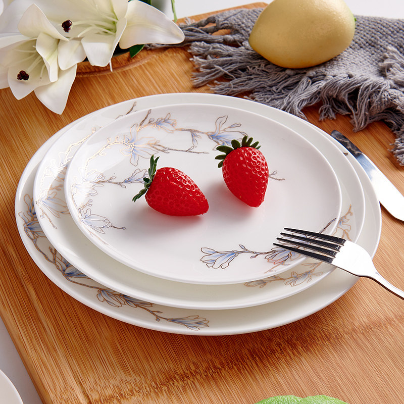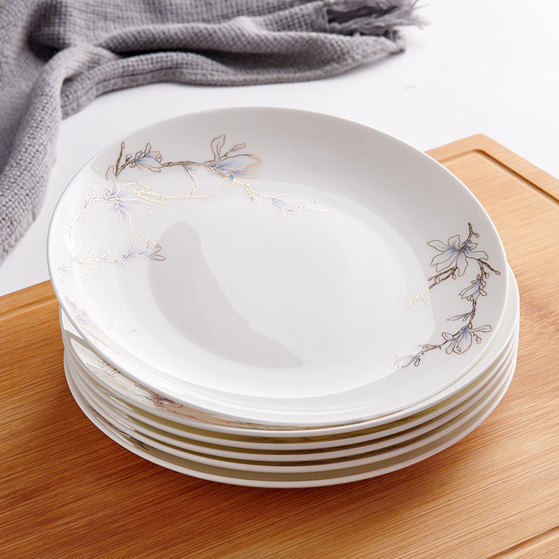 Чистая белая костяная фарфоровая тарелка лунное блюдо домашнее керамическое посуду холодное блюдо салат салат тарелка западная столовая большая тарелка