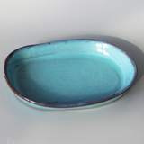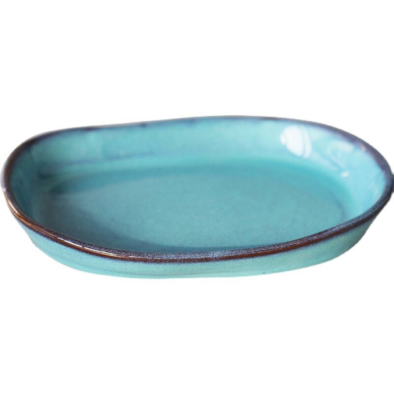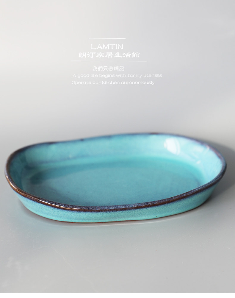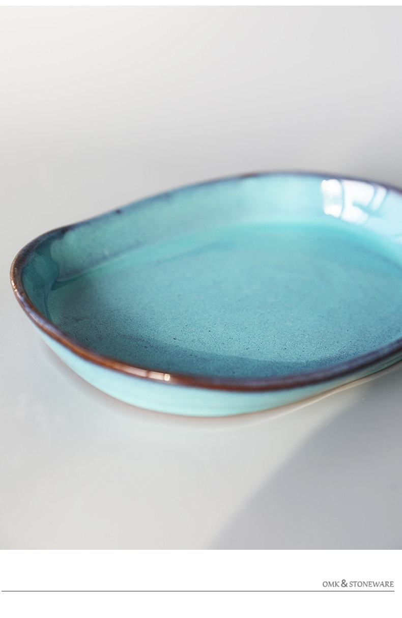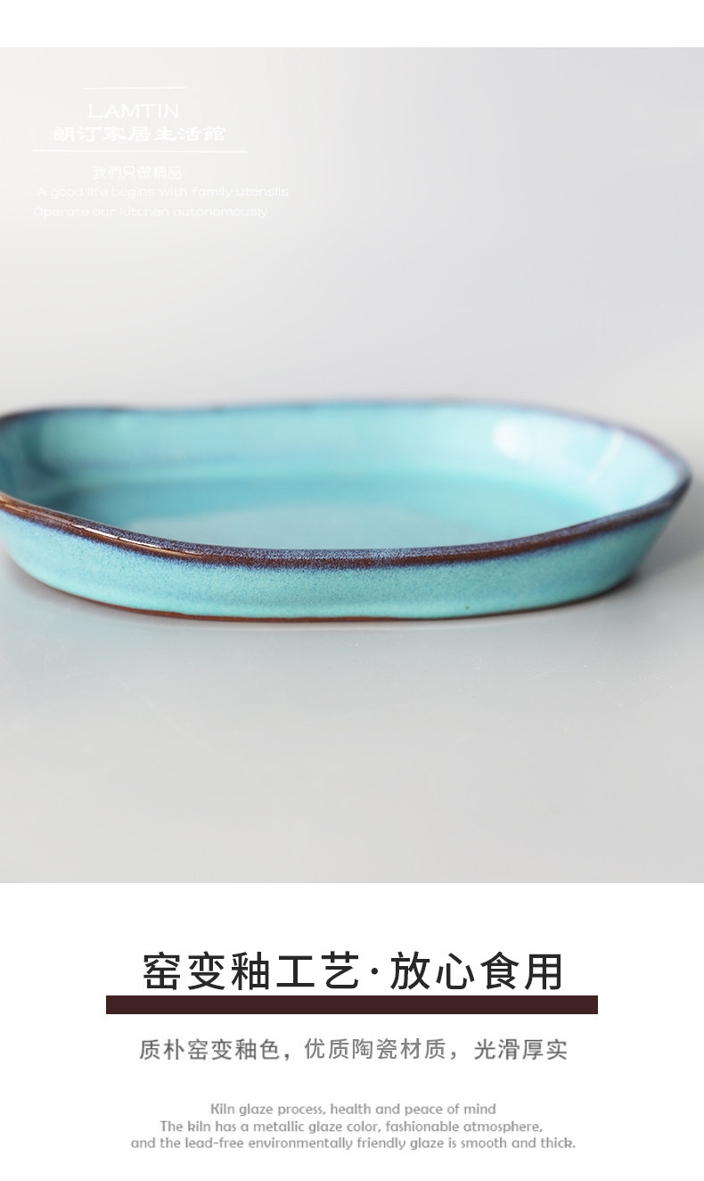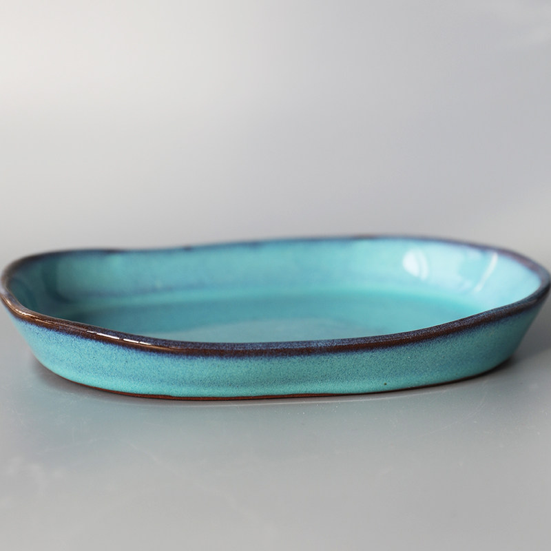 Креативная керамическая керамическая тарелка для салата с запеченным рисом, неглубокая тарелка неправильной формы, креативная длинная овальная тарелка ручной работы, тарелка японской кухни