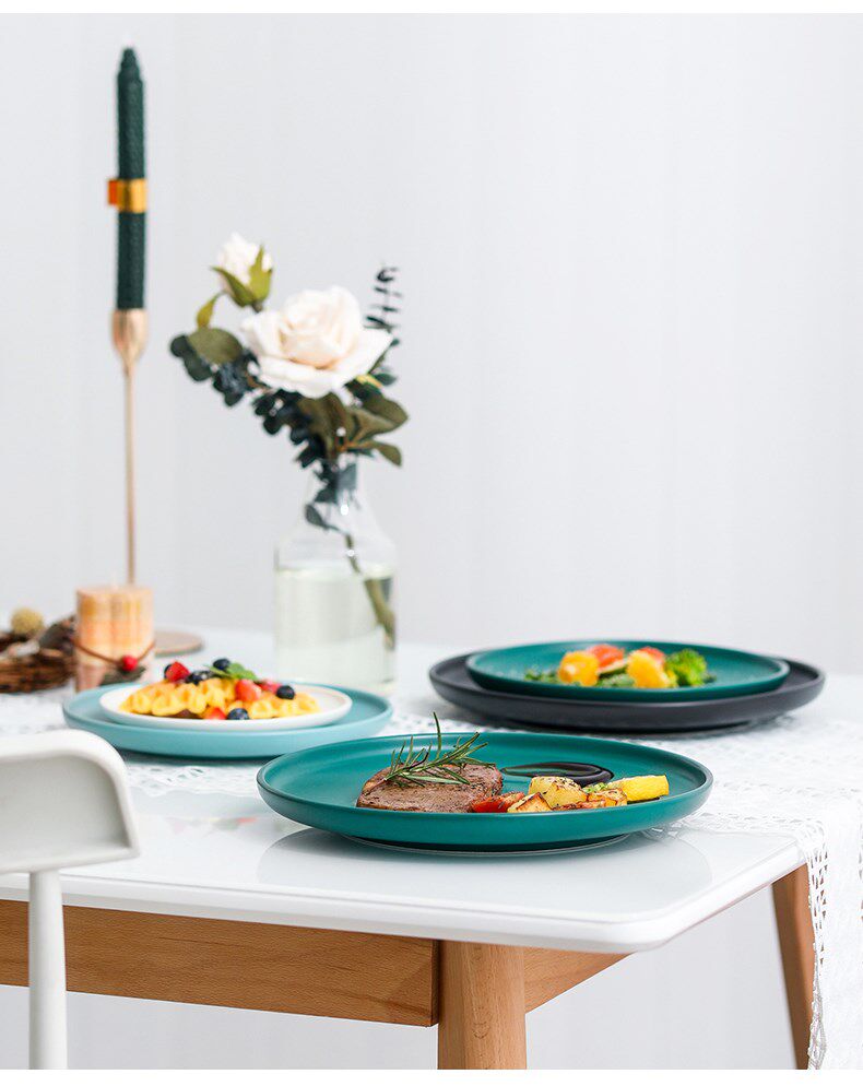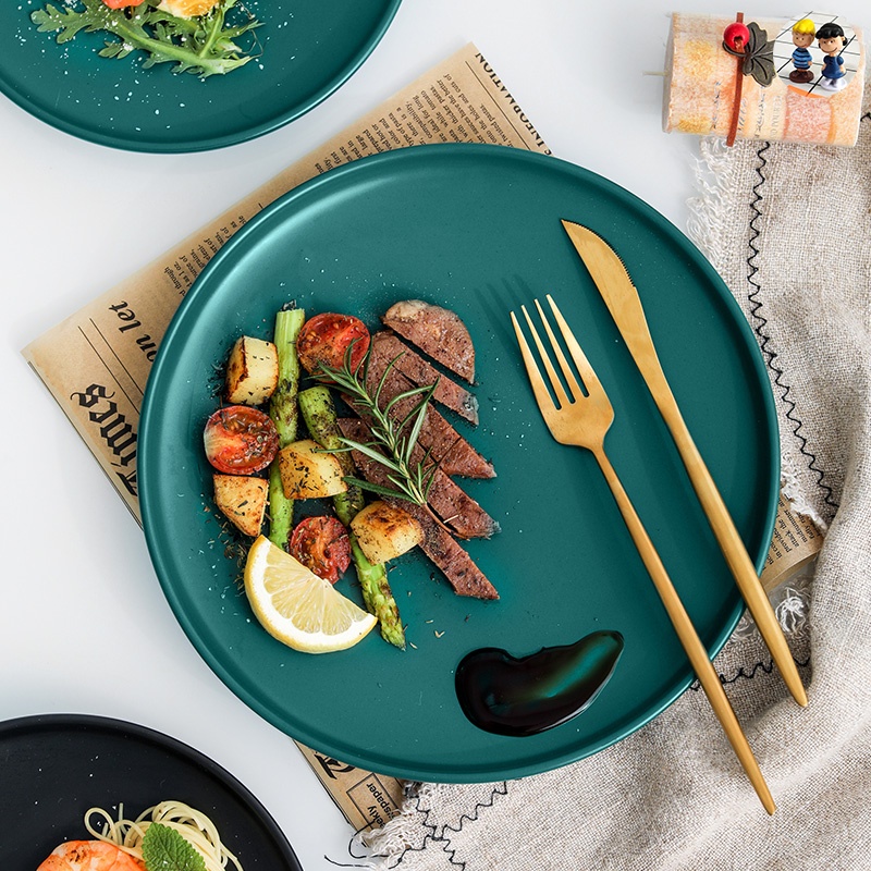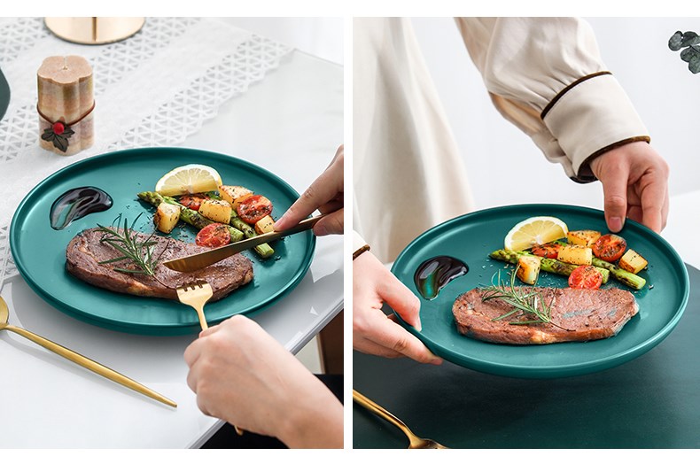 Ужин крамийская тарелка блюдо из стейк -салат для подноса блюда для еды.