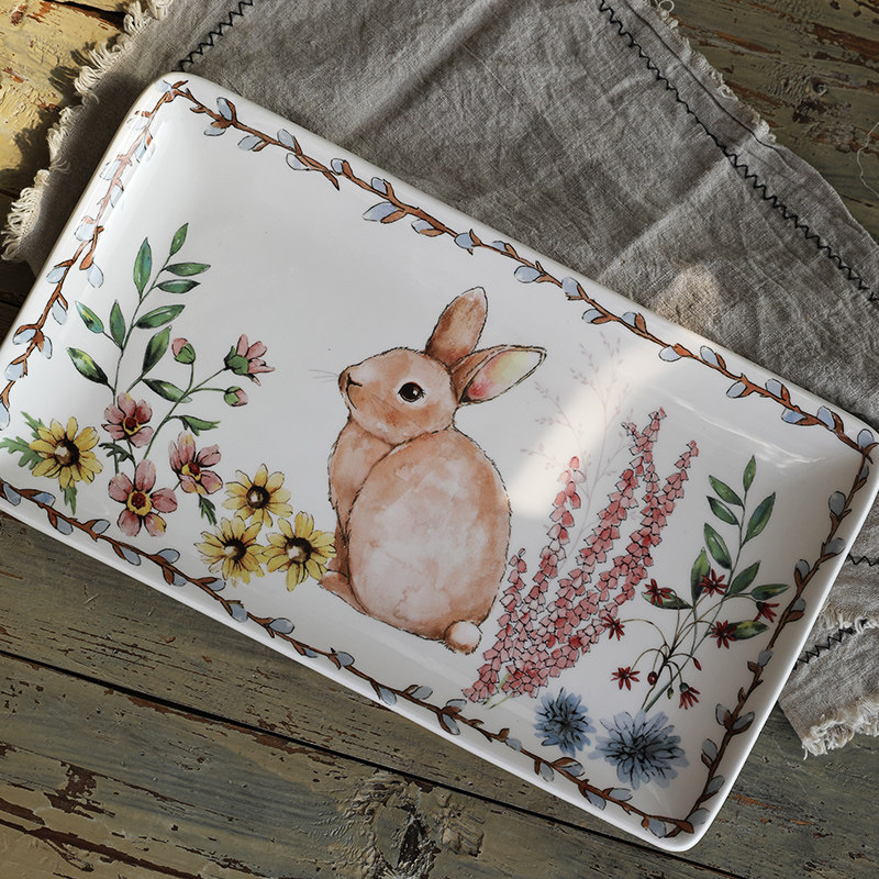 Ретро кролик, свежая керамическая посуда, ручная роспись