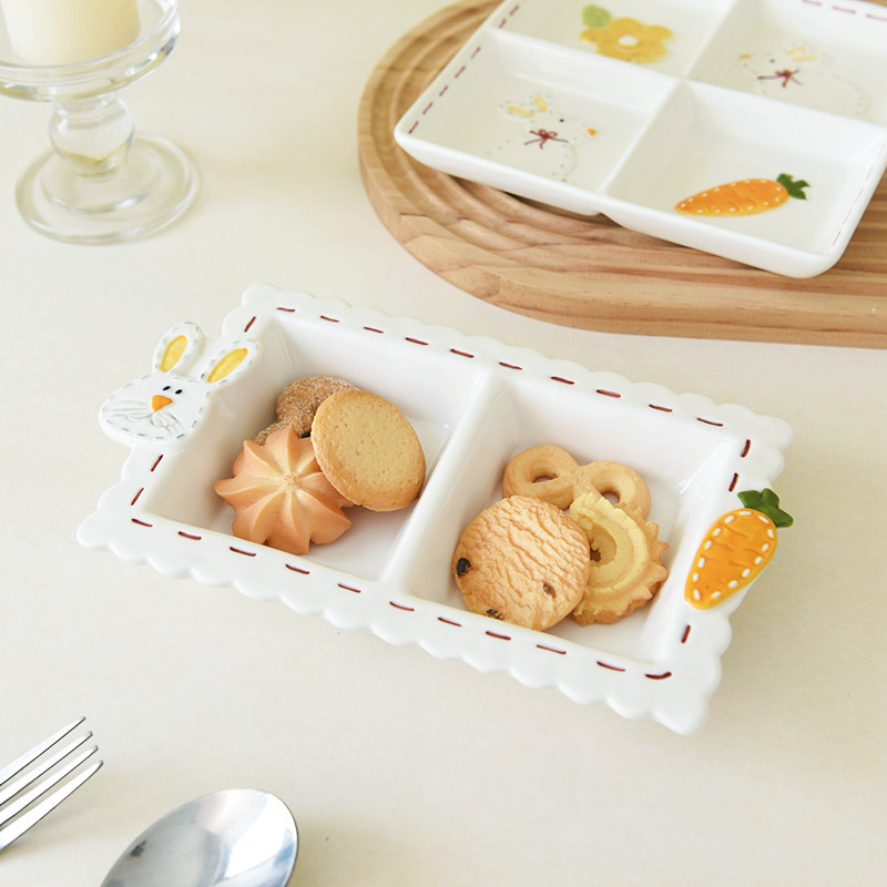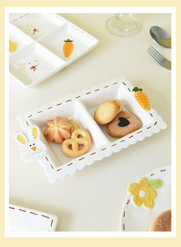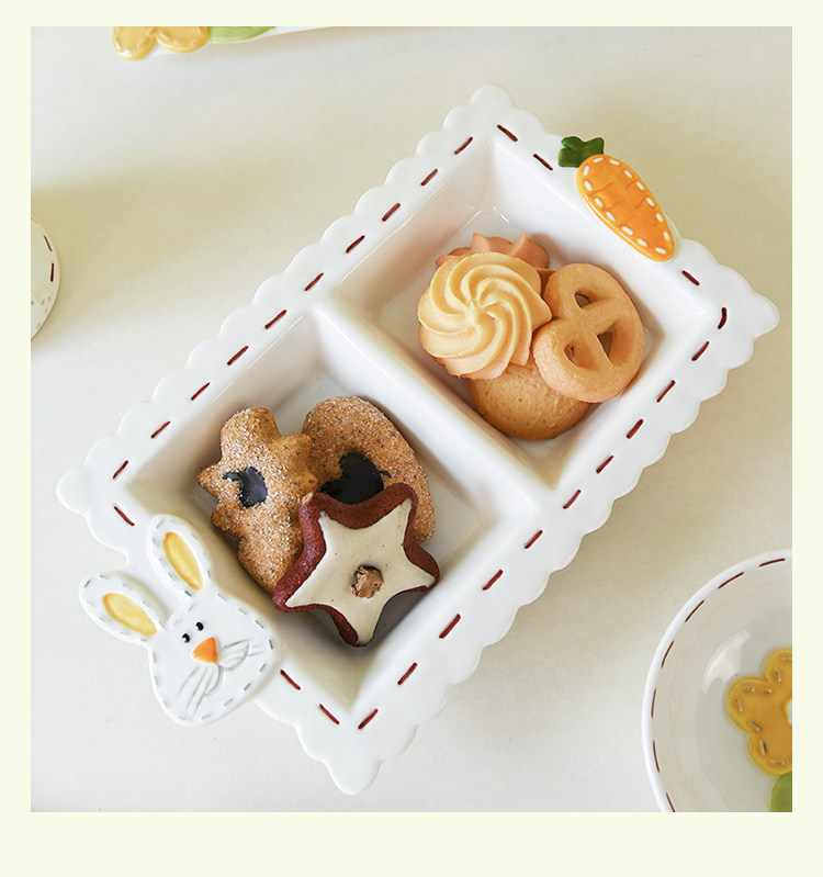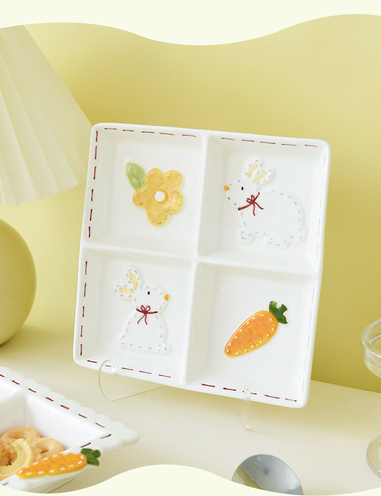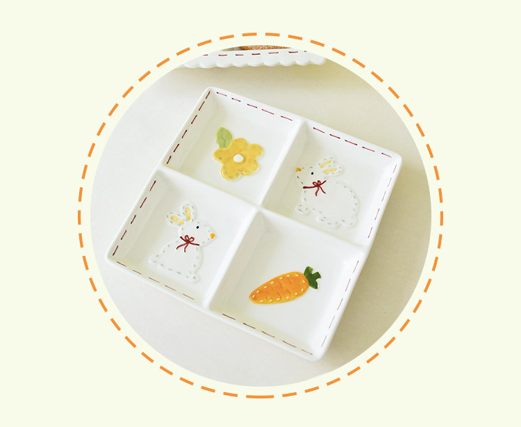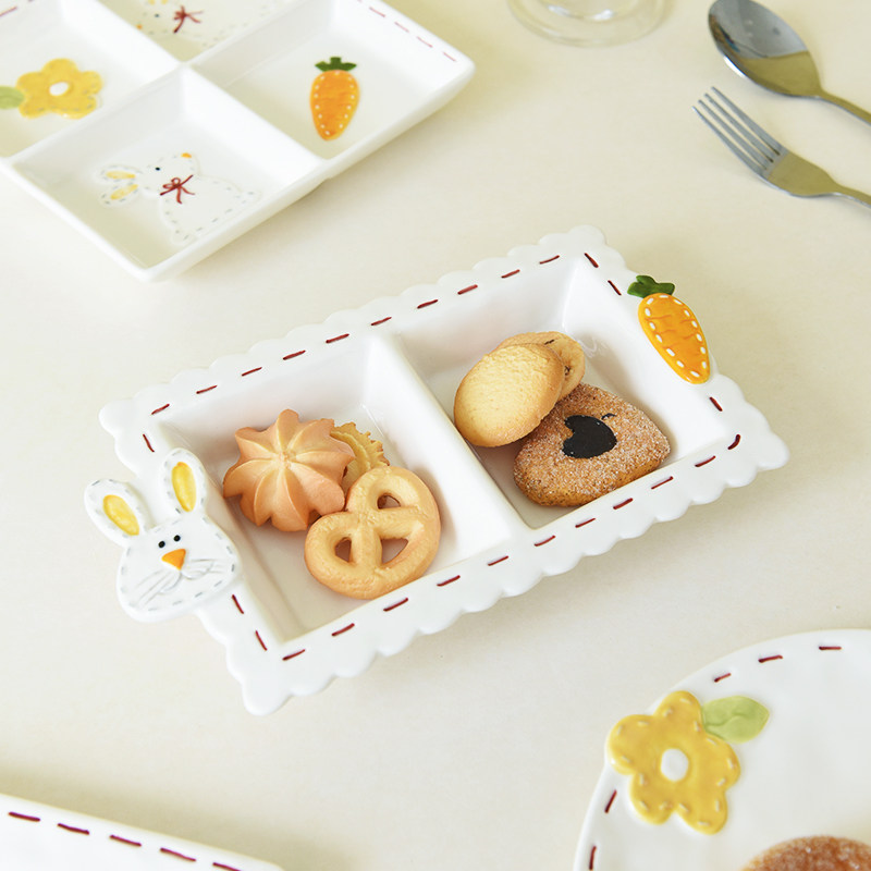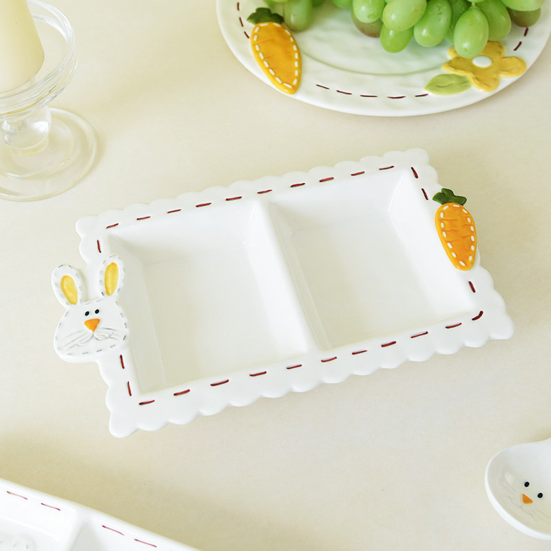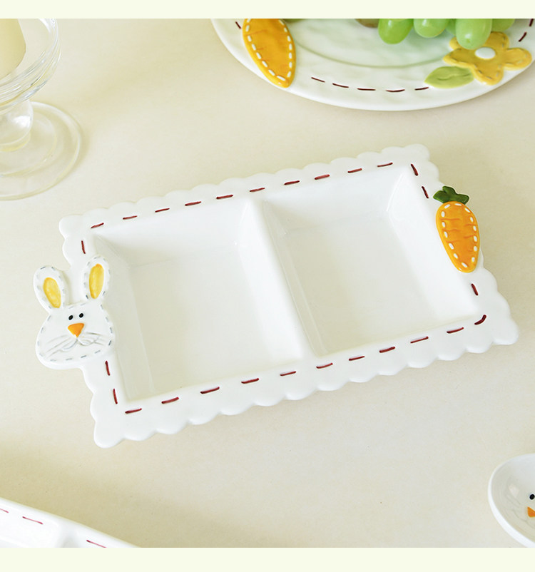 Высокоэтапно сшивать кроличье посуда мультипликационное дом двойной диск Трехмерный диск с рельефом