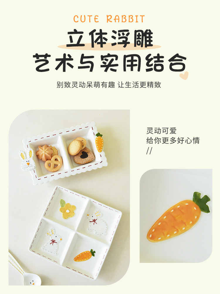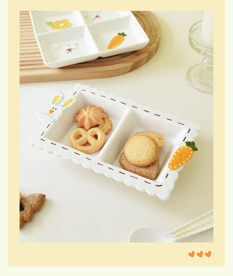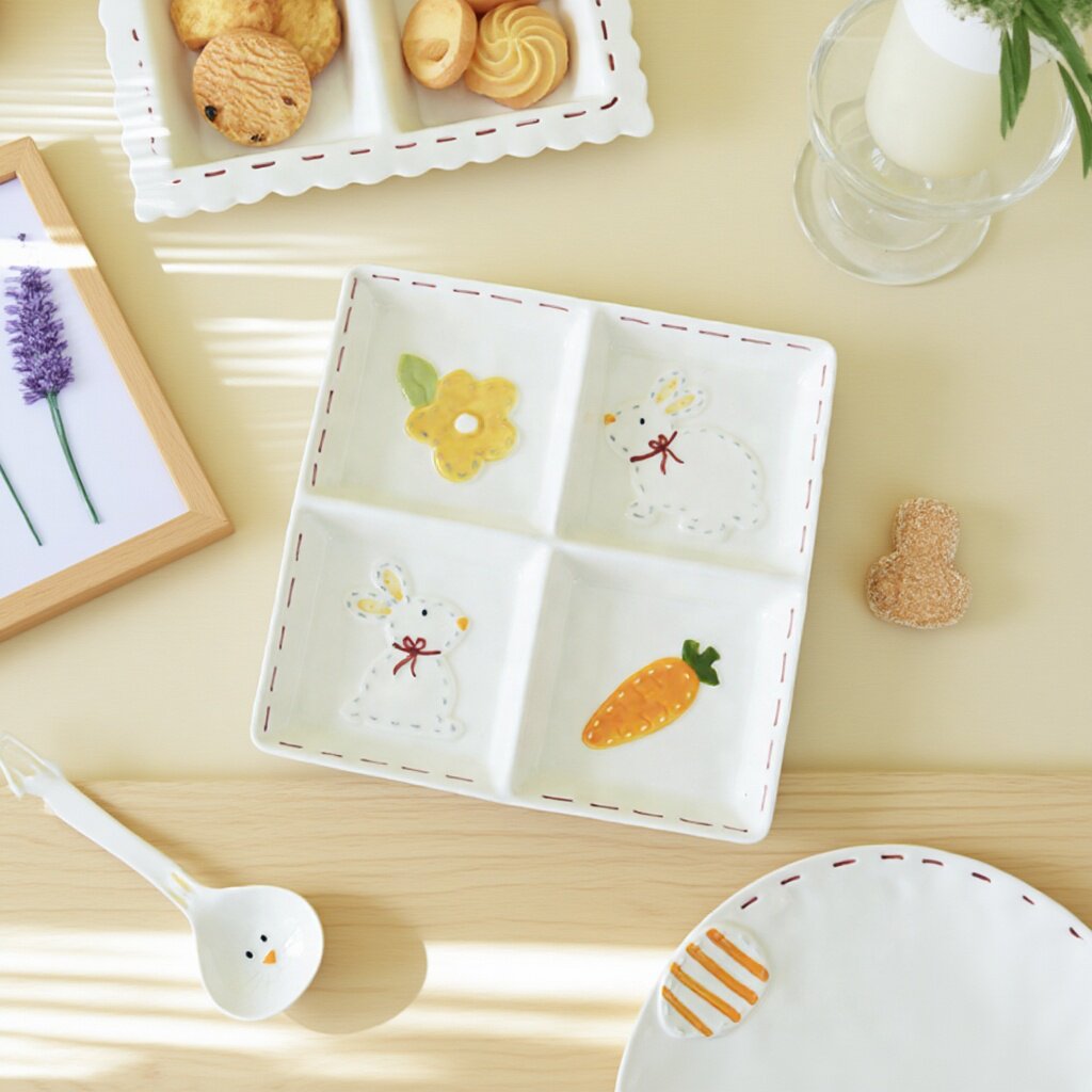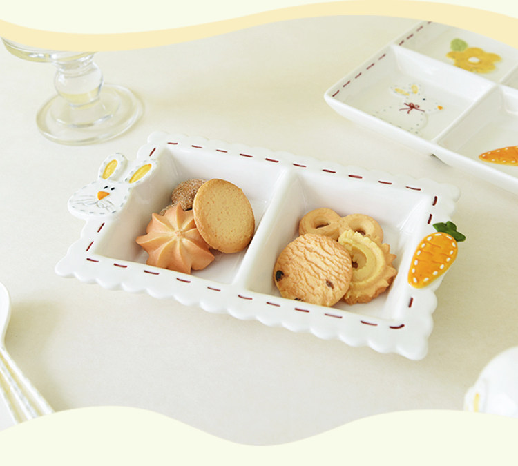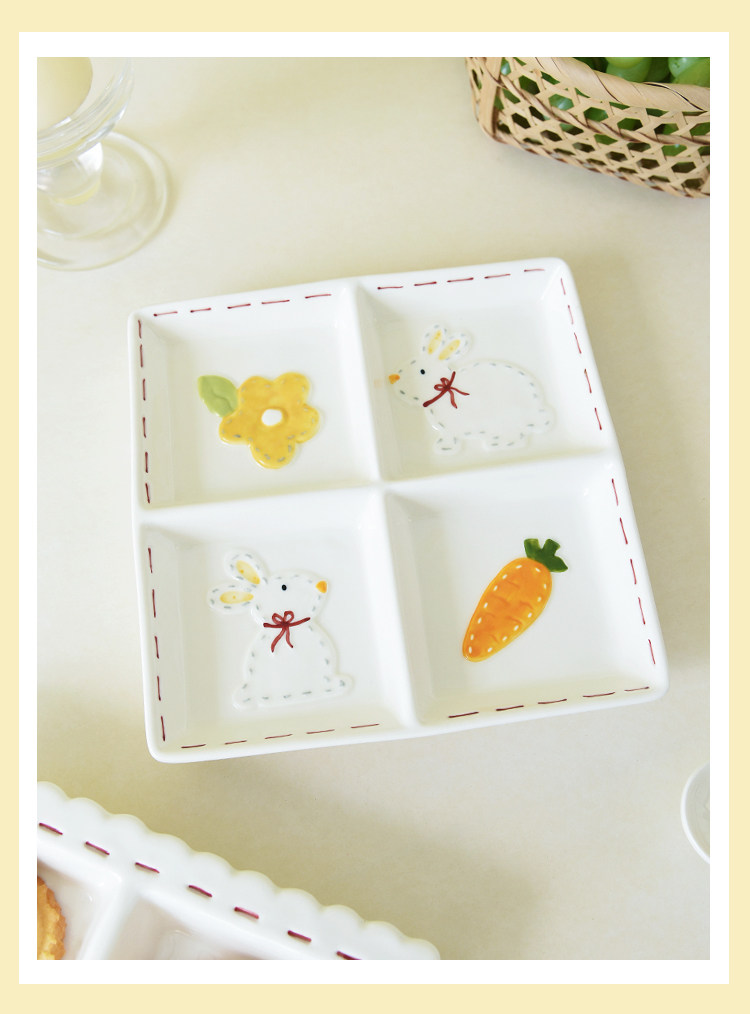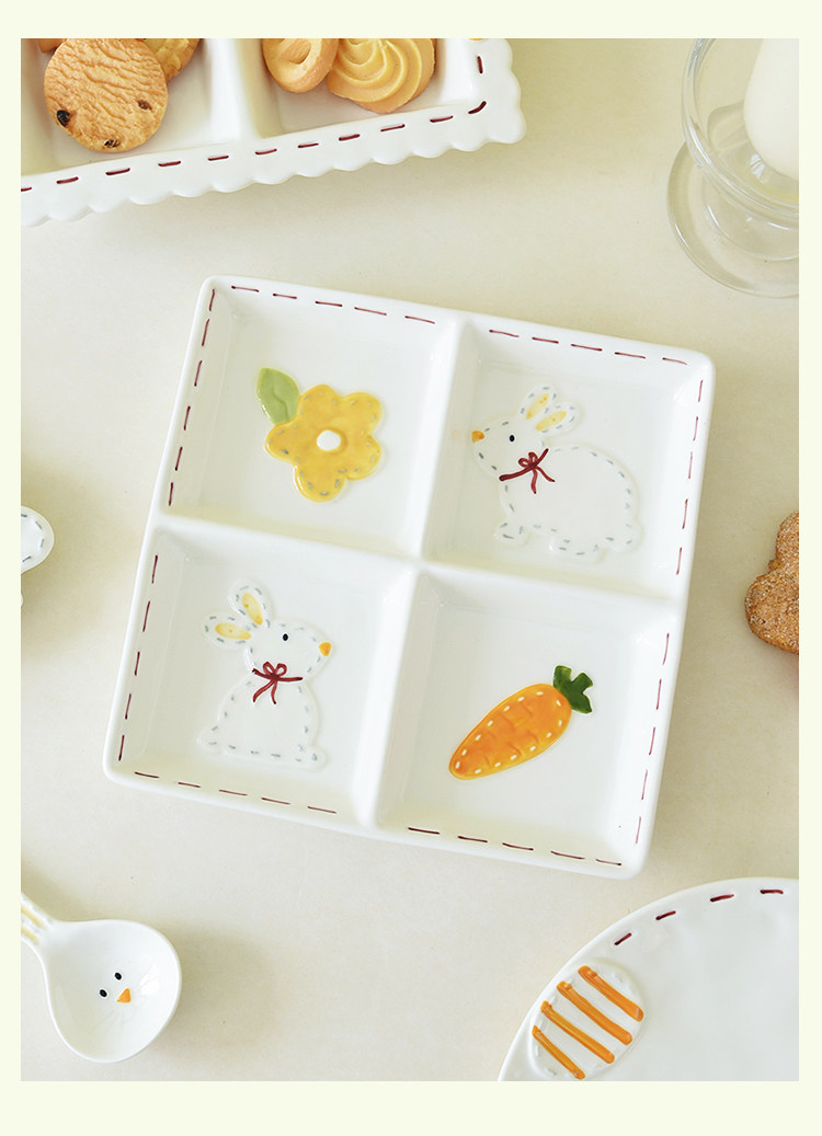 Высокоэтапно сшивать кроличье посуда мультипликационное дом двойной диск Трехмерный диск с рельефом