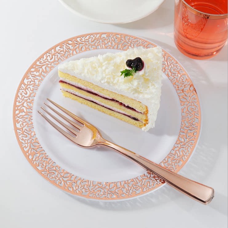 - 7,5-дюймовая края розового золота + вилки № 12, 50 каждая