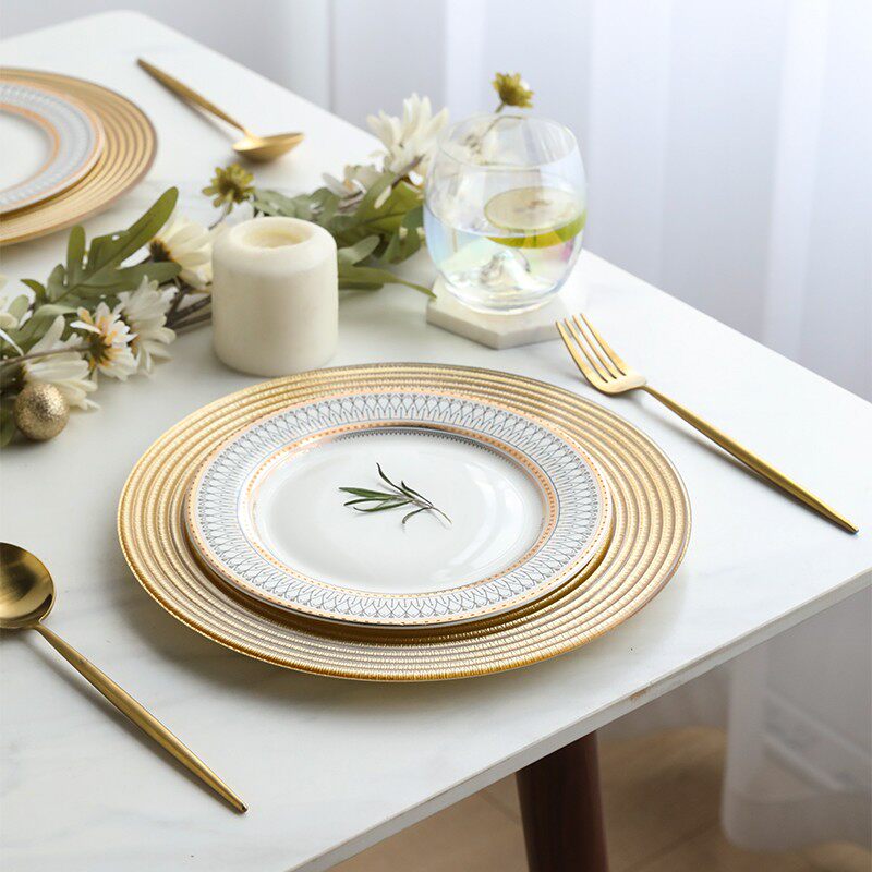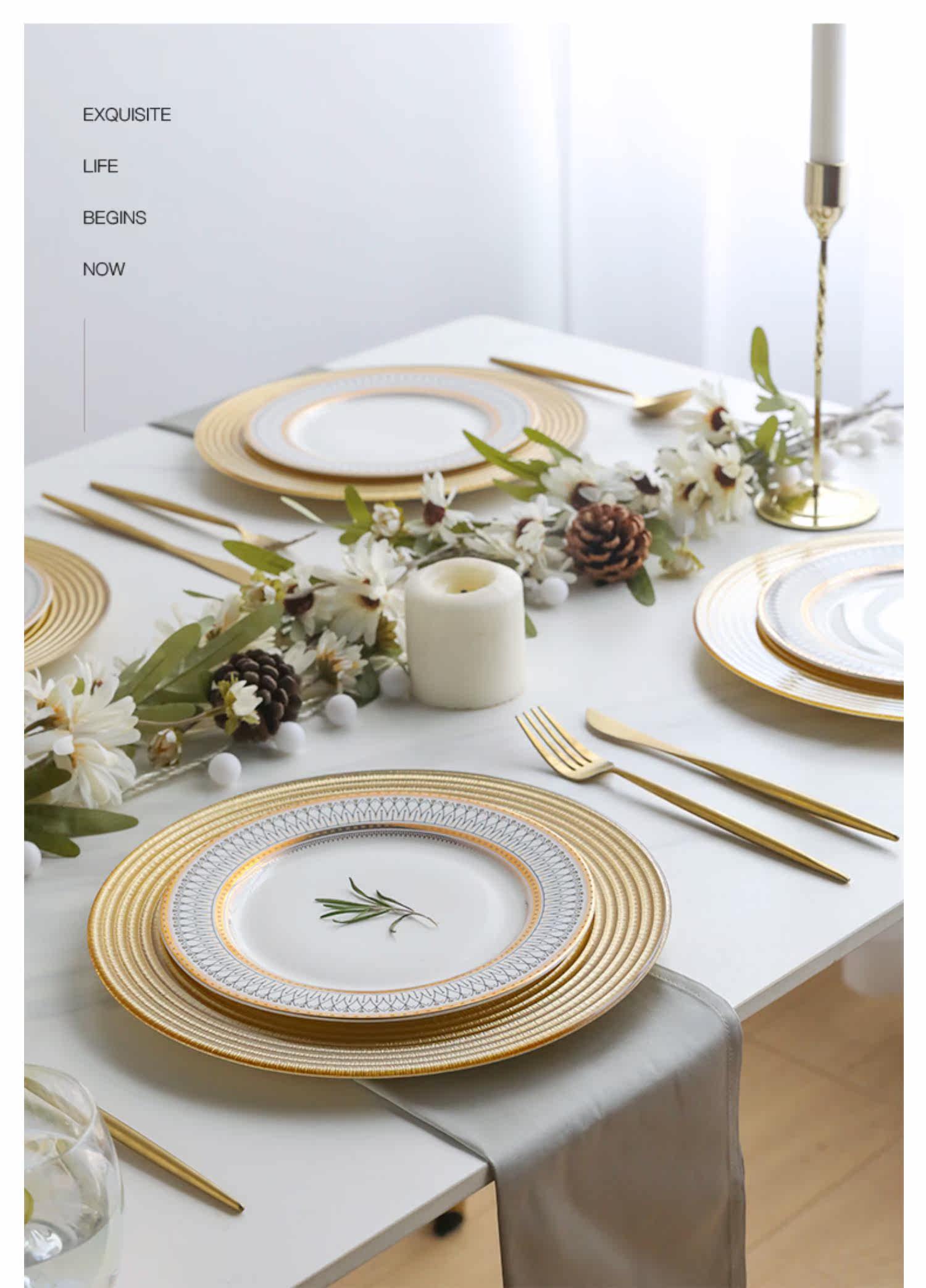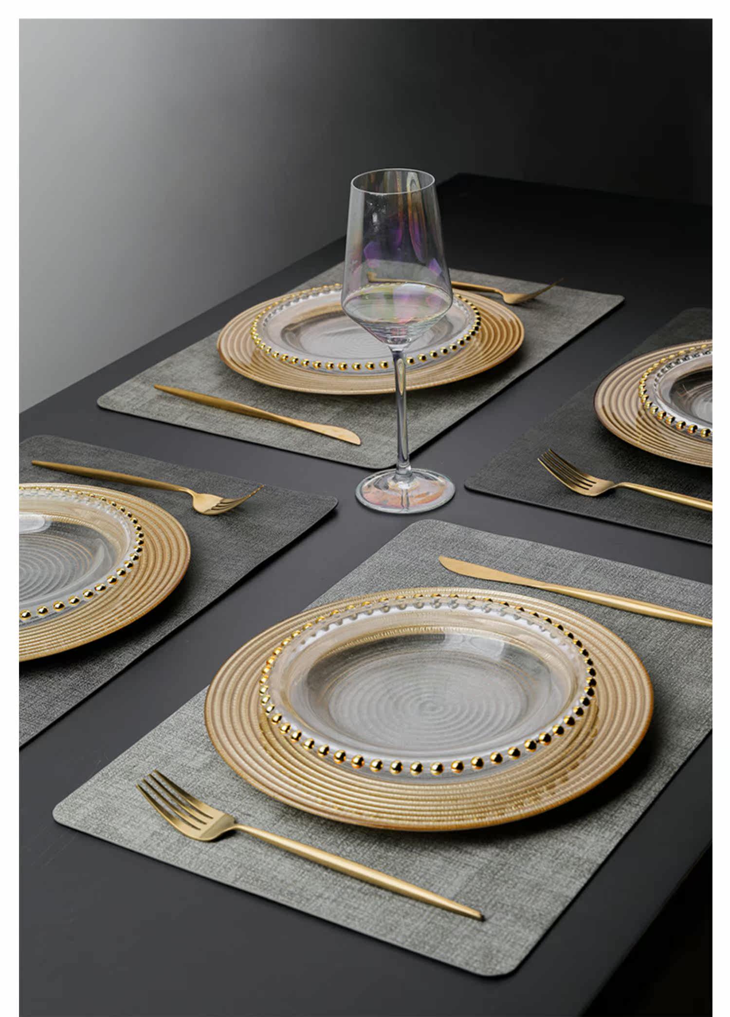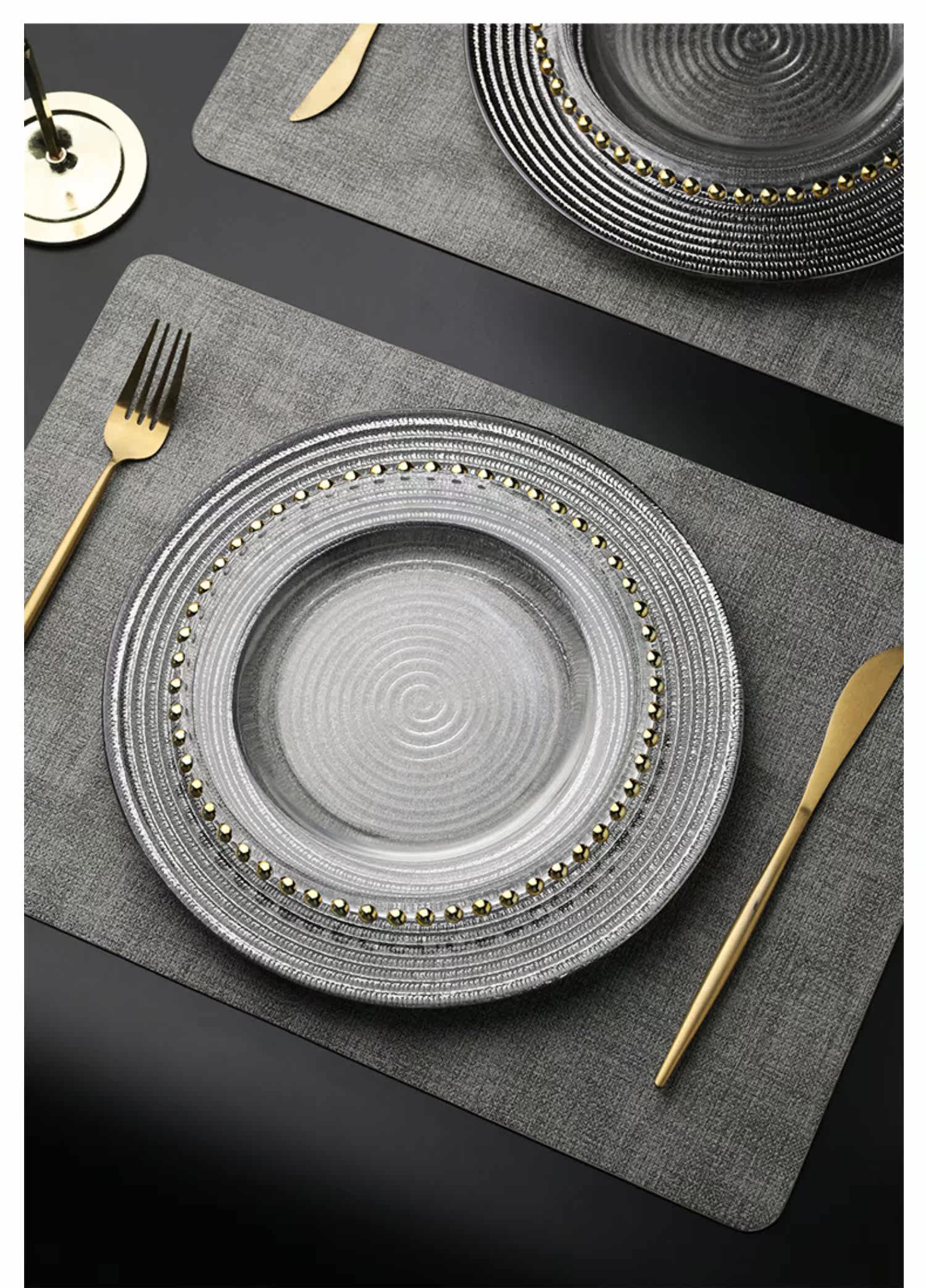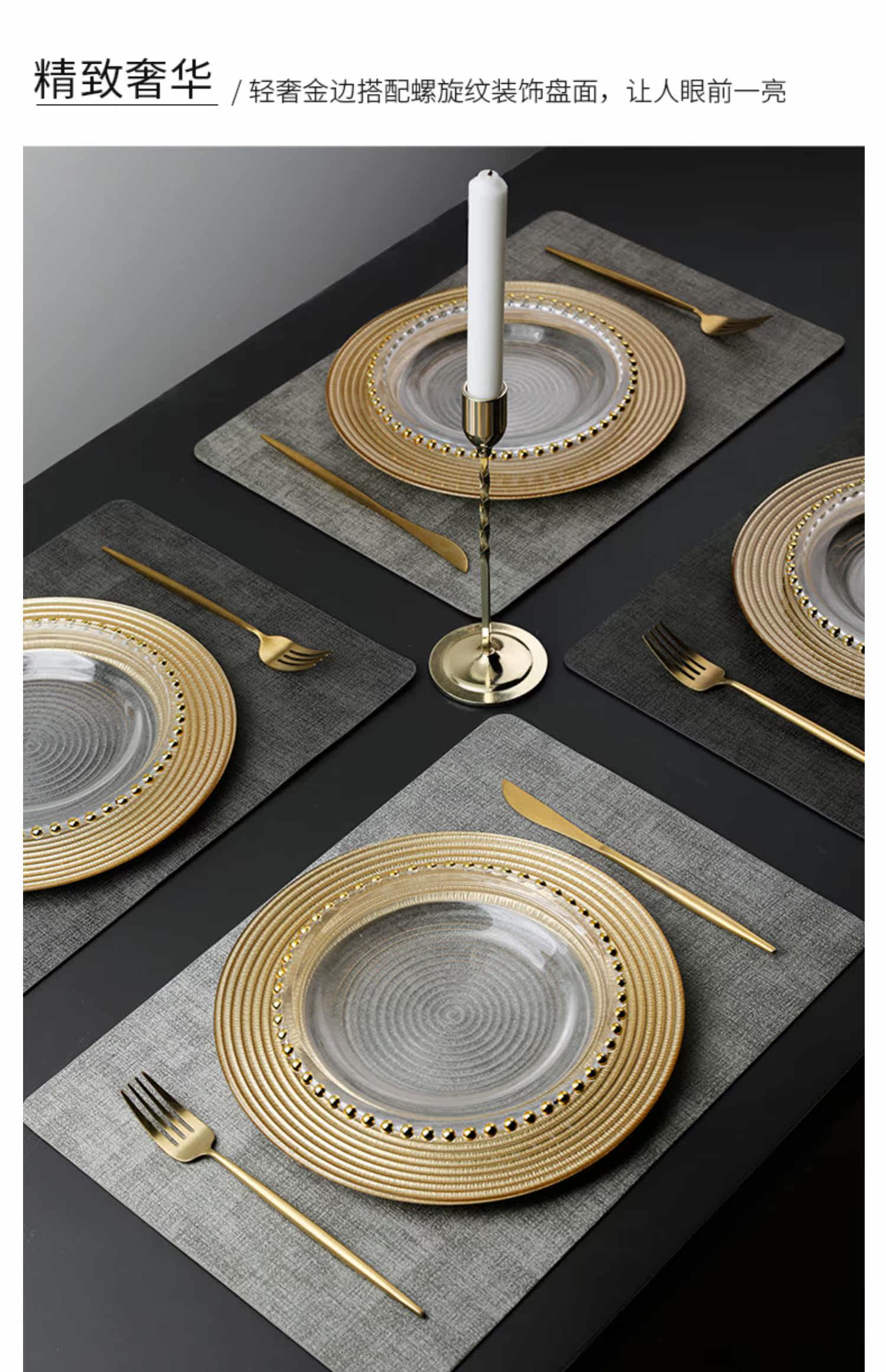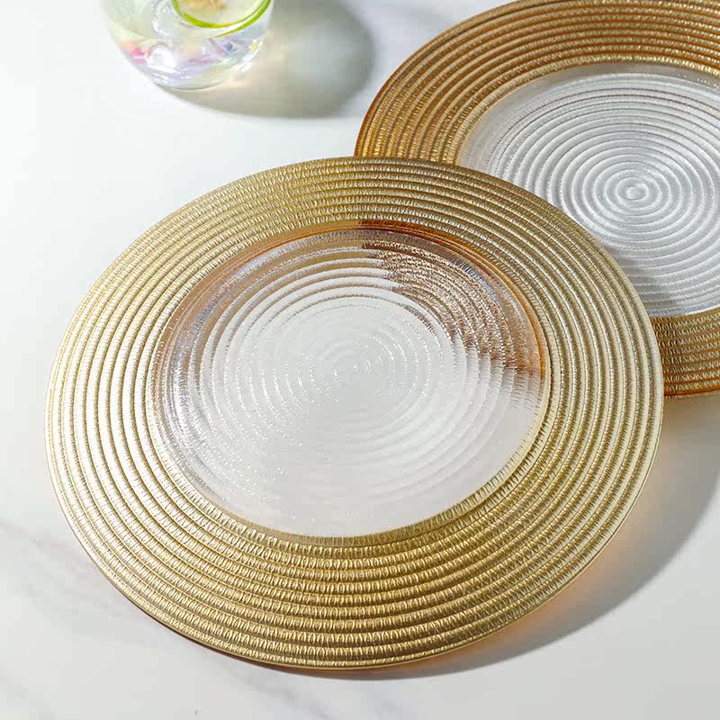 Золотая стеклянная обеденная тарелка, посуда для домашнего использования, комплект, европейский стиль