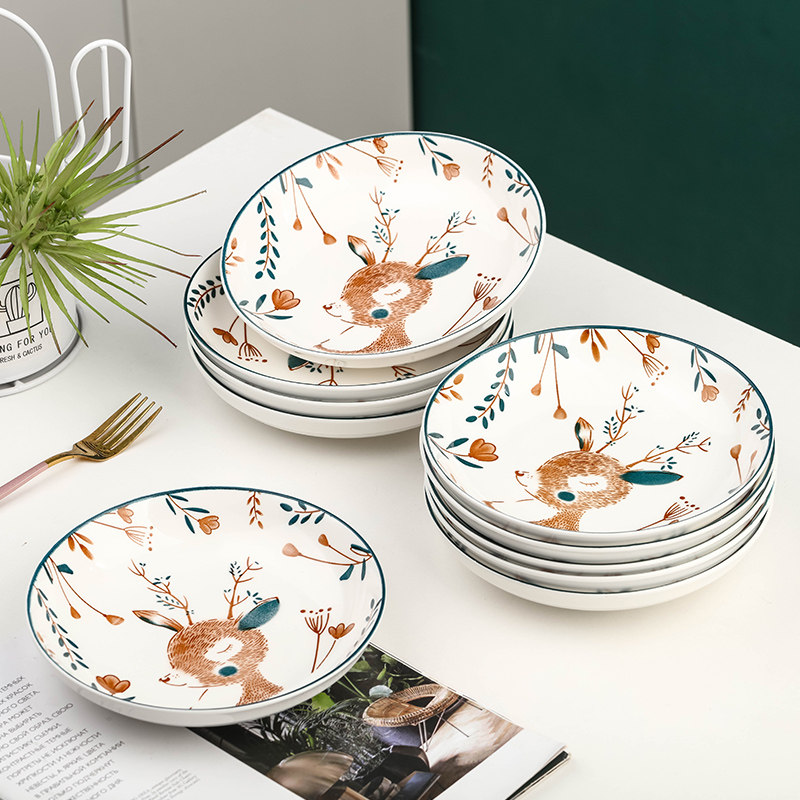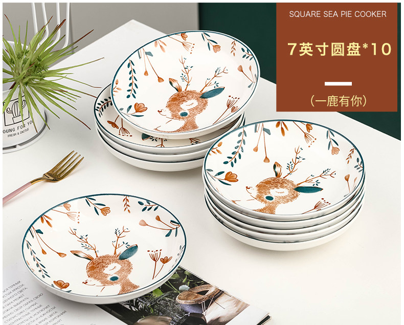 Специальная -Off Cemic Plate Set Set Microwave Dy Dish Edy Edy Rice Disk Creative Net Red Breakfak Disc Dism Комбинация блюдо
