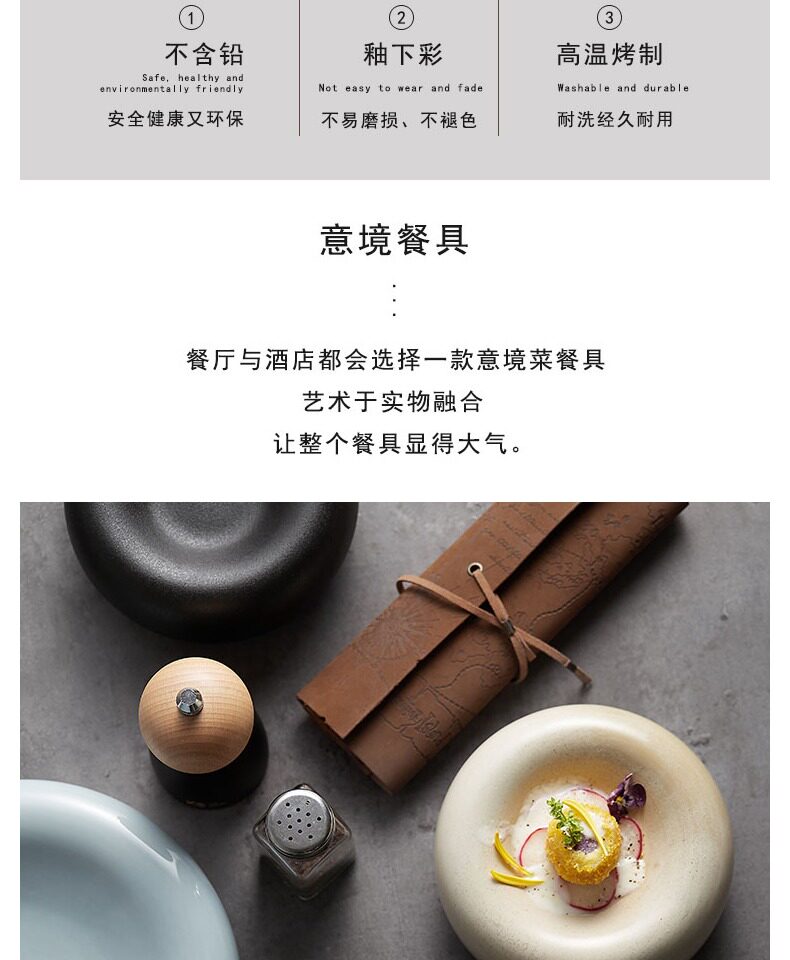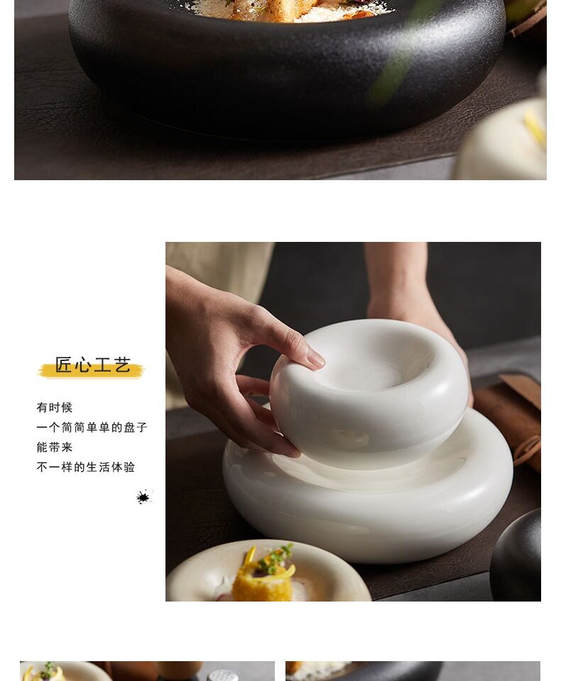 Yiheng Plate Commercial New Internet Celebrity Dessert Plate Plate Ins Style Steak Steak Ceramic High-end Kitchen Roundwareware