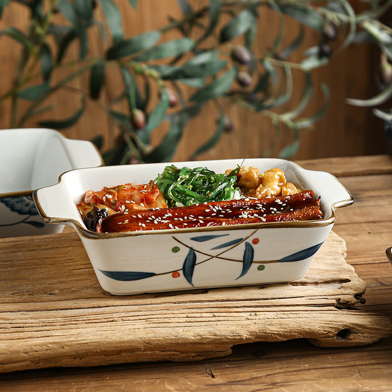Ручная гриль -гриль на гриле кулинарная чаша для варки запеченная рисовая чаша бибимбап с двойной длинной тарелкой глубоко керамический диск Коммерческие специальные блюда.