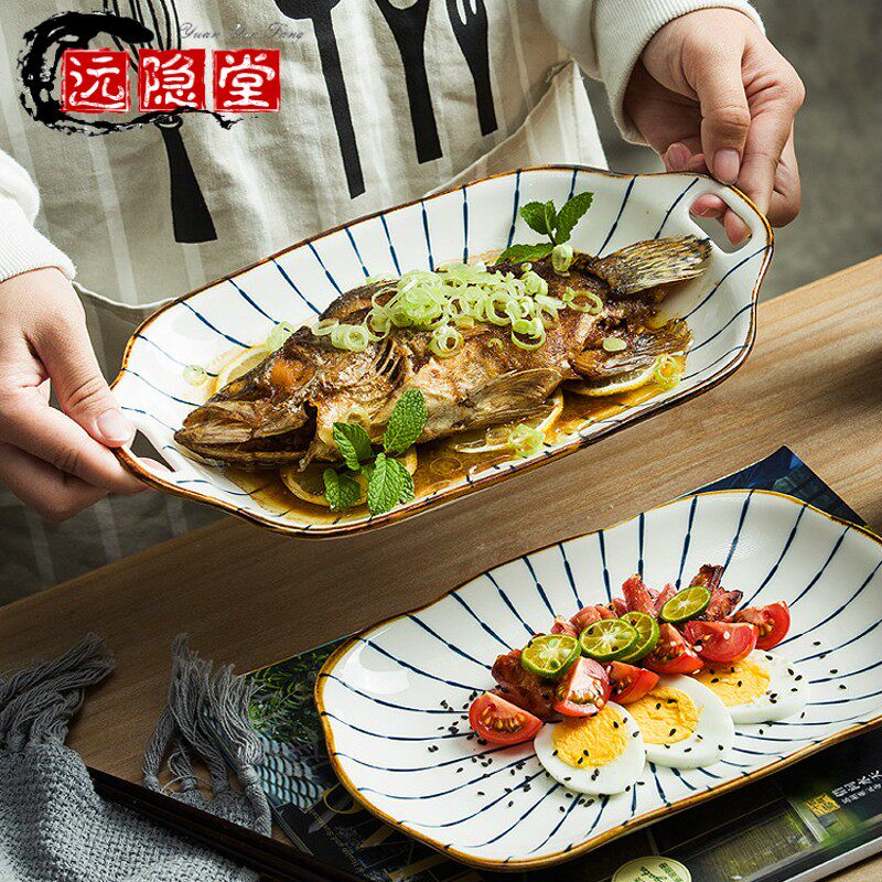 Рыбная тарелка Домохозяйство Новая персонализированная японская ручка рука ручной рыбной тарелки Домашняя двойная рыба -тарелка с рыбой